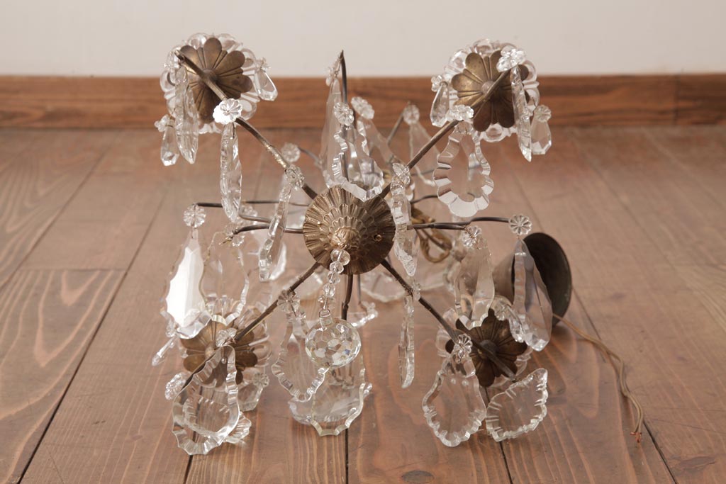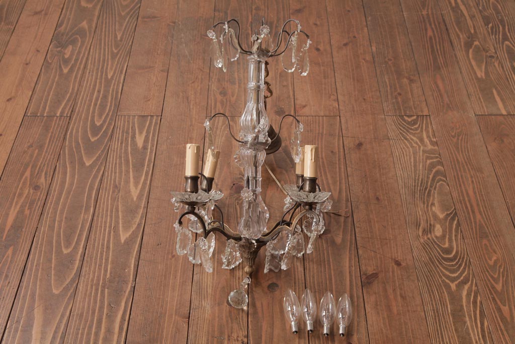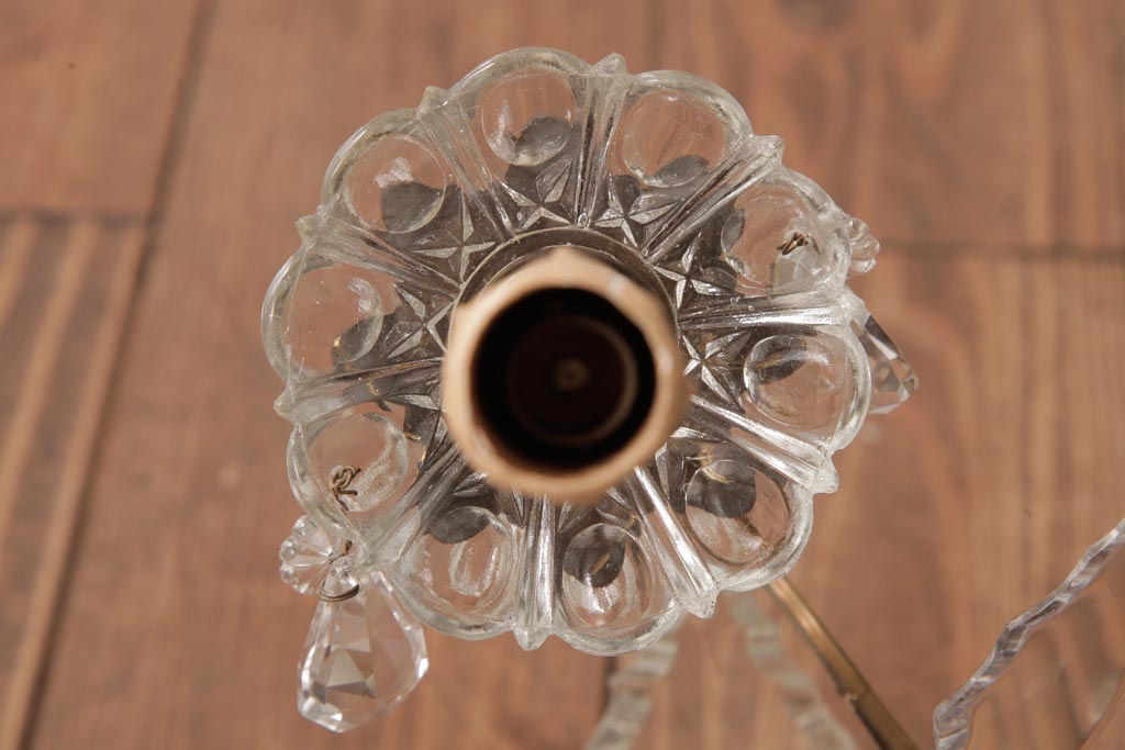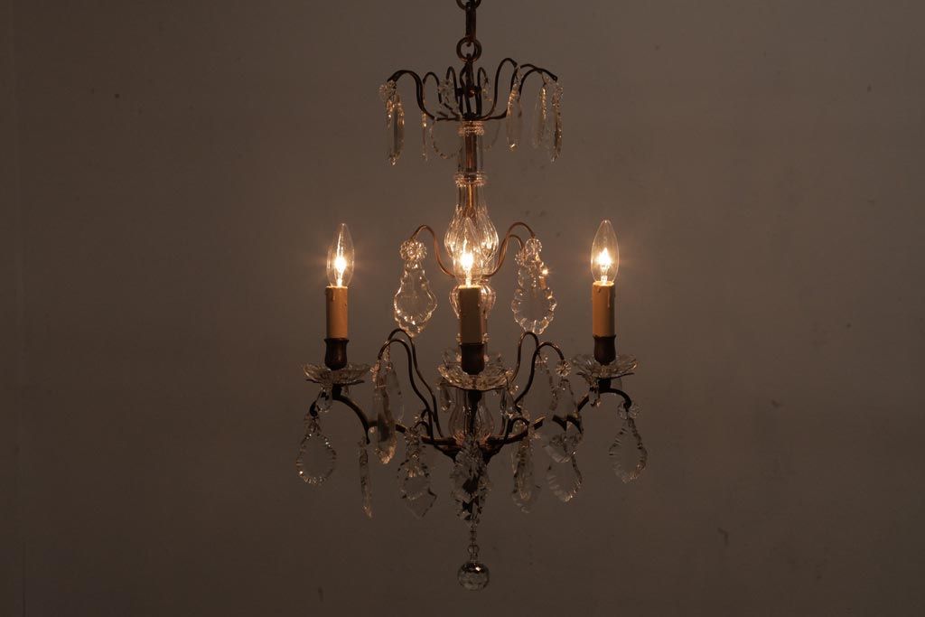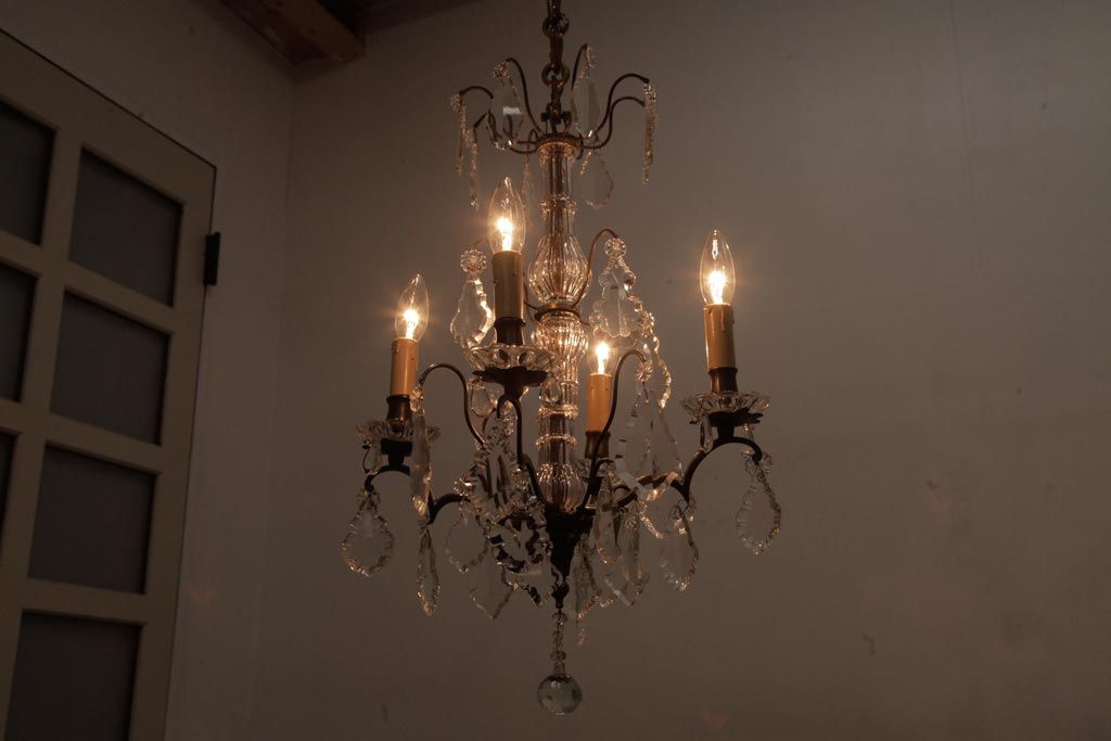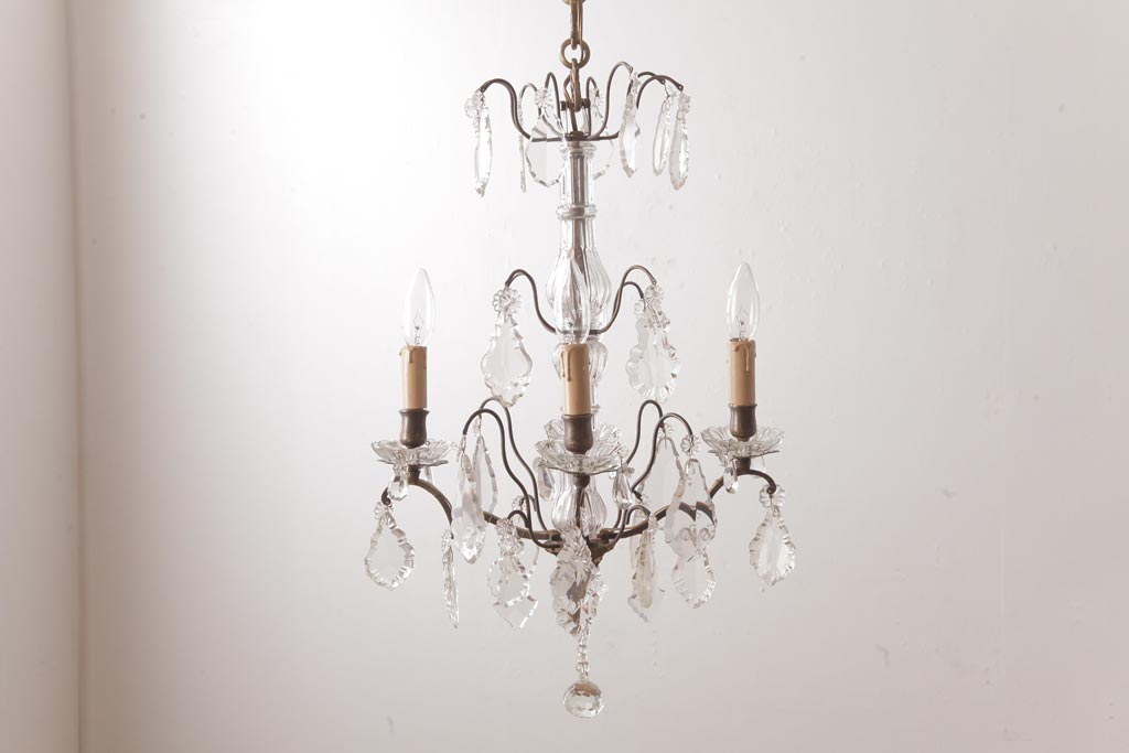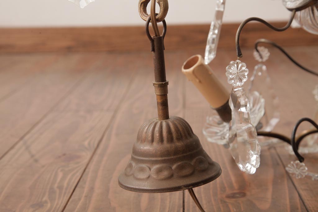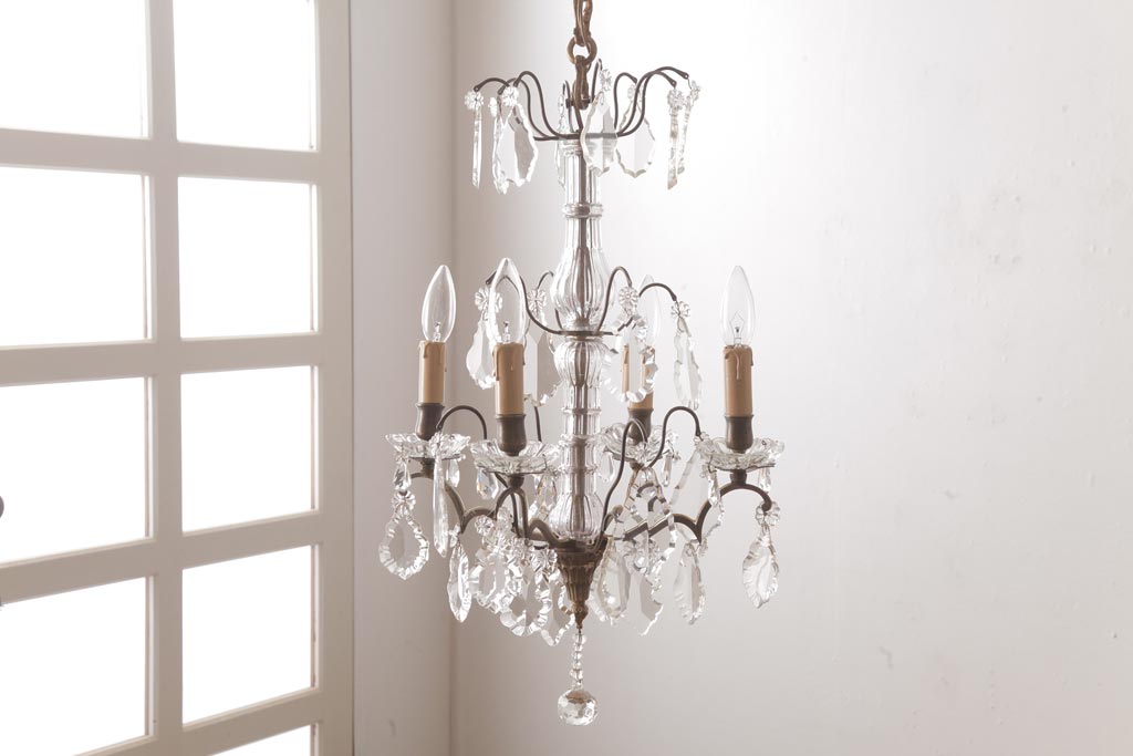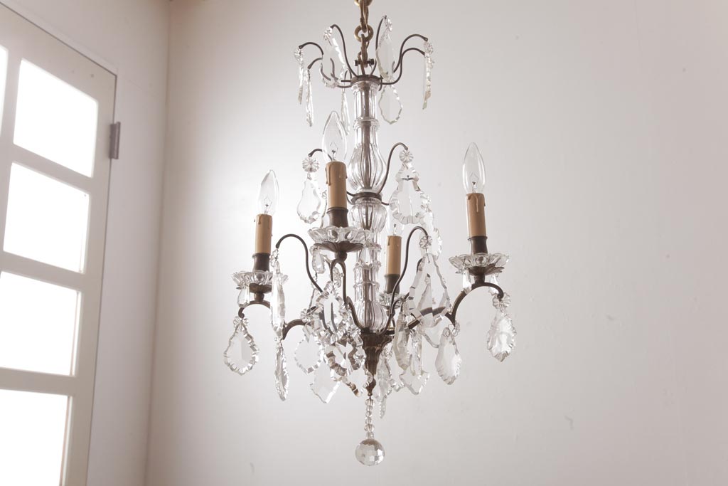 フランスアンティーク 3段になった装飾が豪華なガラスドロップシャンデリア(4灯、天井照明、吊り下げ照明)(R-035030)