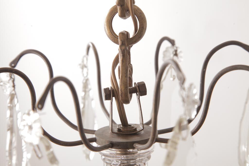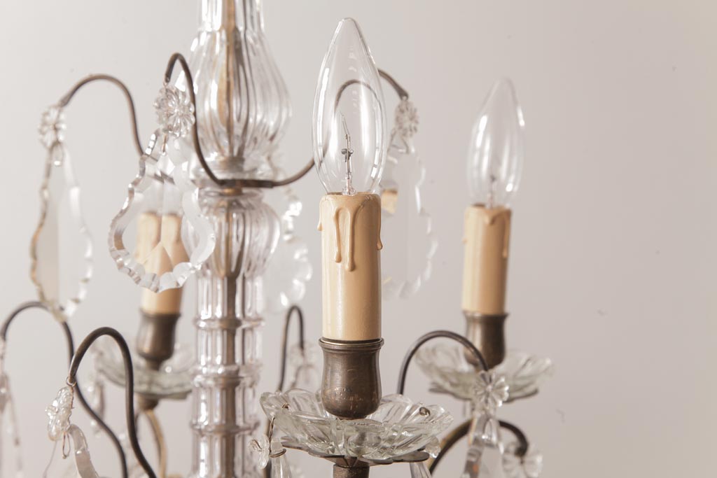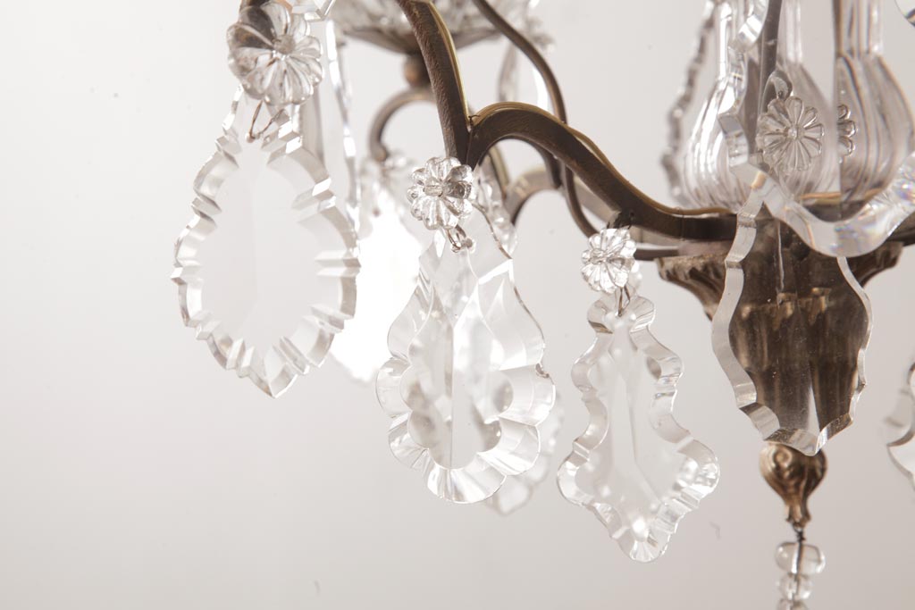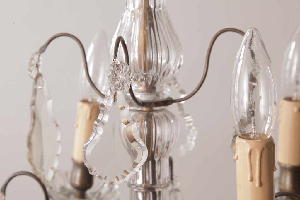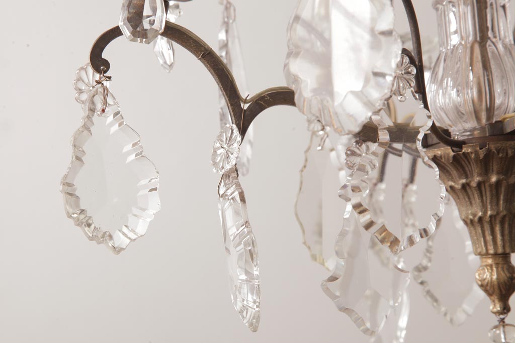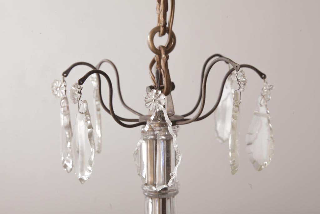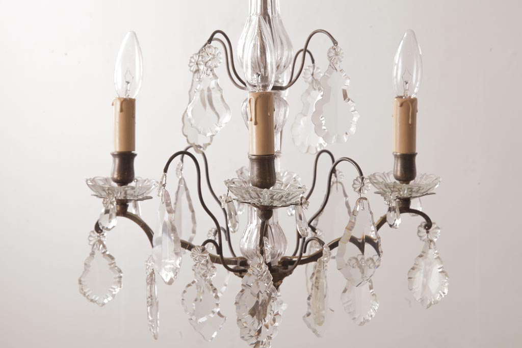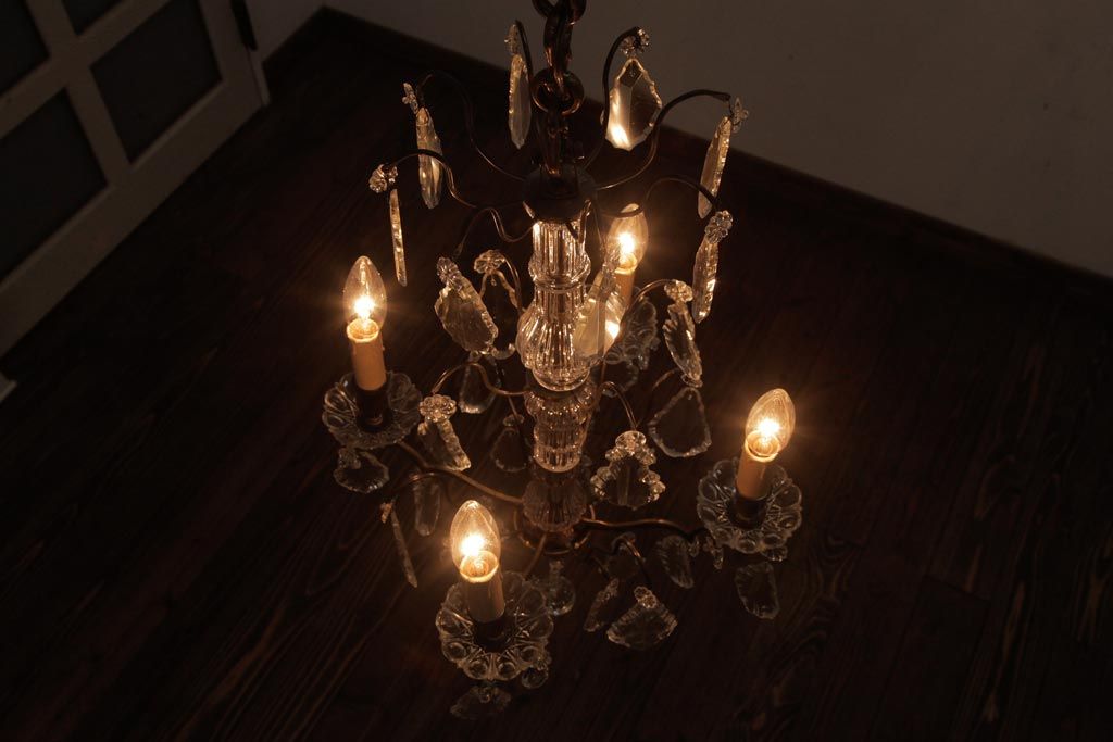 フランスアンティーク 3段になった装飾が豪華なガラスドロップシャンデリア(4灯、天井照明、吊り下げ照明)(R-035030)