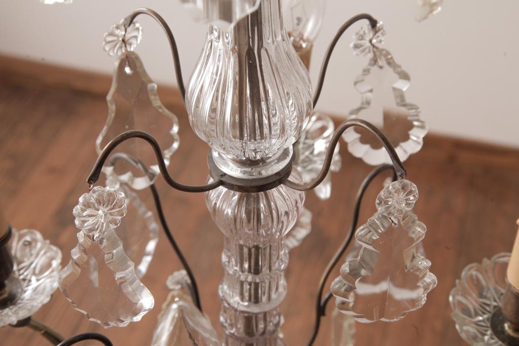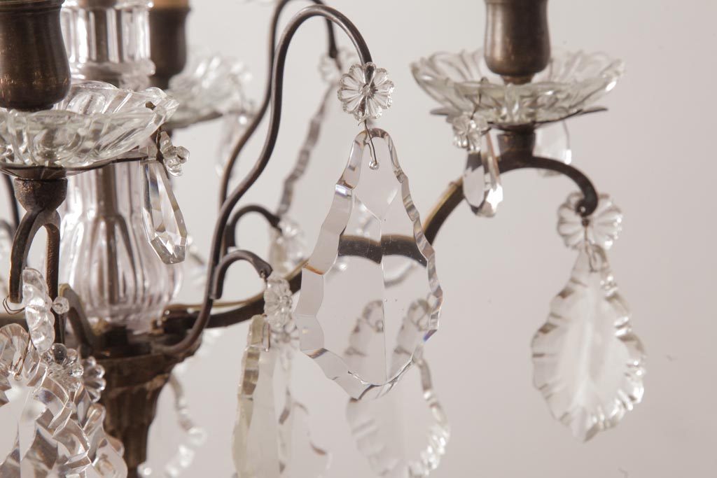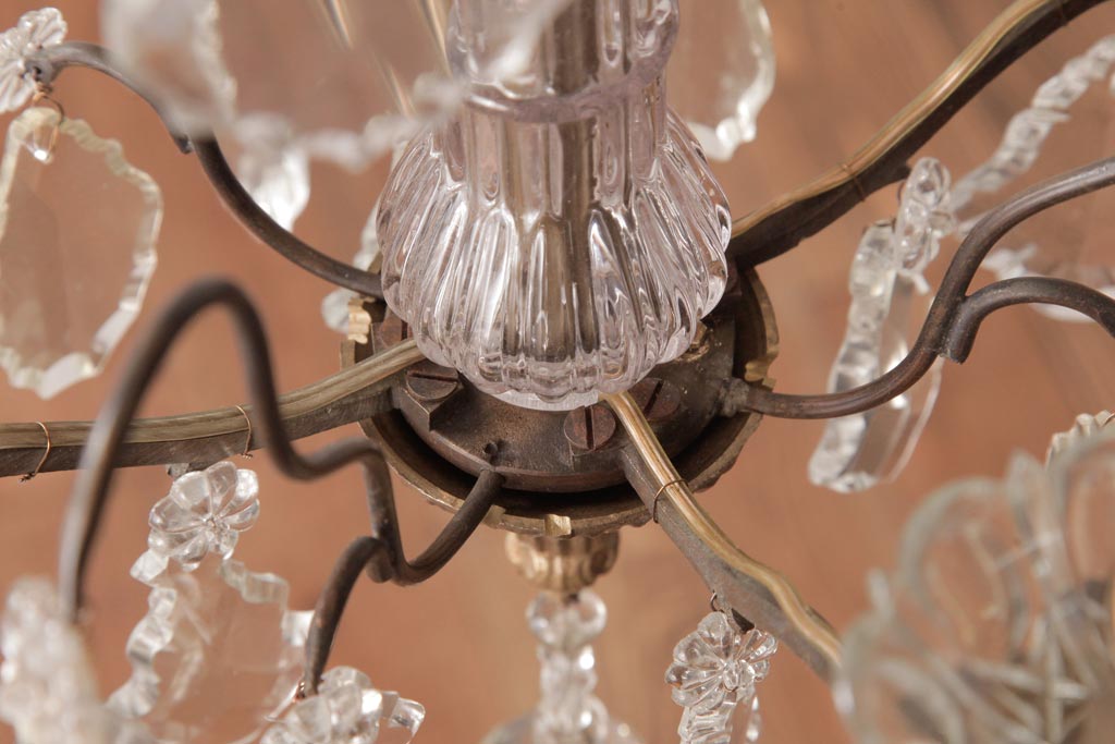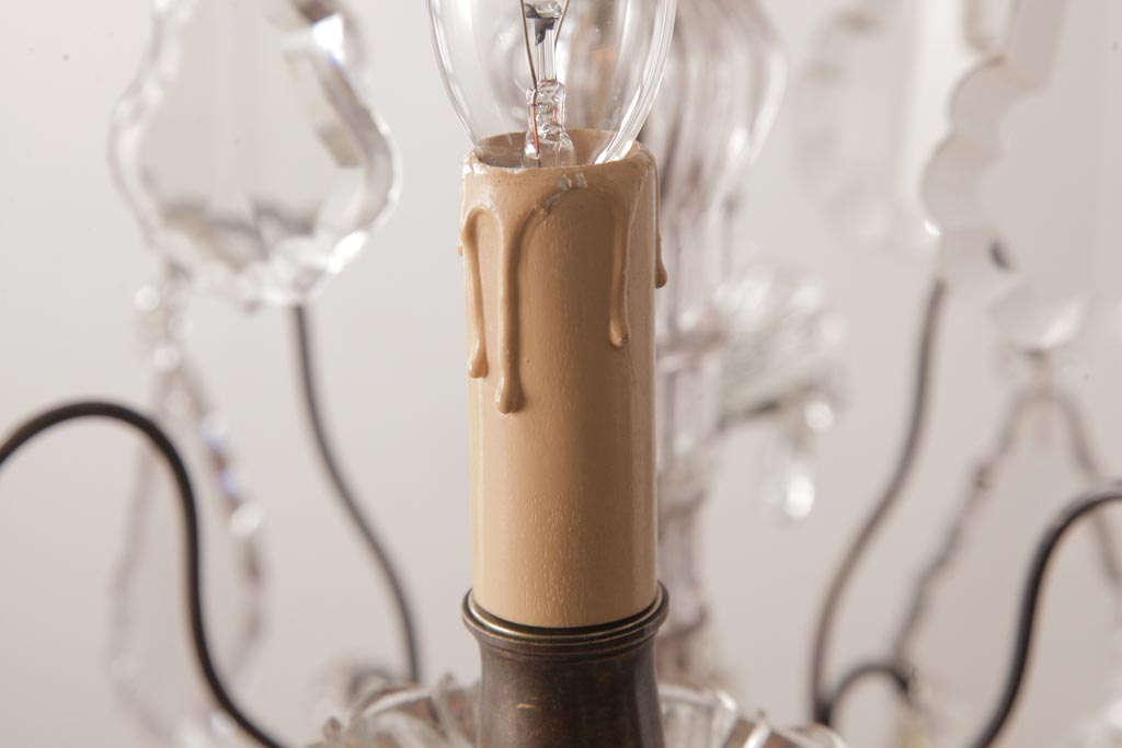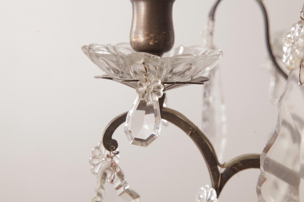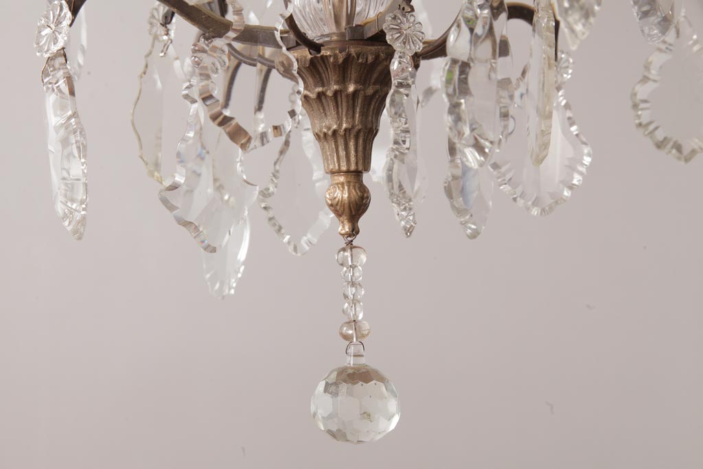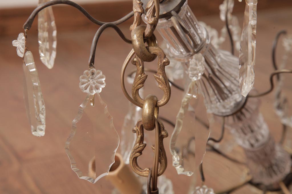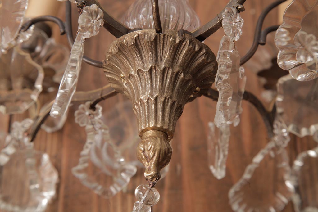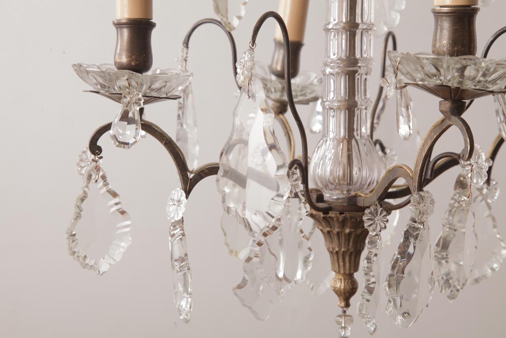 フランスアンティーク 3段になった装飾が豪華なガラスドロップシャンデリア(4灯、天井照明、吊り下げ照明)(R-035030)