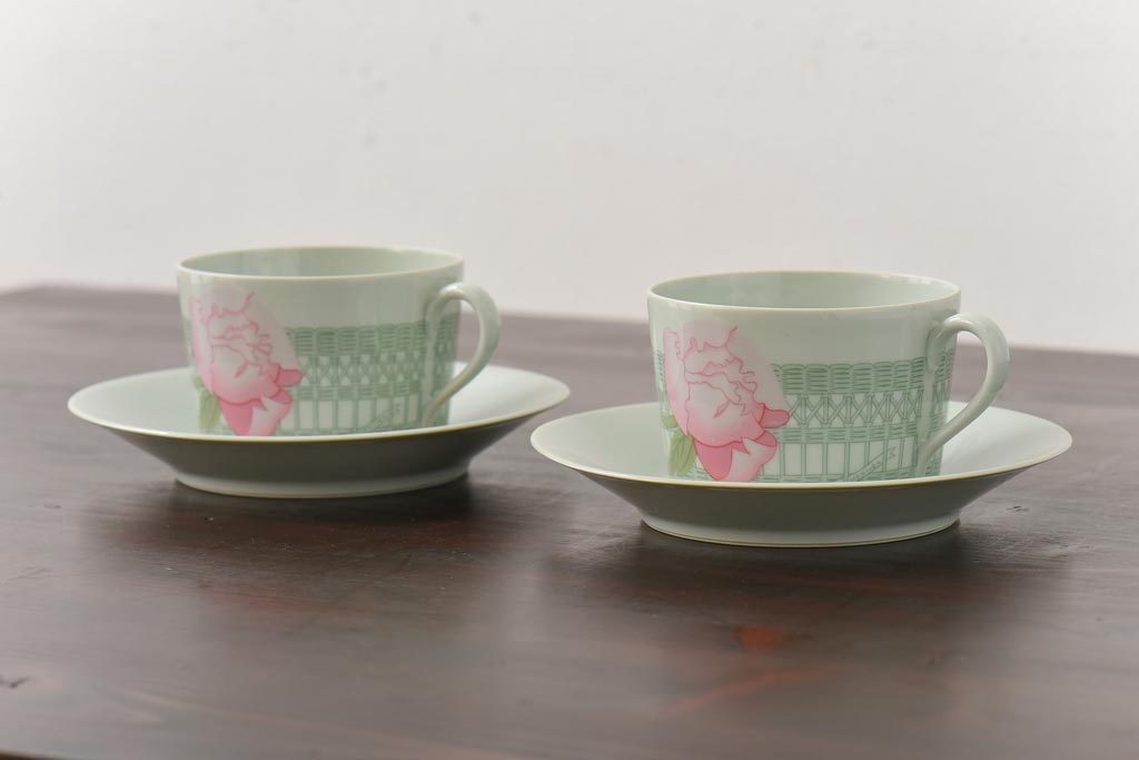 中古 HERMES(エルメス) Les Pivoines(レ・ピヴォワンヌ) カップ&ソーサー2客セット