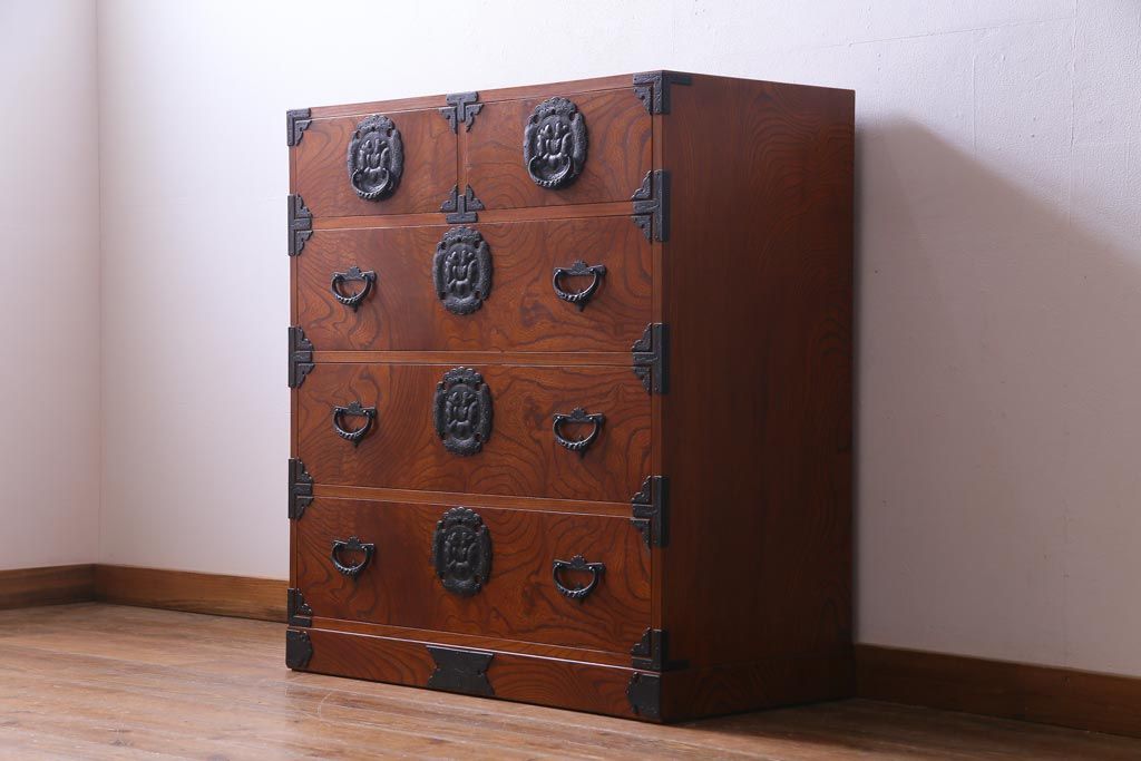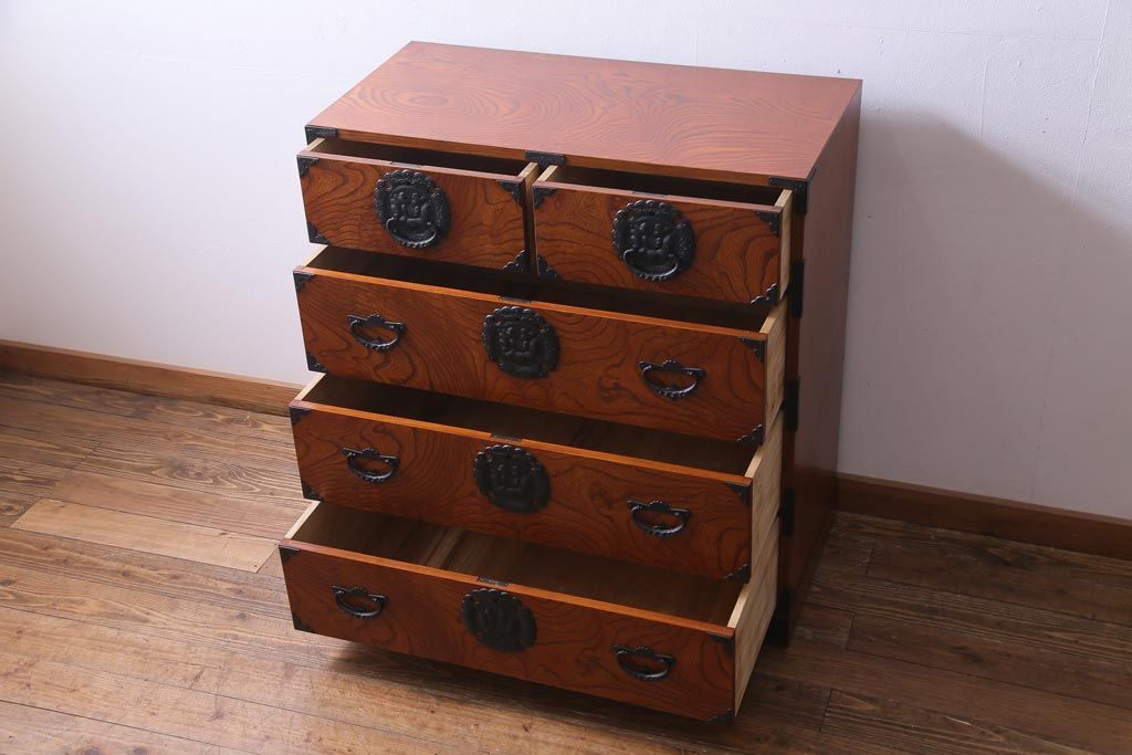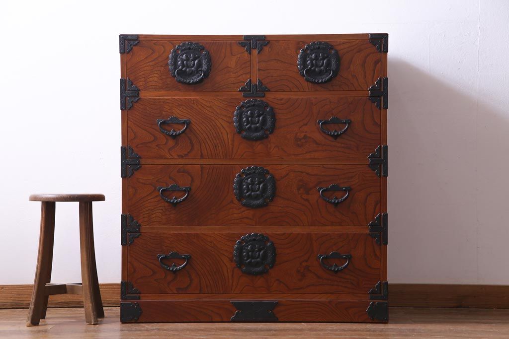 ビンテージ 中古 岩谷堂箪笥 牡丹金具 小振りながらも存在感を放つ衣装箪笥(チェスト、整理ダンス)です。