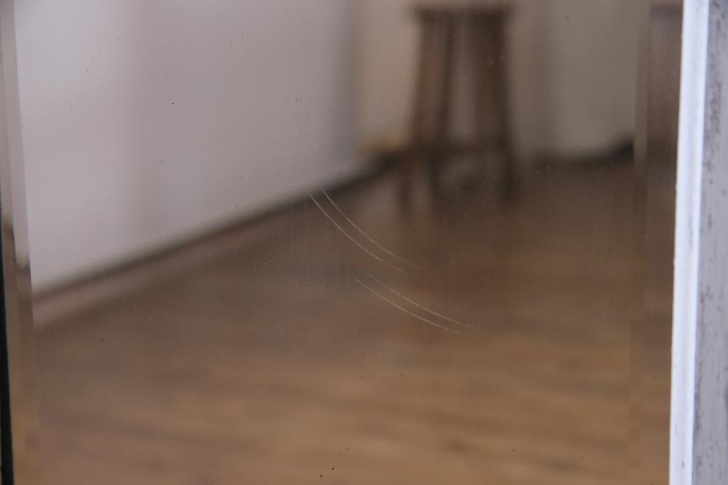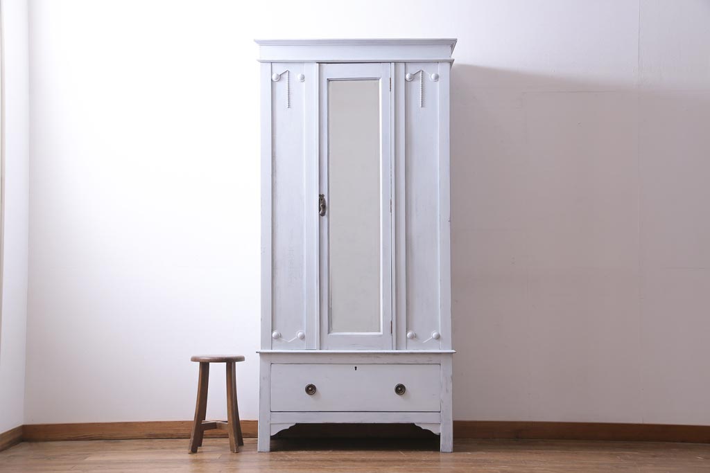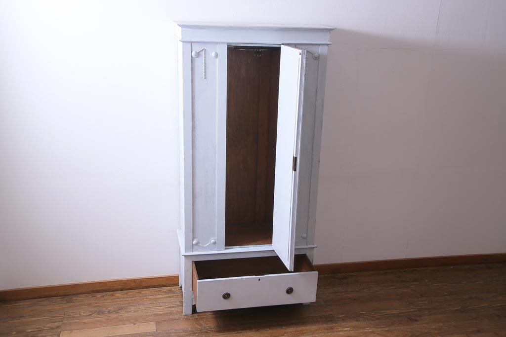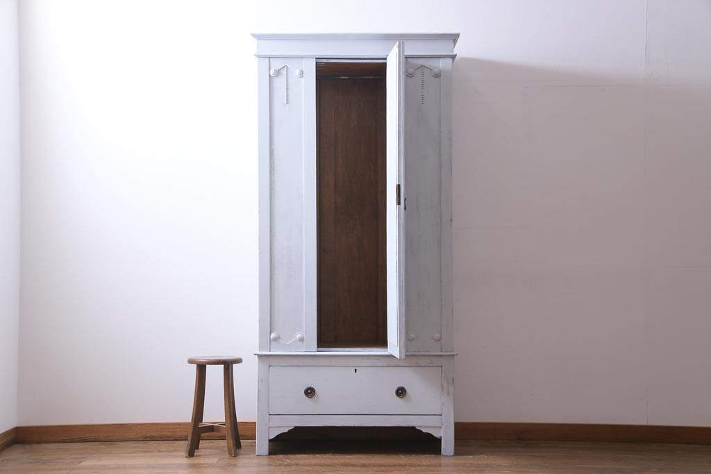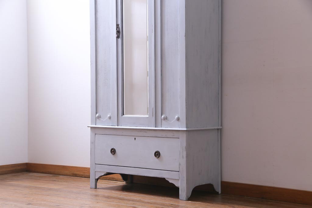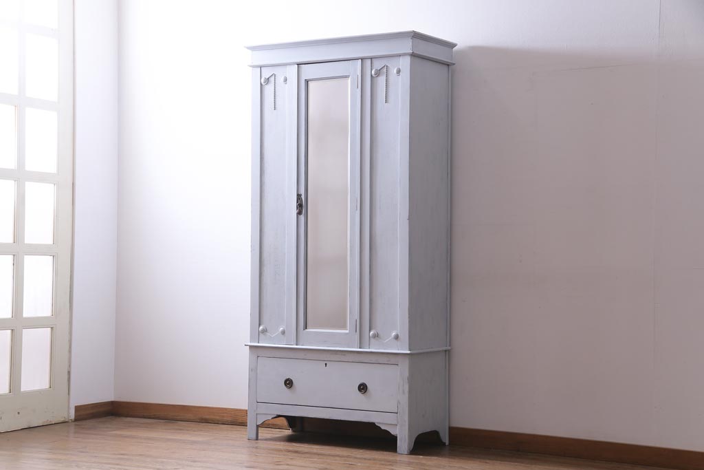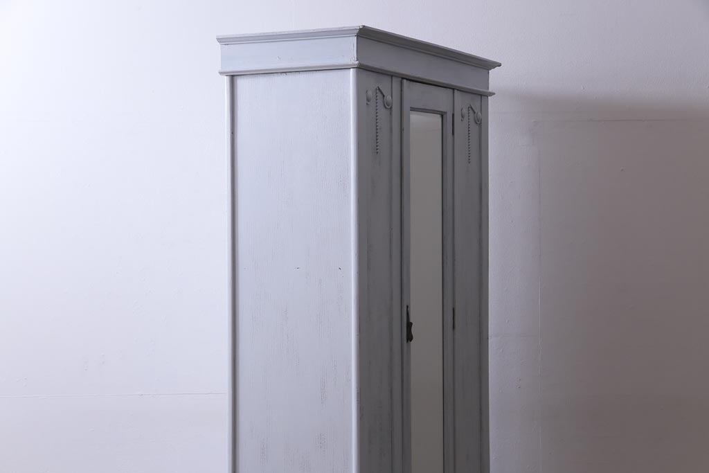 ペイント家具 イギリスアンティーク 可憐で落ち着きのあるグレーの薄型ワードローブ(洋服タンス)