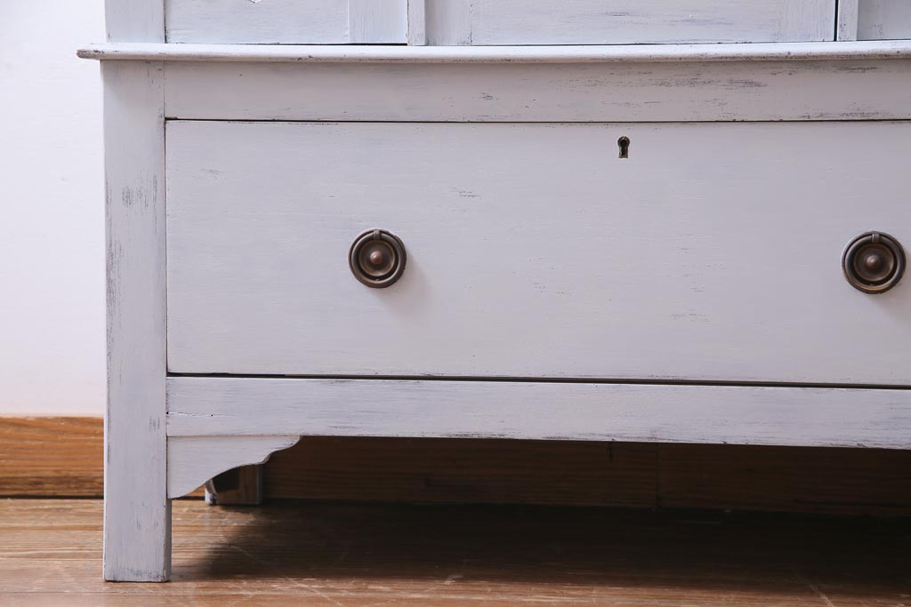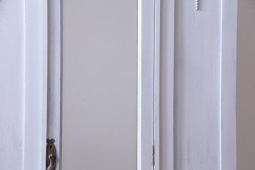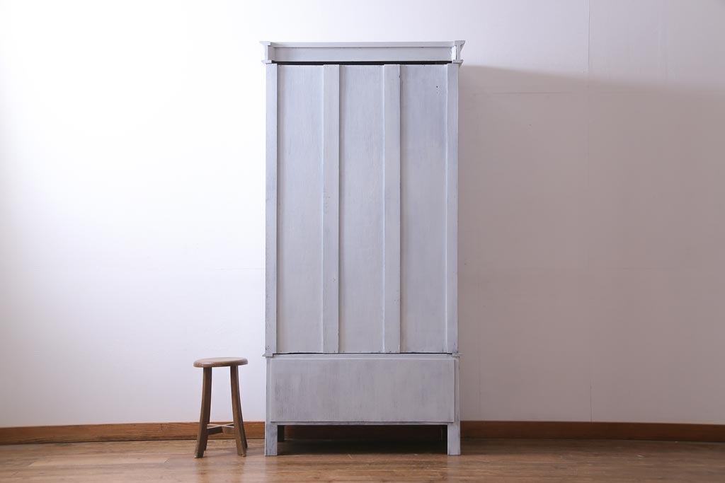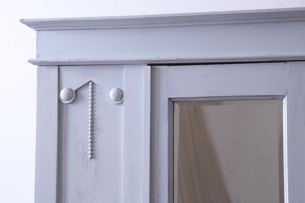 ラフジュ工房> ワードローブ・ロッカー> ワードローブ > ペイント家具 イギリスアンティーク 可憐で落ち着きのあるグレーの薄型ワードローブ(洋服タンス)