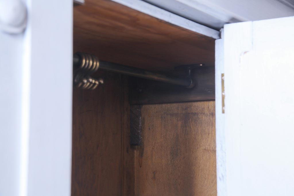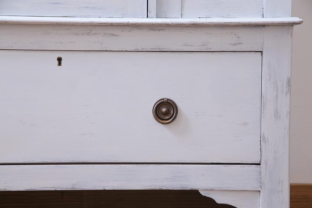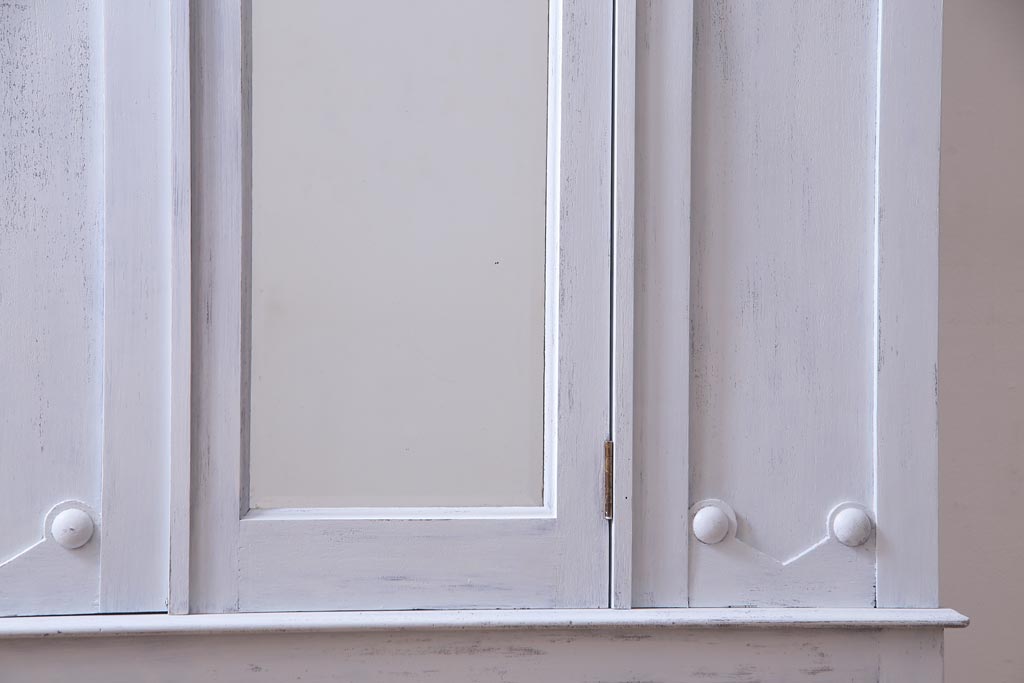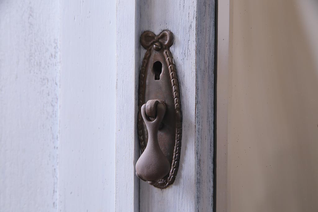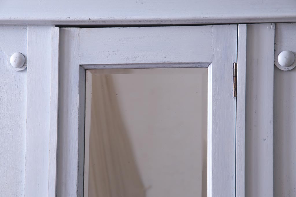 ラフジュ工房> ワードローブ・ロッカー> ワードローブ > ペイント家具 イギリスアンティーク 可憐で落ち着きのあるグレーの薄型ワードローブ(洋服タンス)