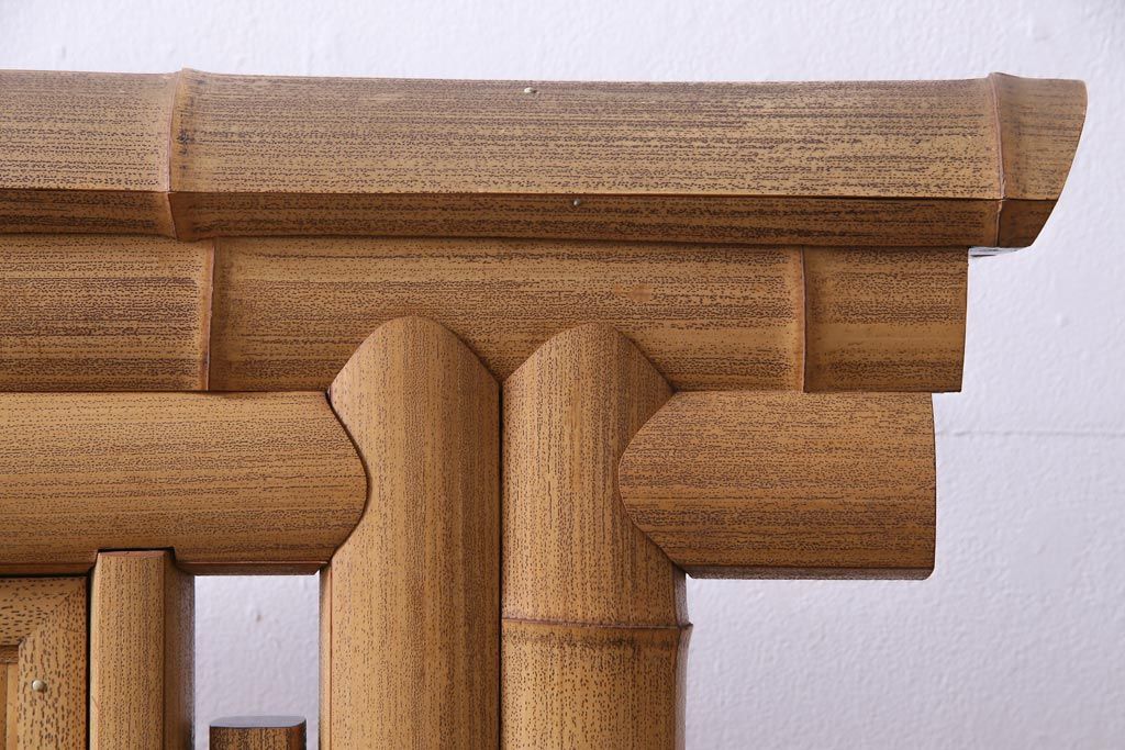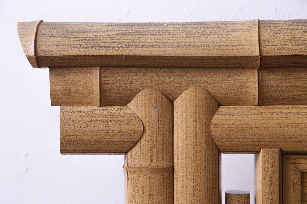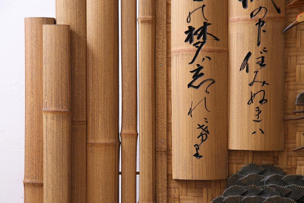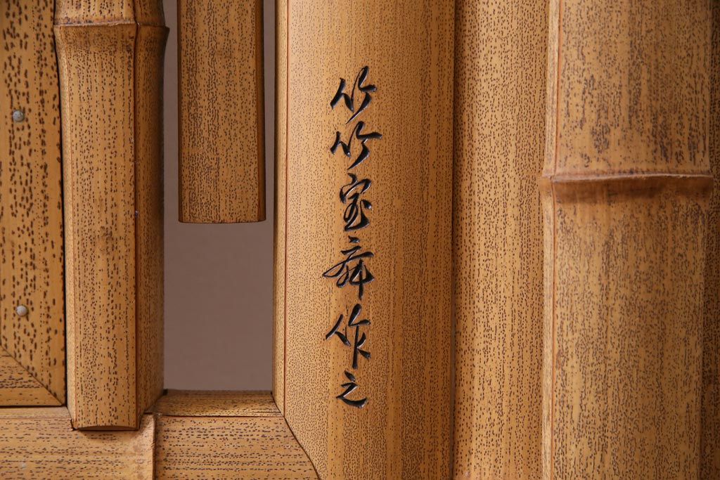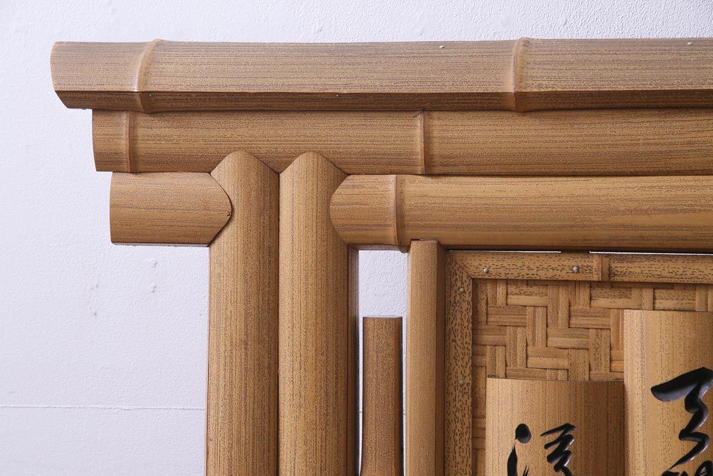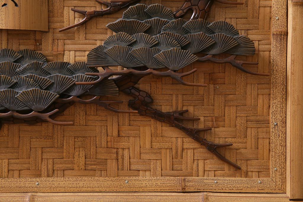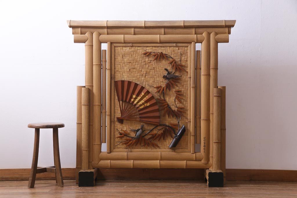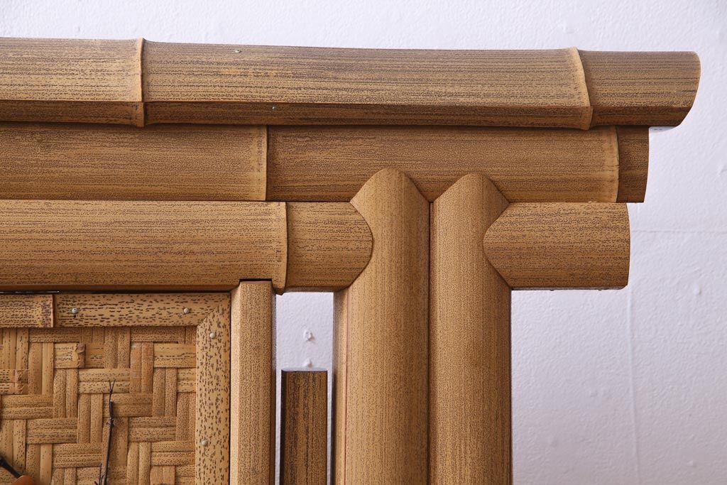 中古 竹細工 鶴・松彫刻 網代編み 立体的な意匠が存在感を放つ衝立(間仕切り、パーテーション)(定価約50万円)(R-035027 )