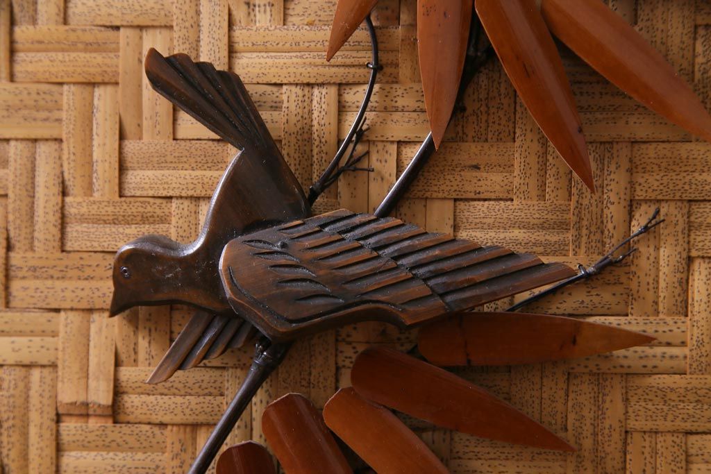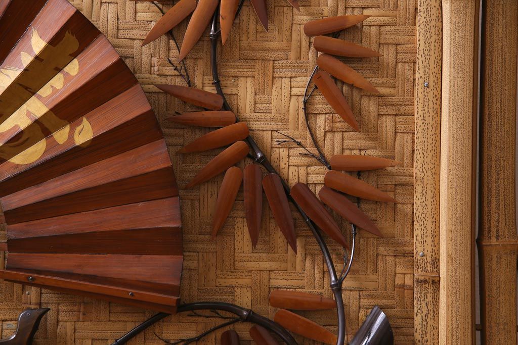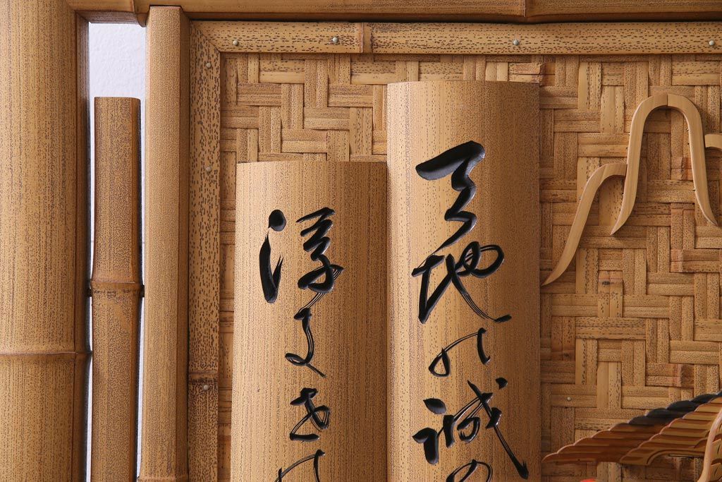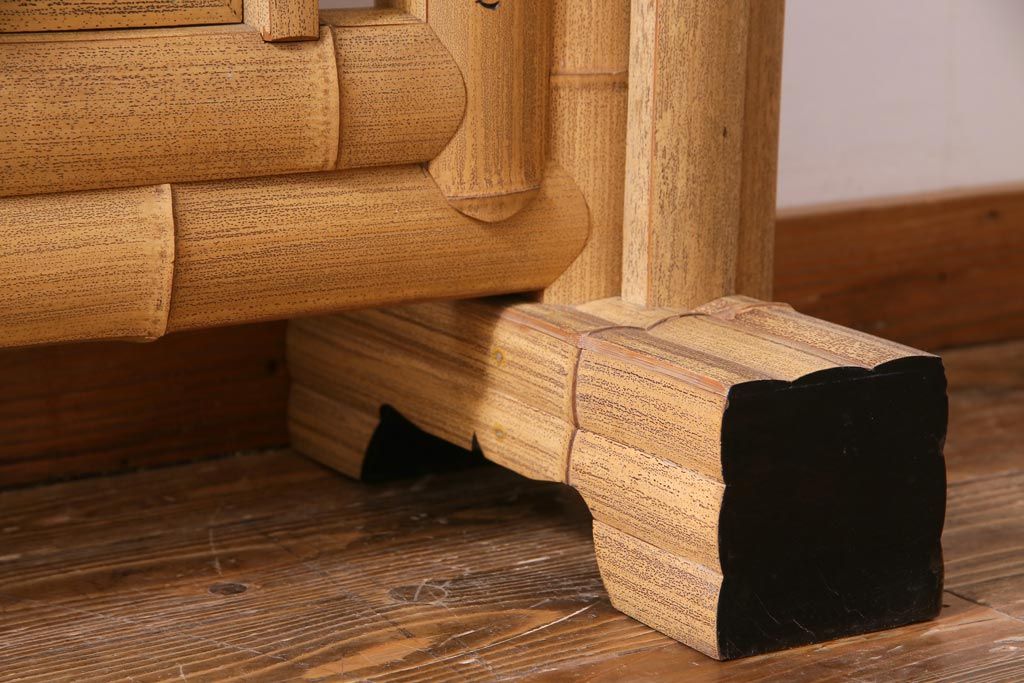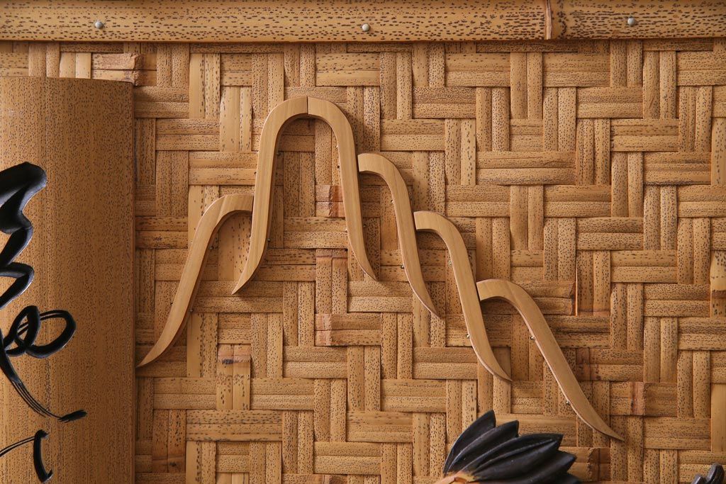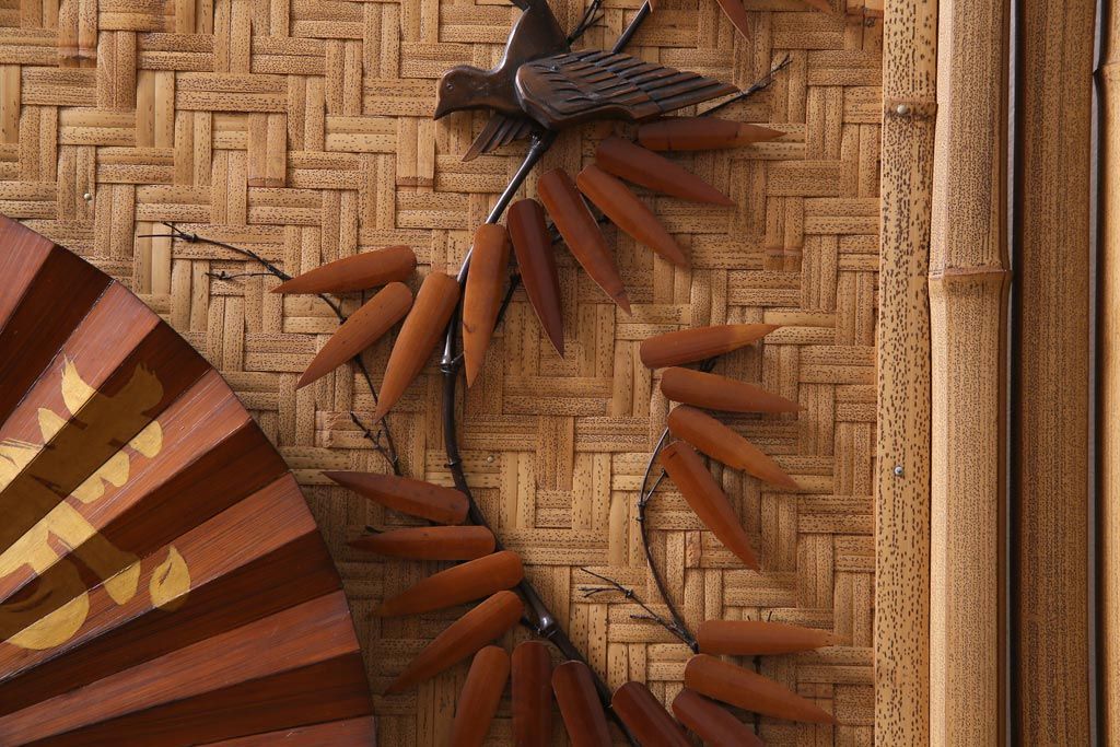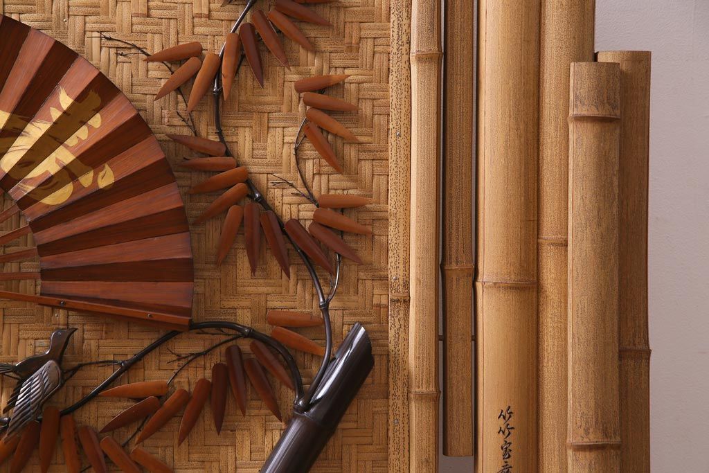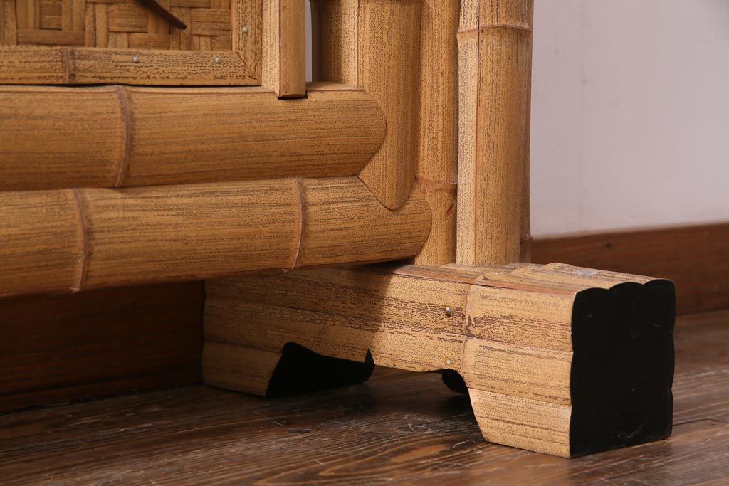 中古 竹細工 鶴・松彫刻 網代編み 立体的な意匠が存在感を放つ衝立(間仕切り、パーテーション)(定価約50万円)(R-035027 )
