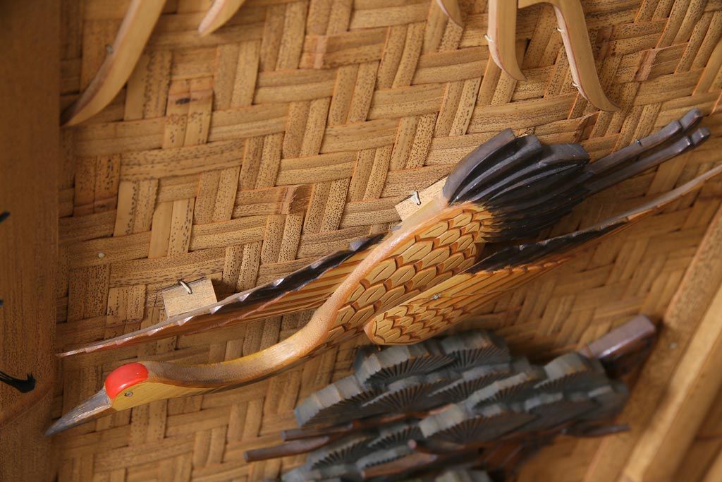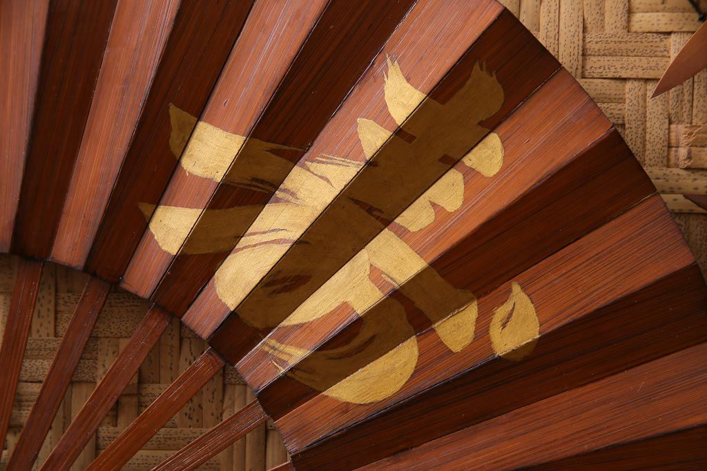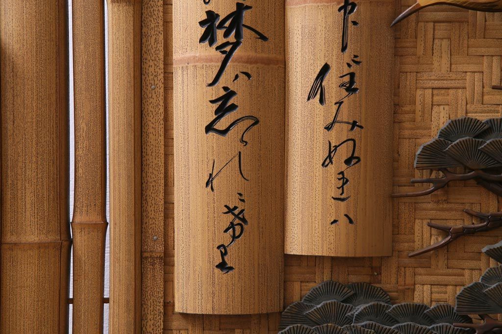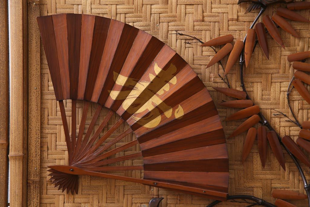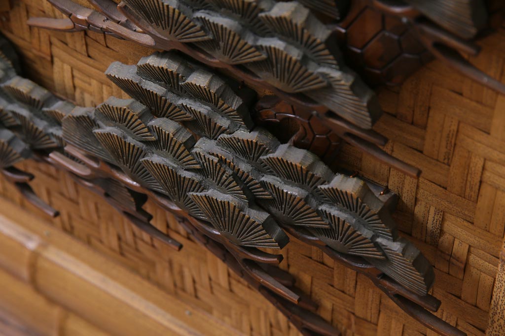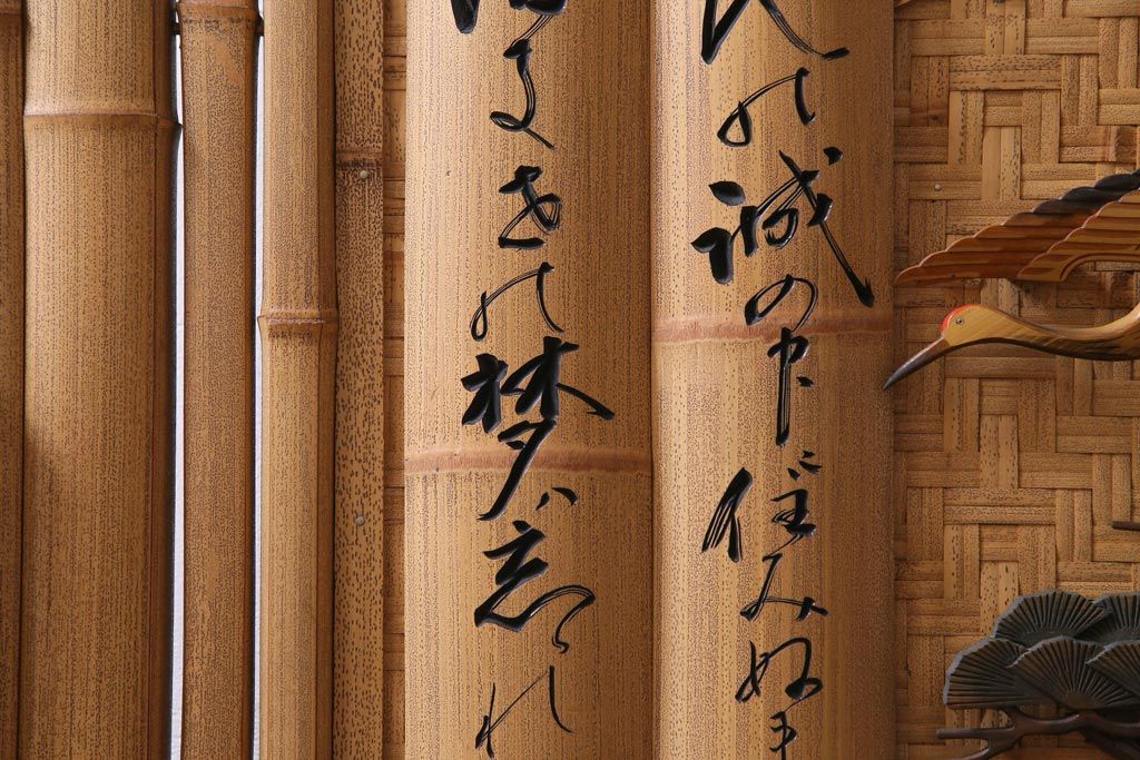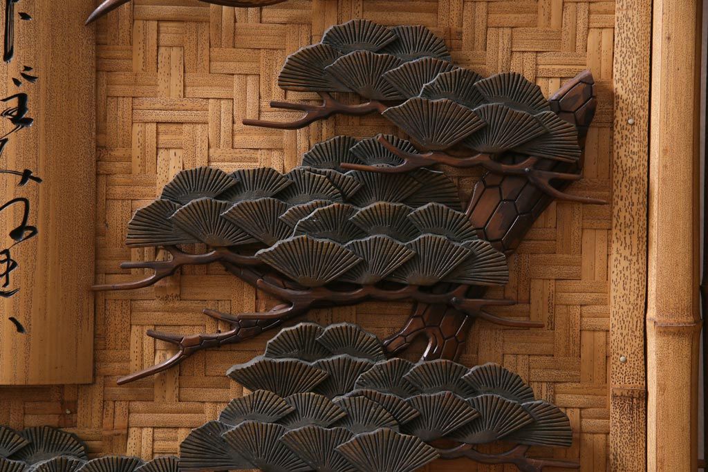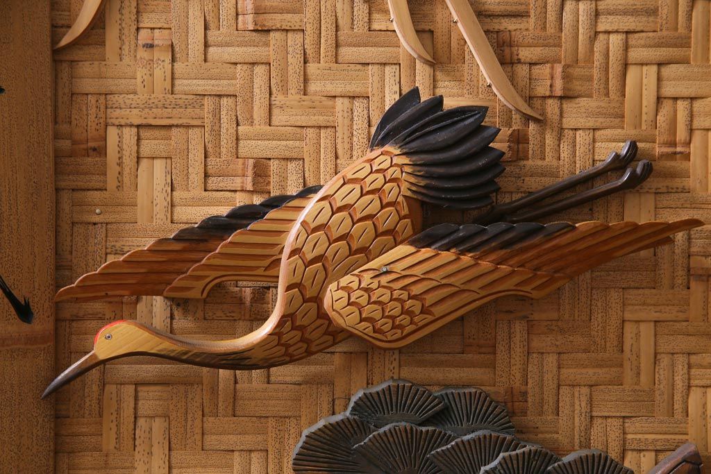 鶴・松・竹・扇などの縁起物の彫刻がよく映える