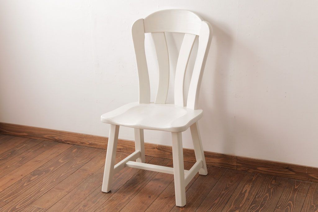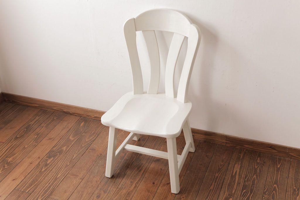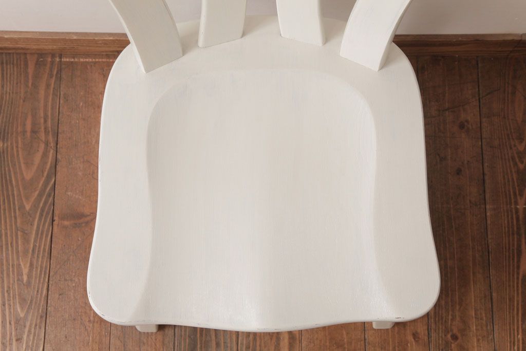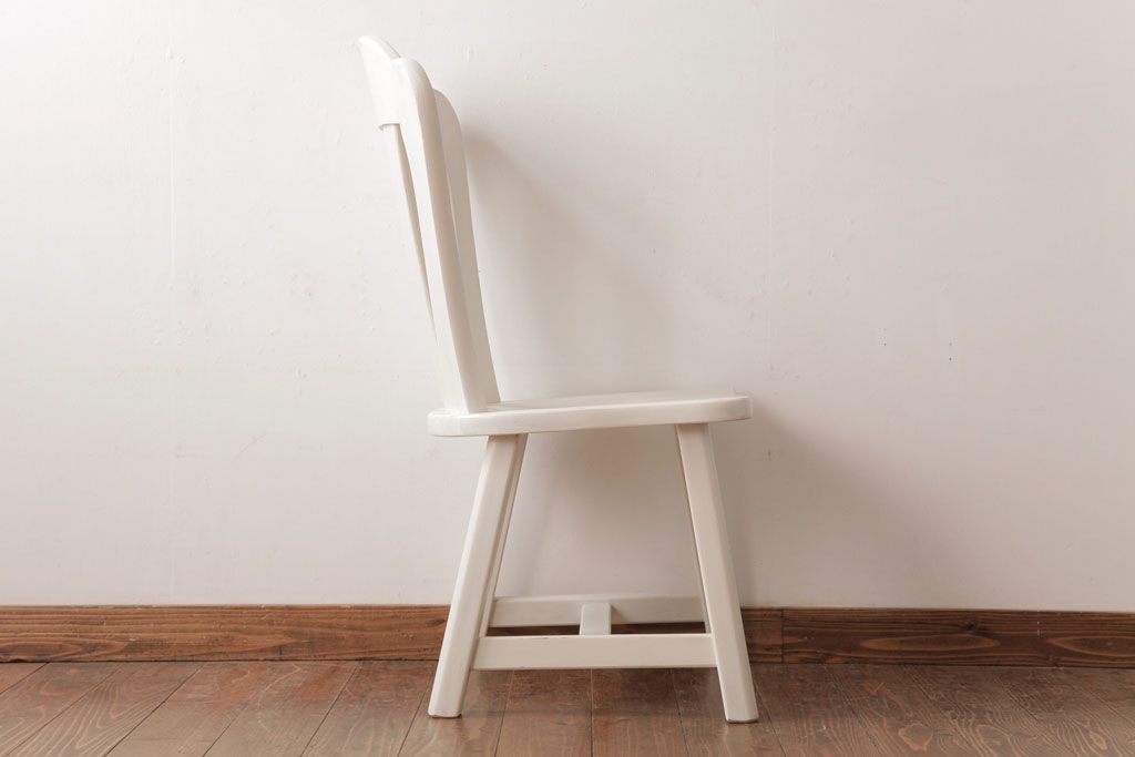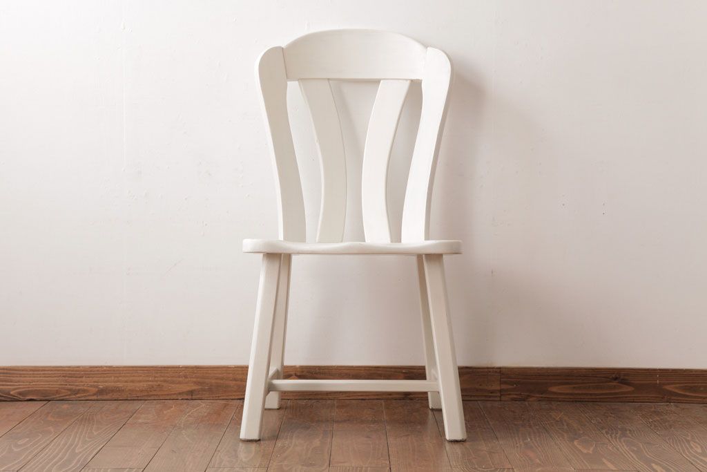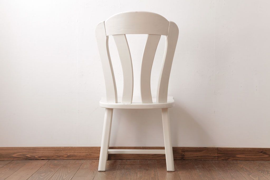 中古輸入家具 オランダ製 さわやかなホワイトカラーのダイニングチェア(椅子、イス、板座チェア)(R-035109)