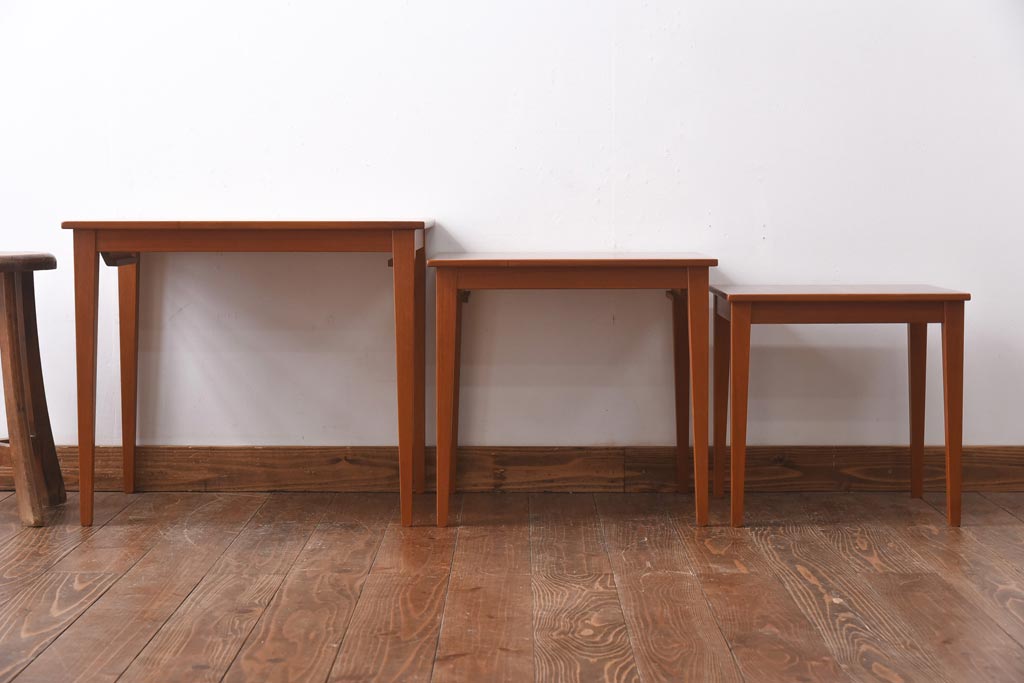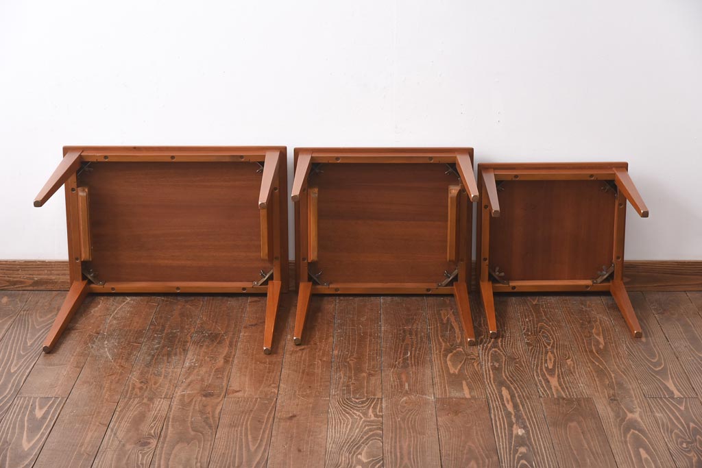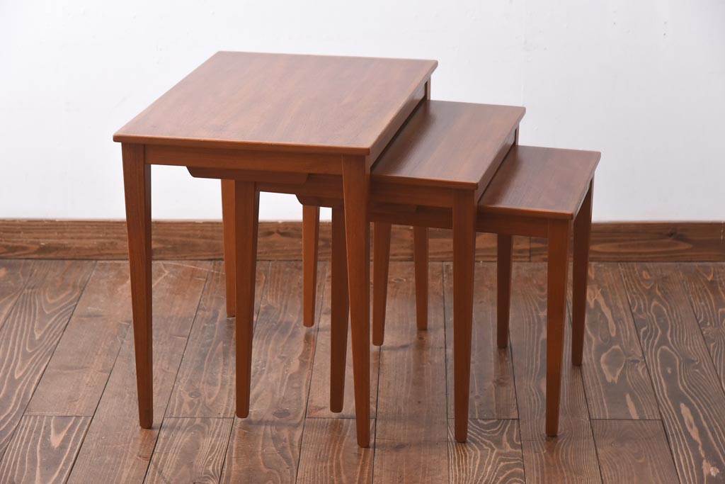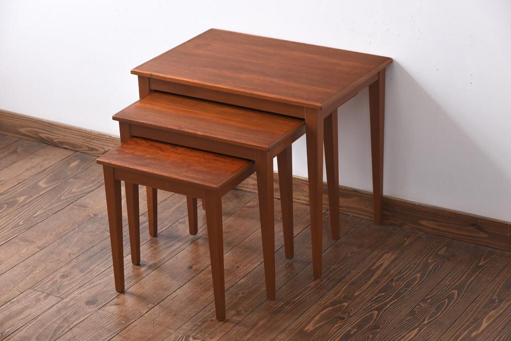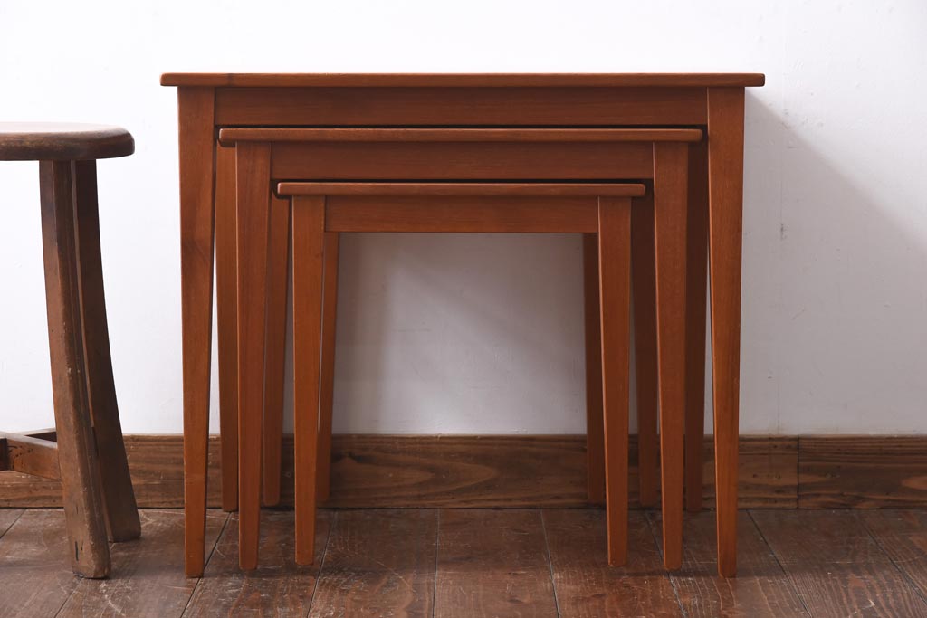 ラフジュ工房> テーブル> ネストテーブル > ヴィンテージ家具 北欧ビンテージ チーク材 ナチュラルモダンなネストテーブル(サイドテーブル、カフェテーブル)