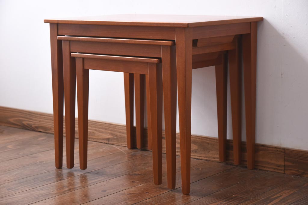 ラフジュ工房> テーブル> サイドテーブル > ヴィンテージ家具 北欧ビンテージ チーク材 ナチュラルモダンなネストテーブル(サイドテーブル、カフェテーブル)