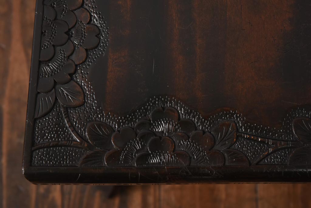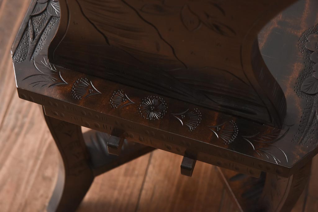 中古 伝統工芸 軽井沢彫り 細身の背もたれが特徴的なダイニングチェア(椅子)(3)