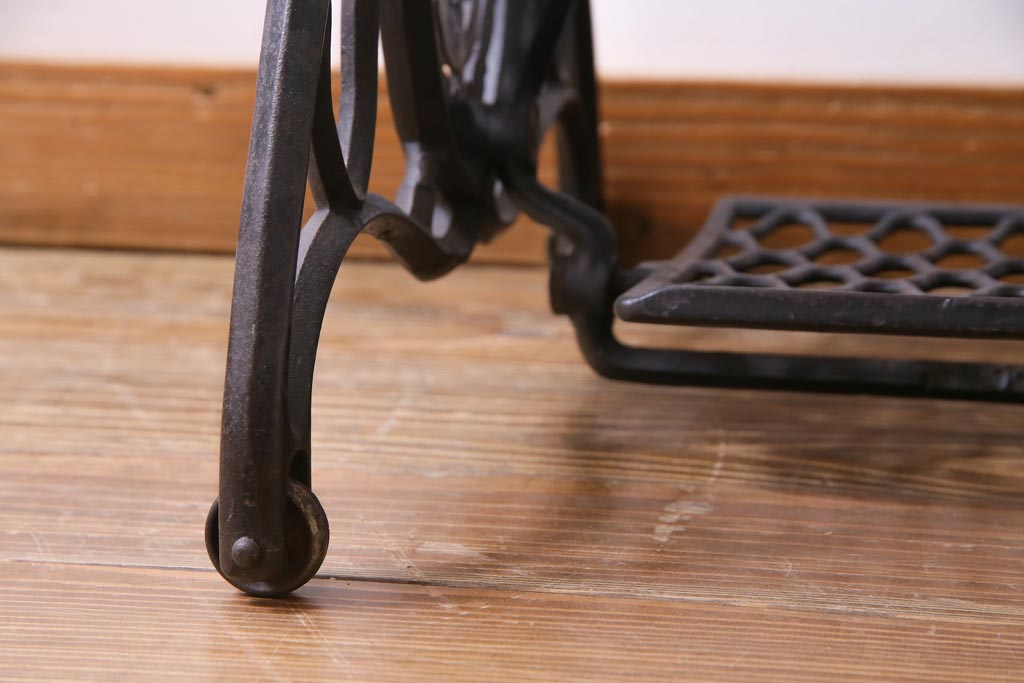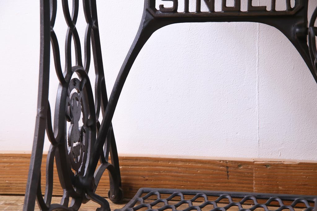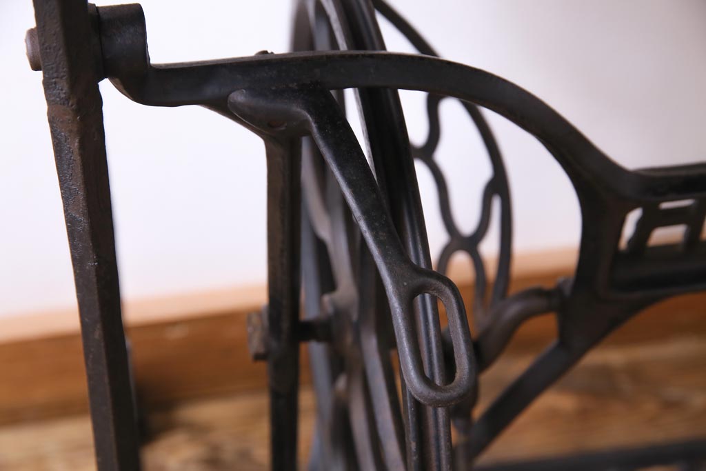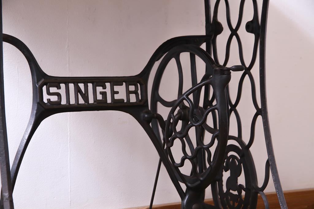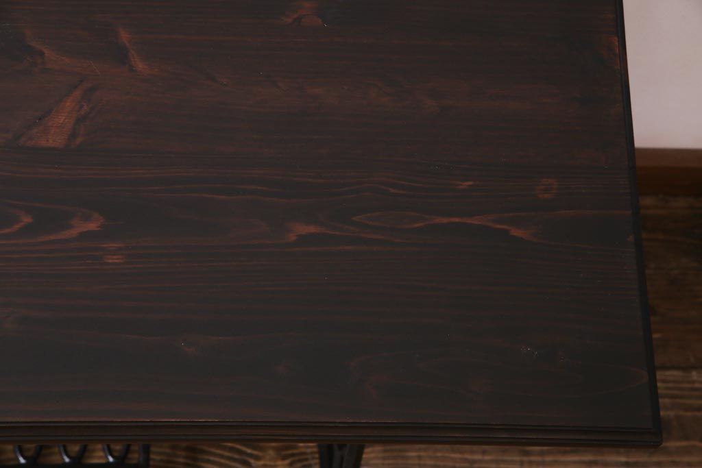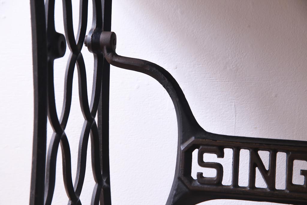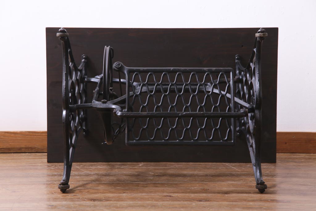 リメイク シンガー社(SINGER) 天板ヒノキ材 お洒落な雰囲気醸し出す鉄脚ミシンテーブル(シンガーミシン、サイドテーブル、カフェテーブル)