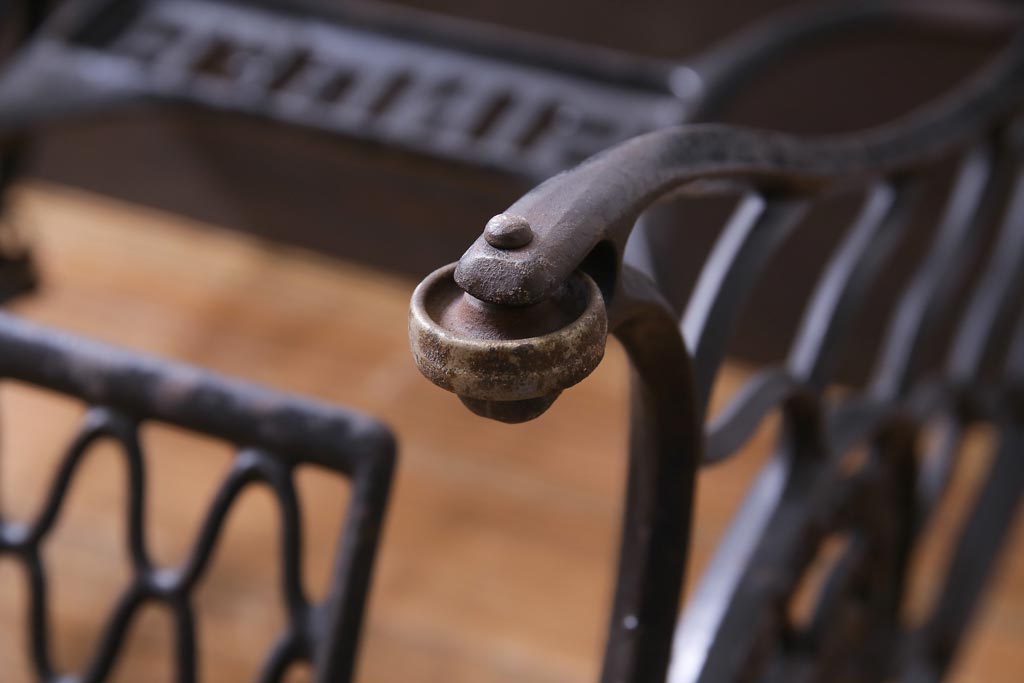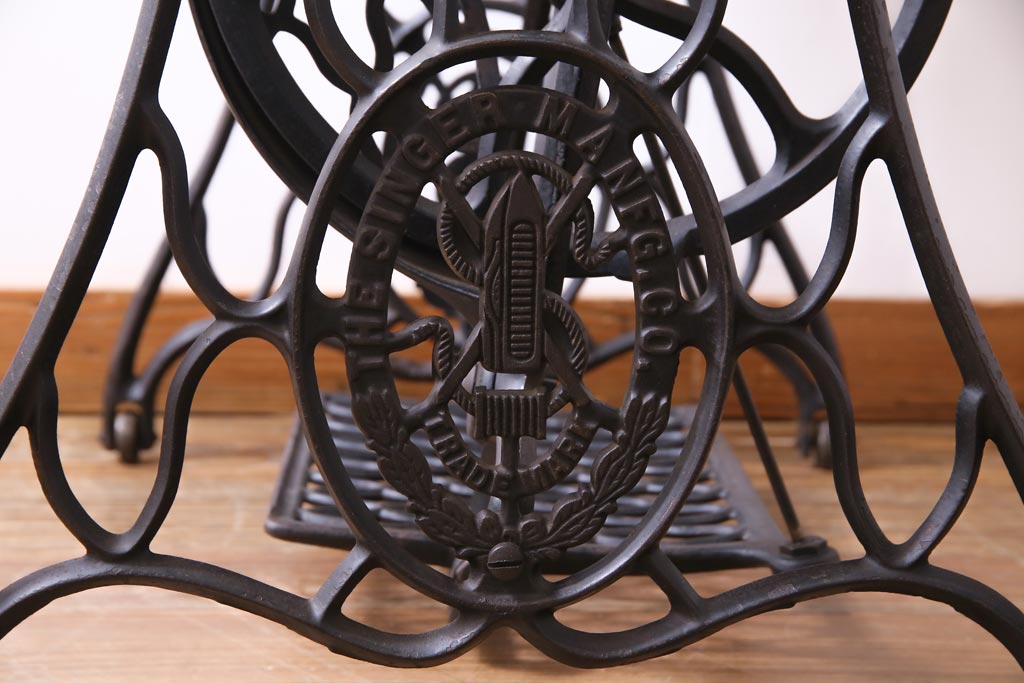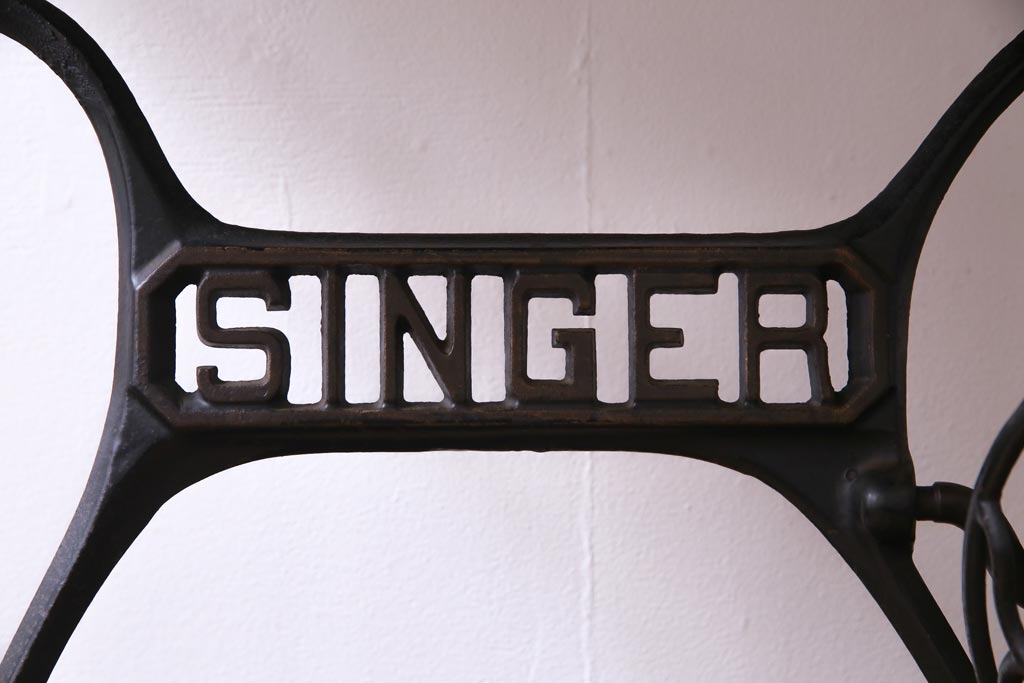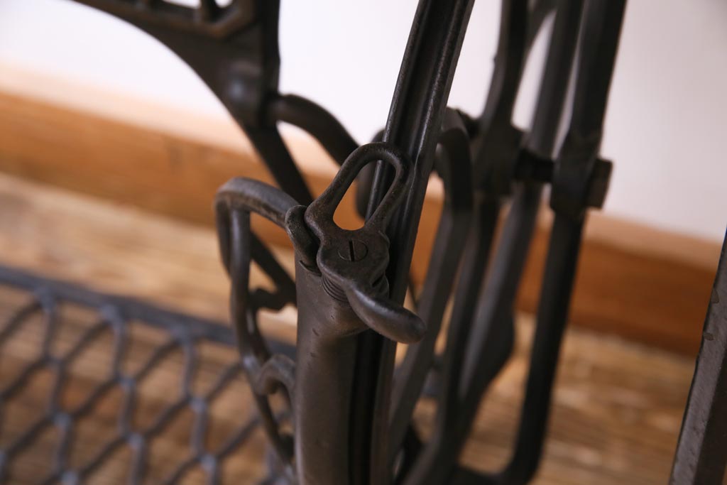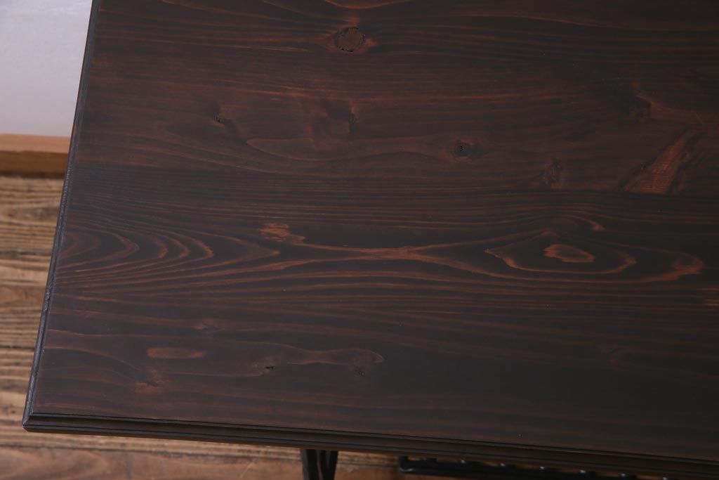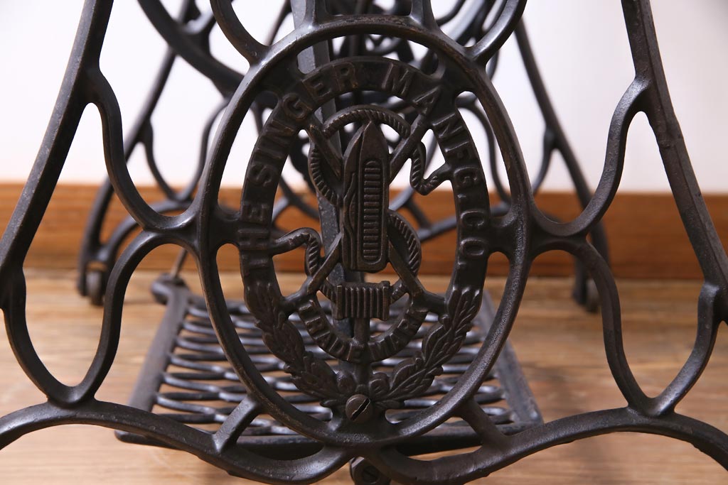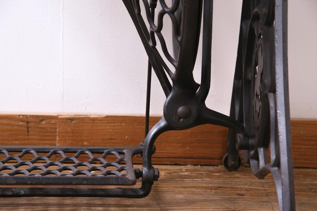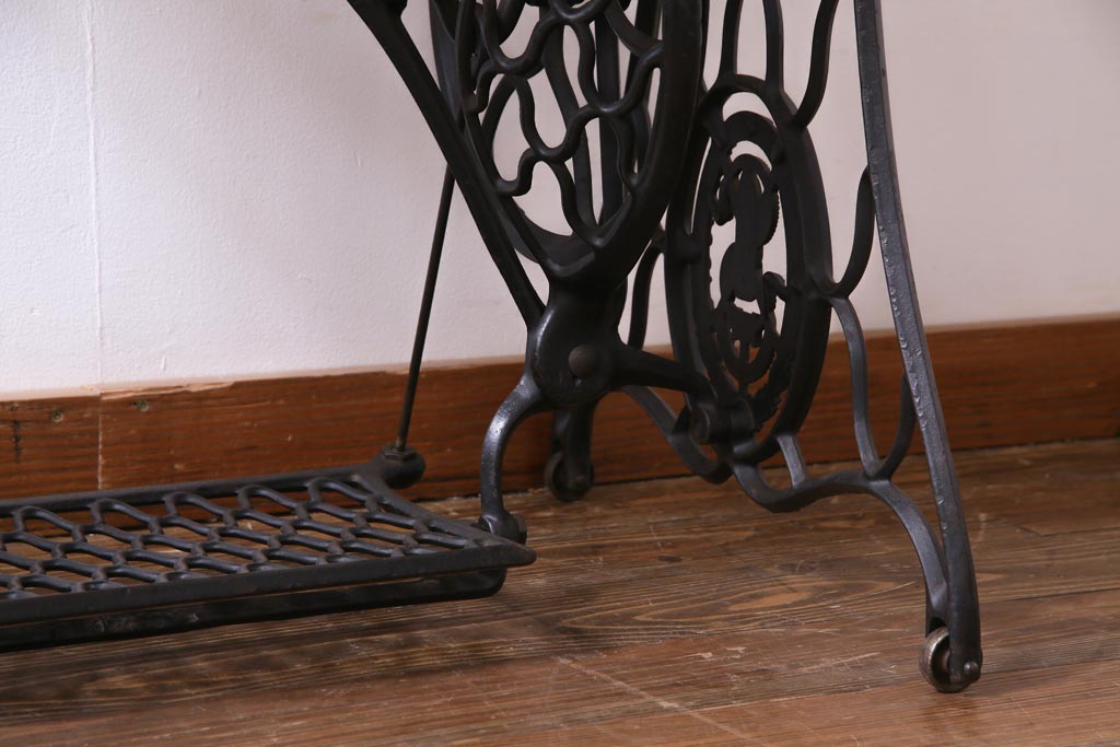 リメイク シンガー社(SINGER) 天板ヒノキ材 お洒落な雰囲気醸し出す鉄脚ミシンテーブル(シンガーミシン、サイドテーブル、カフェテーブル)