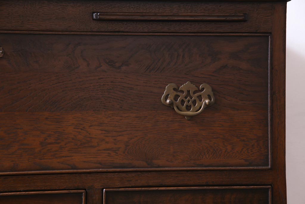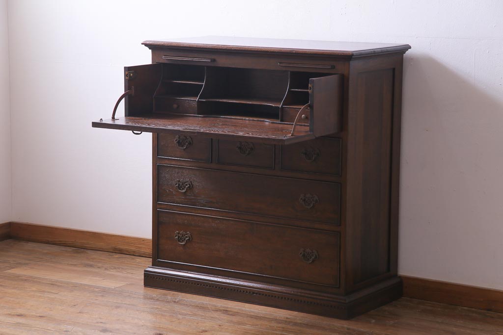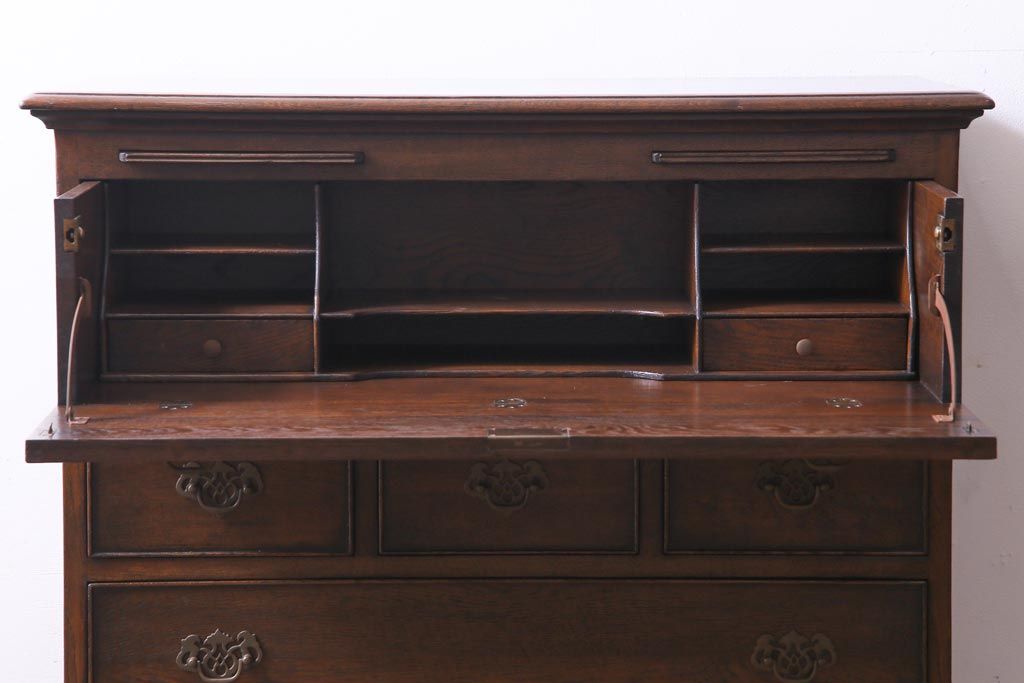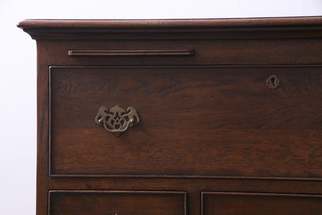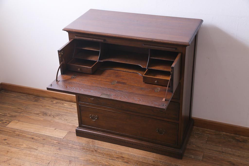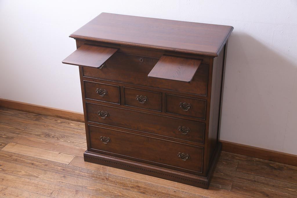 ヴィンテージ家具 イギリスビンテージ オーク材 すっきりとしたつくりのチェスト型ライティングビューロー
