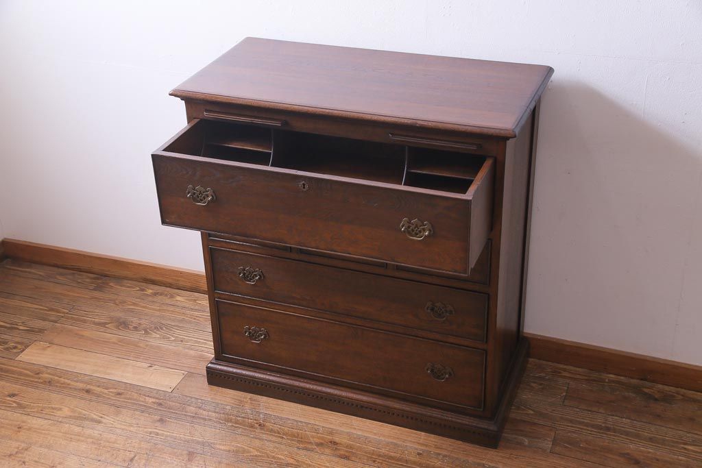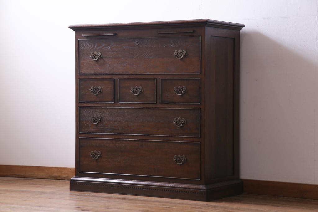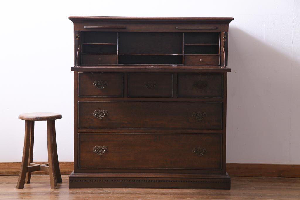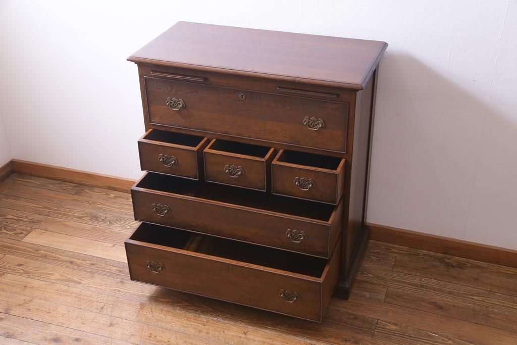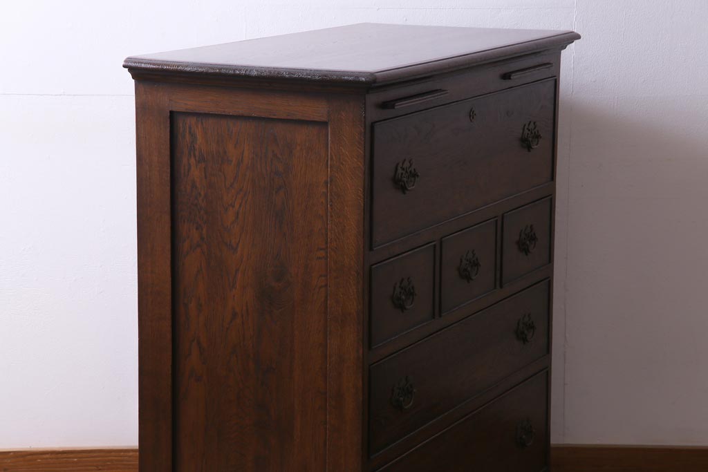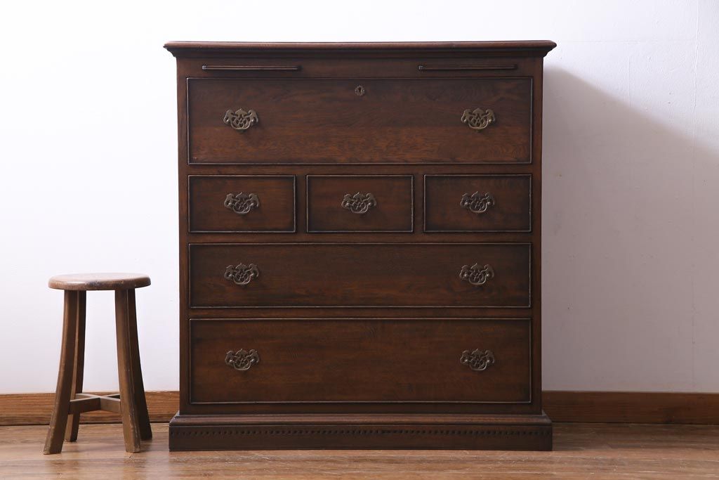 ヴィンテージ家具 イギリスビンテージ オーク材 すっきりとしたつくりのチェスト型ライティングビューロー