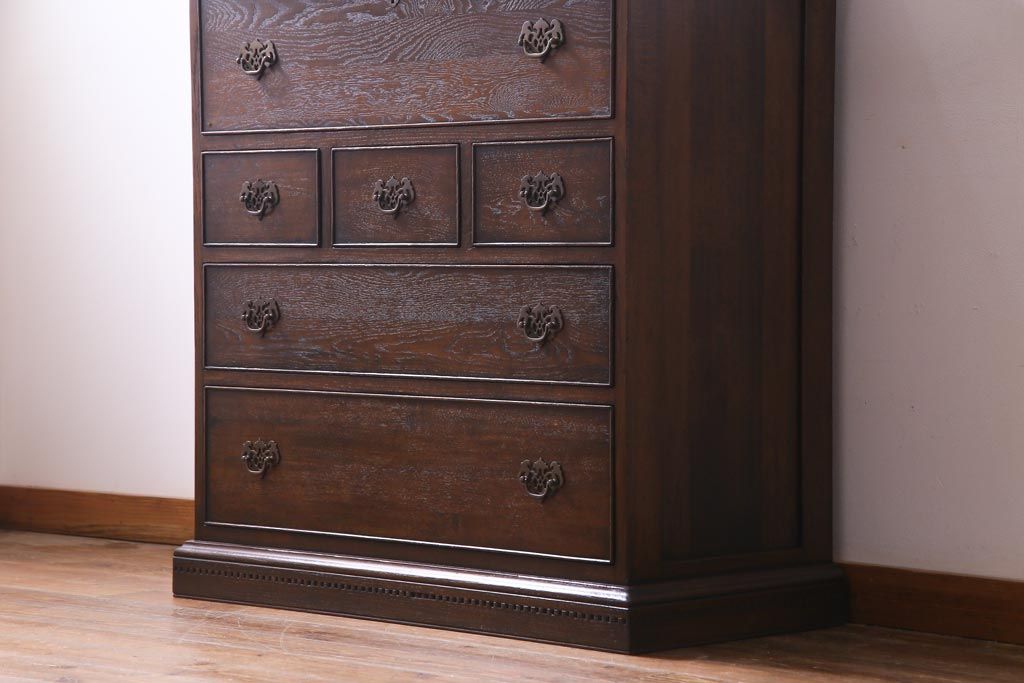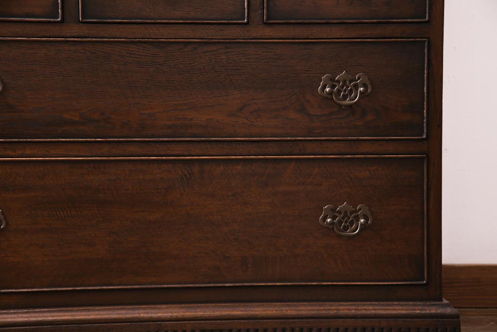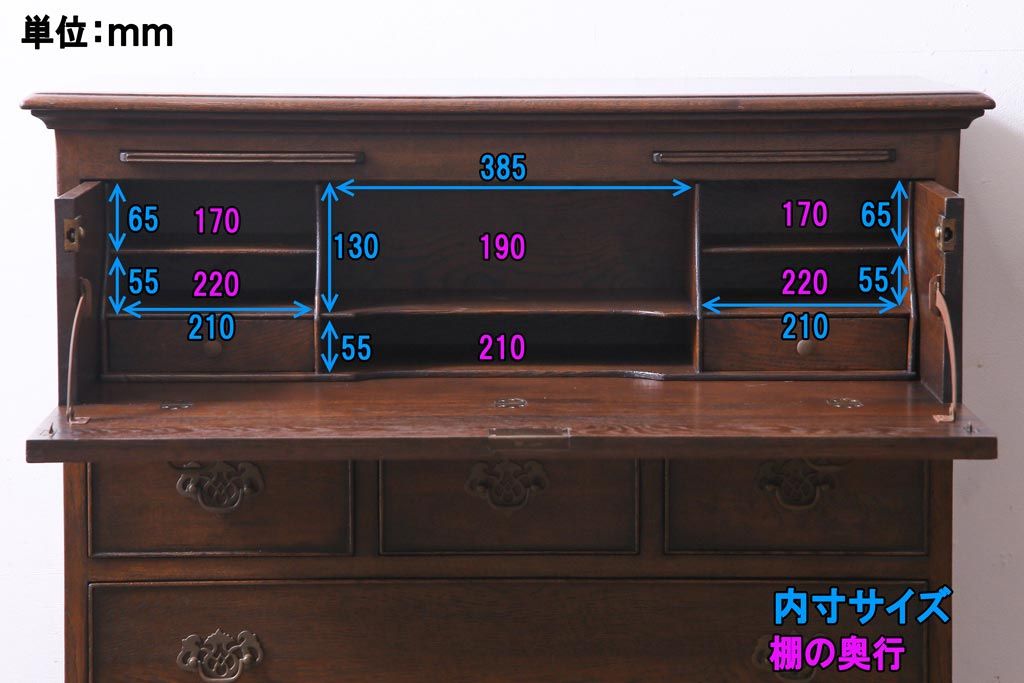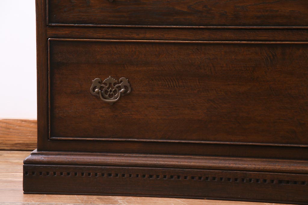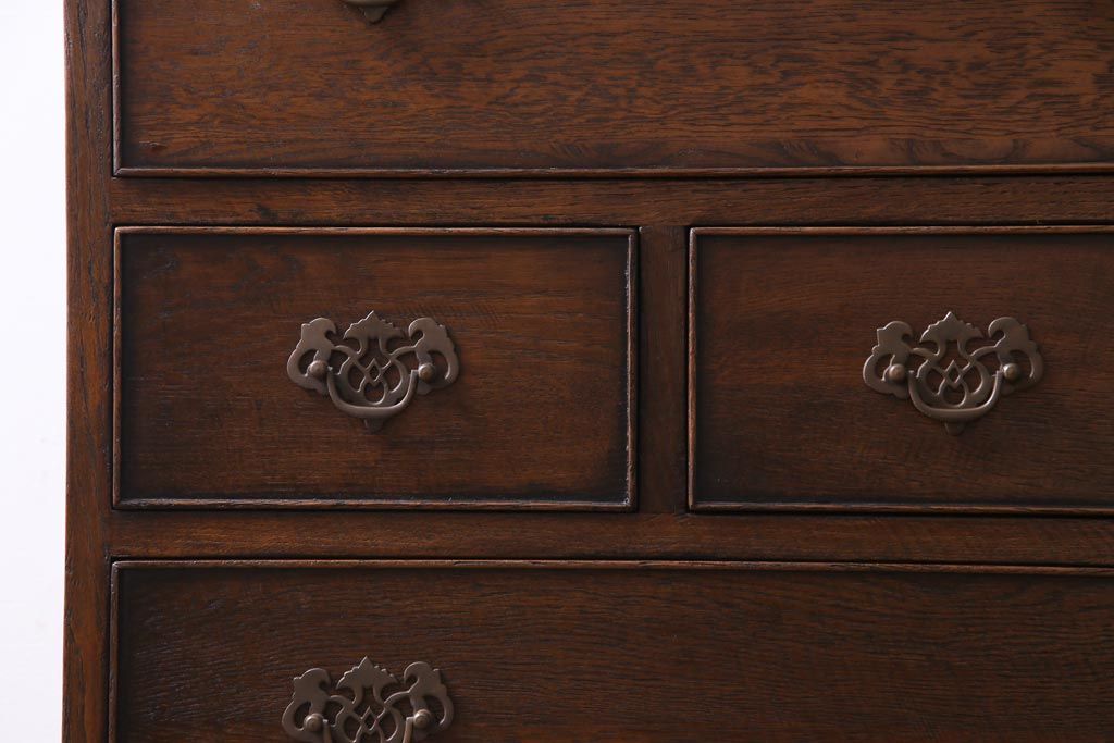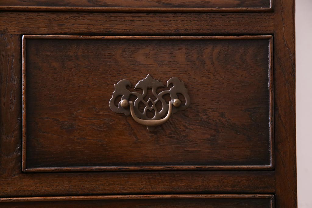 ヴィンテージ家具 イギリスビンテージ オーク材 すっきりとしたつくりのチェスト型ライティングビューロー