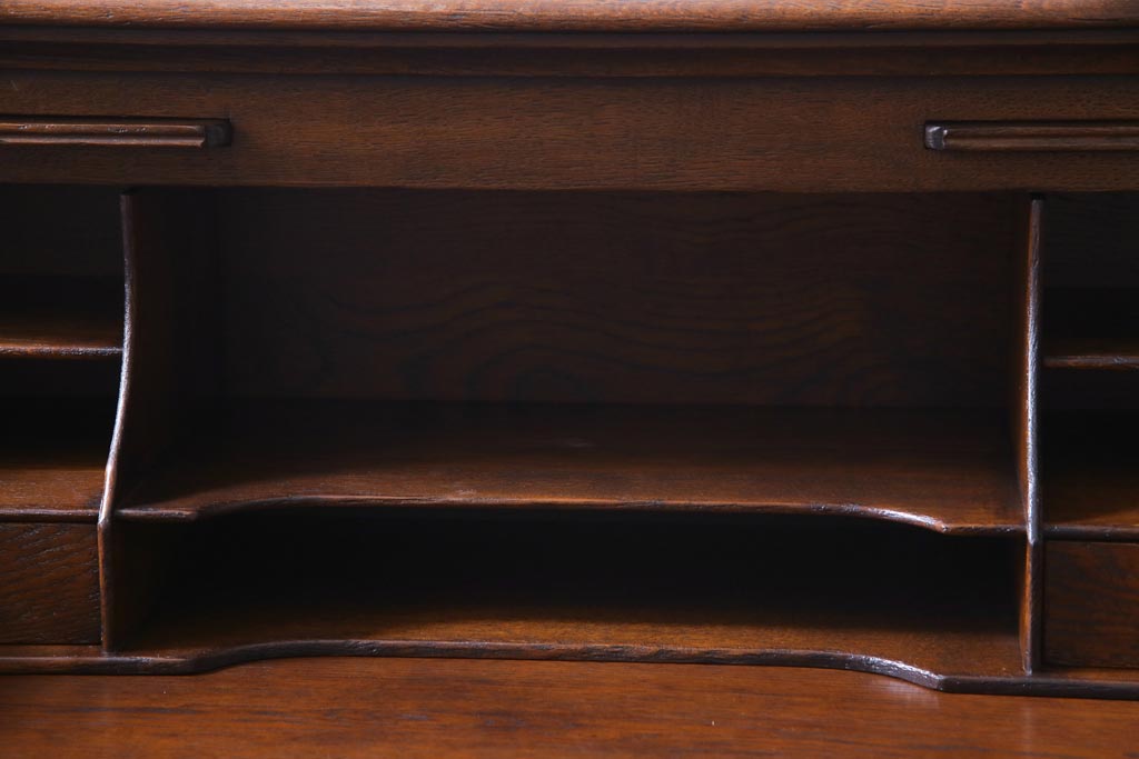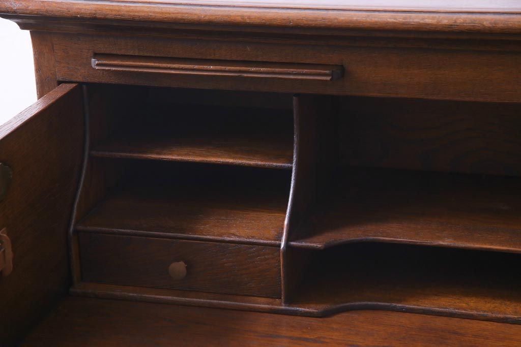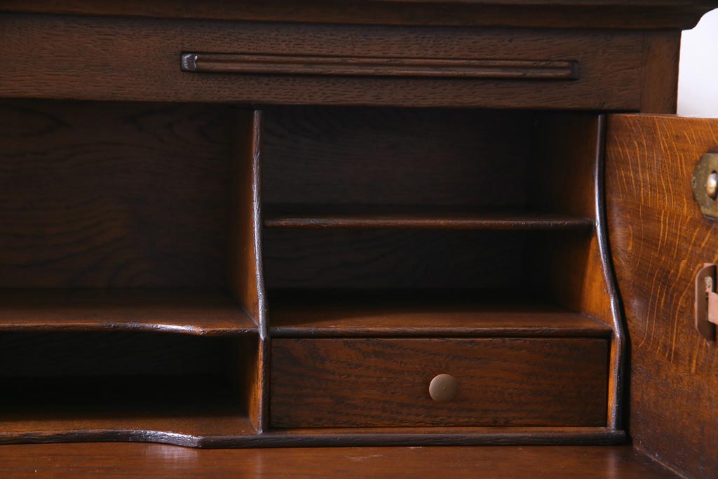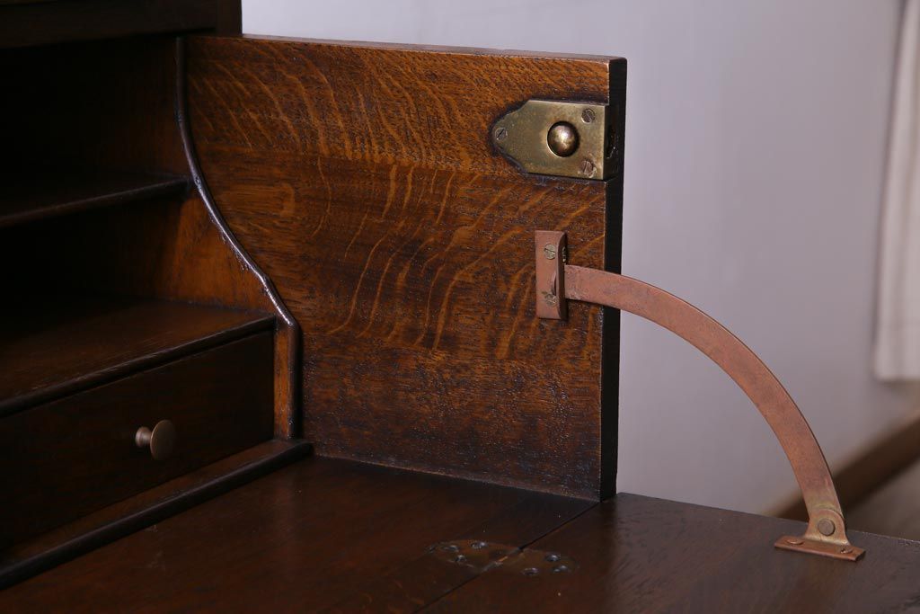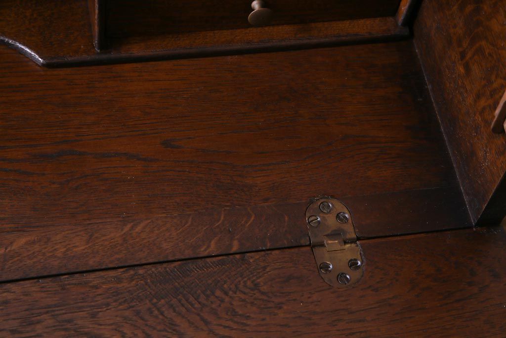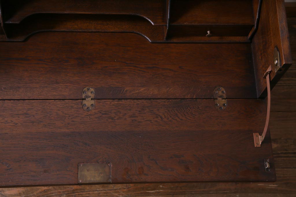 ラフジュ工房> デスク> ライティングビューロー・簿記机 > ヴィンテージ家具 イギリスビンテージ オーク材 すっきりとしたつくりのチェスト型ライティングビューロー