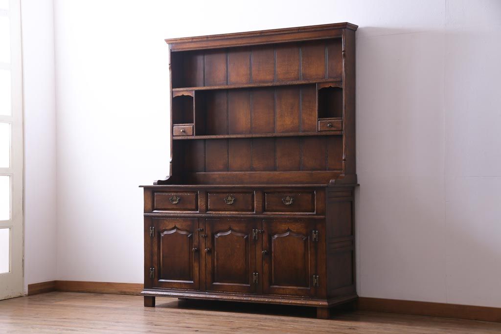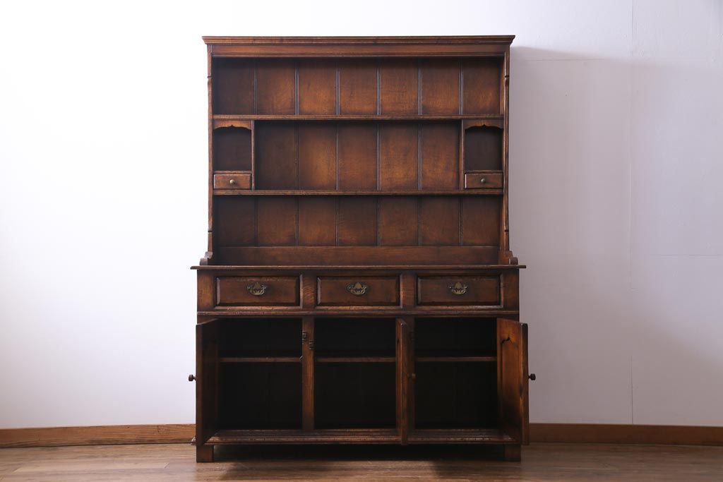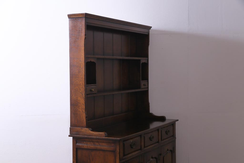 ヴィンテージ家具 イギリスビンテージ オーク材 堅牢な佇まいのオープンカップボード(食器棚、飾り棚)