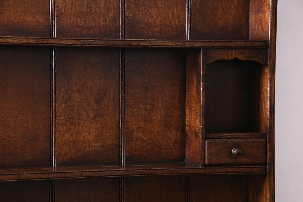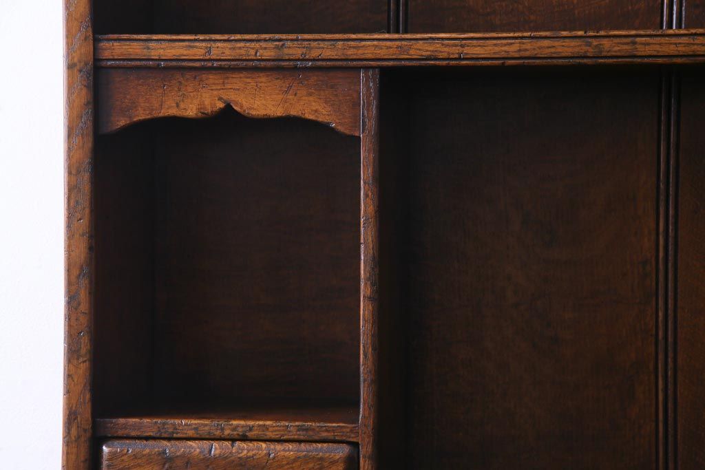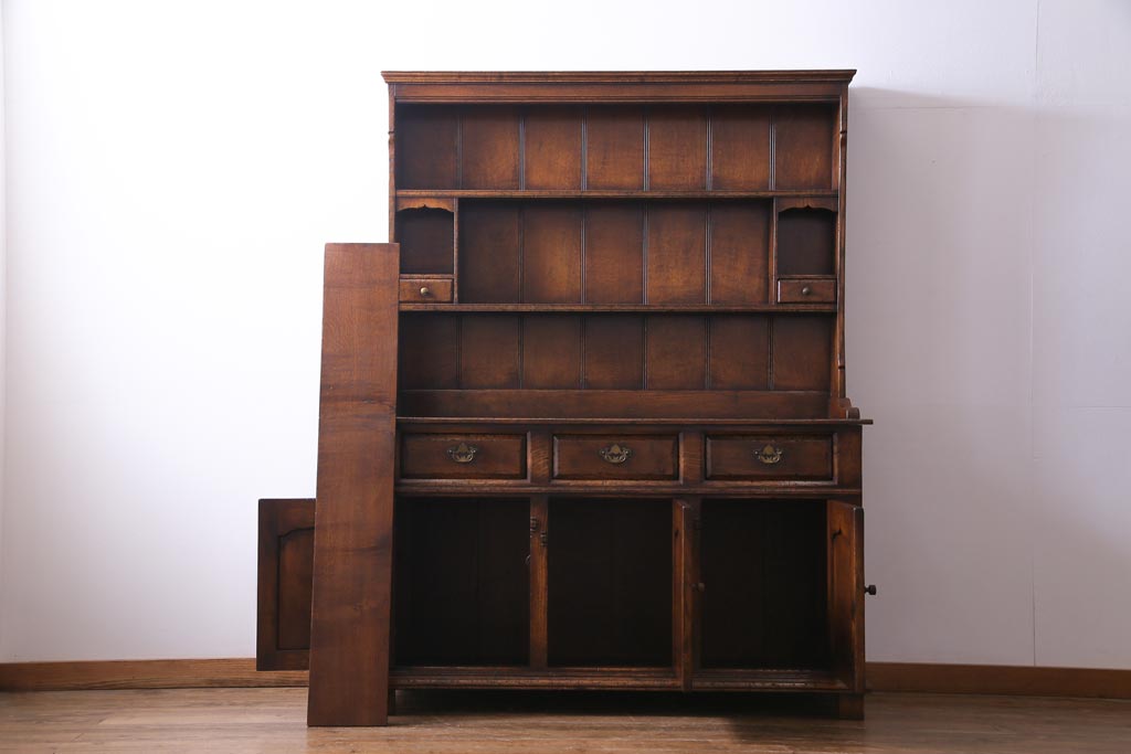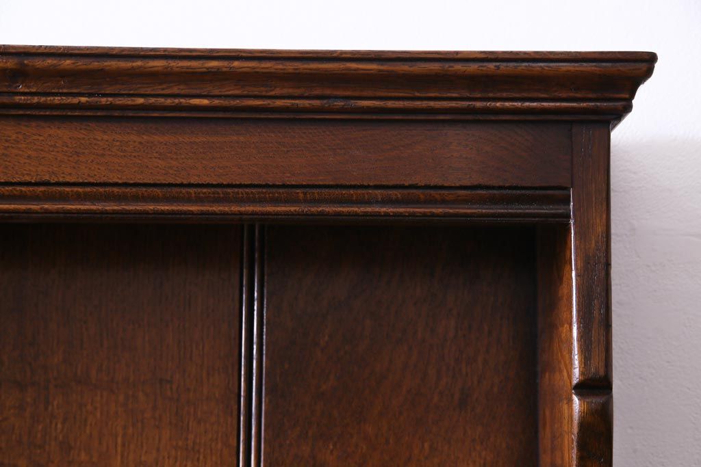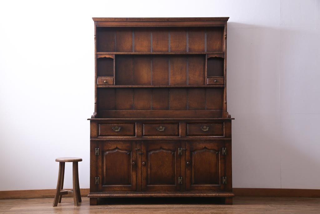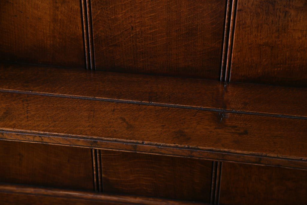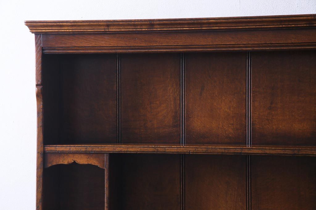ラフジュ工房> キャビネット・戸棚> 食器棚・カップボード > ヴィンテージ家具 イギリスビンテージ オーク材 堅牢な佇まいのオープンカップボード(食器棚、飾り棚)