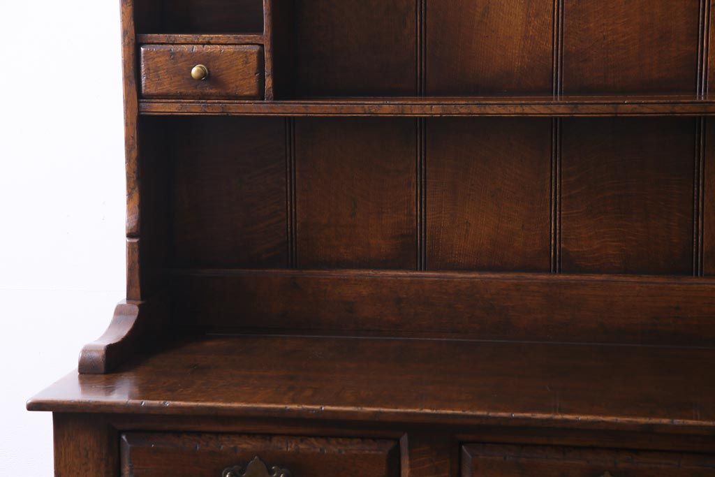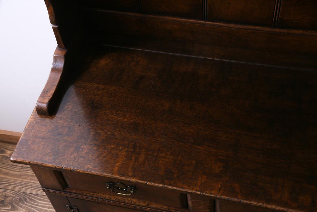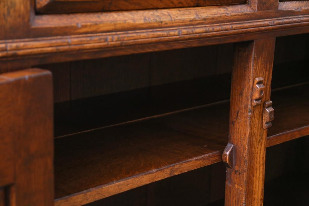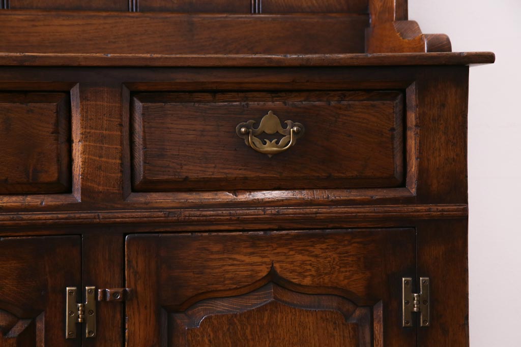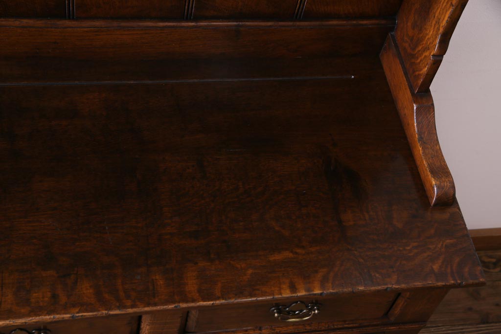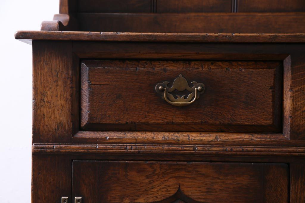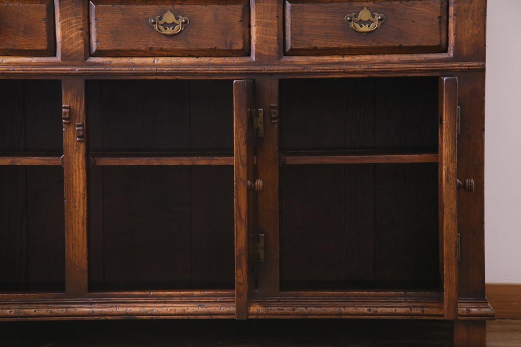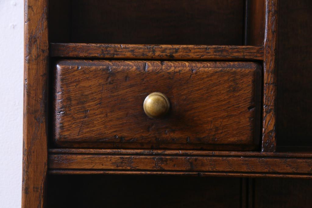 ラフジュ工房> キャビネット・戸棚> 食器棚・カップボード > ヴィンテージ家具 イギリスビンテージ オーク材 堅牢な佇まいのオープンカップボード(食器棚、飾り棚)