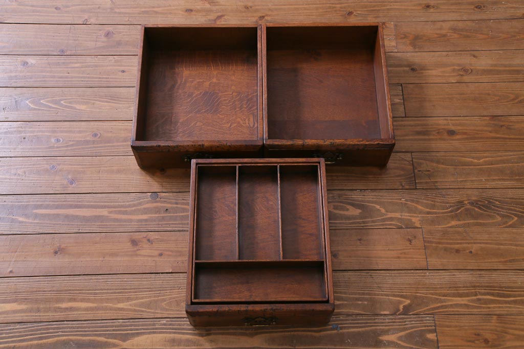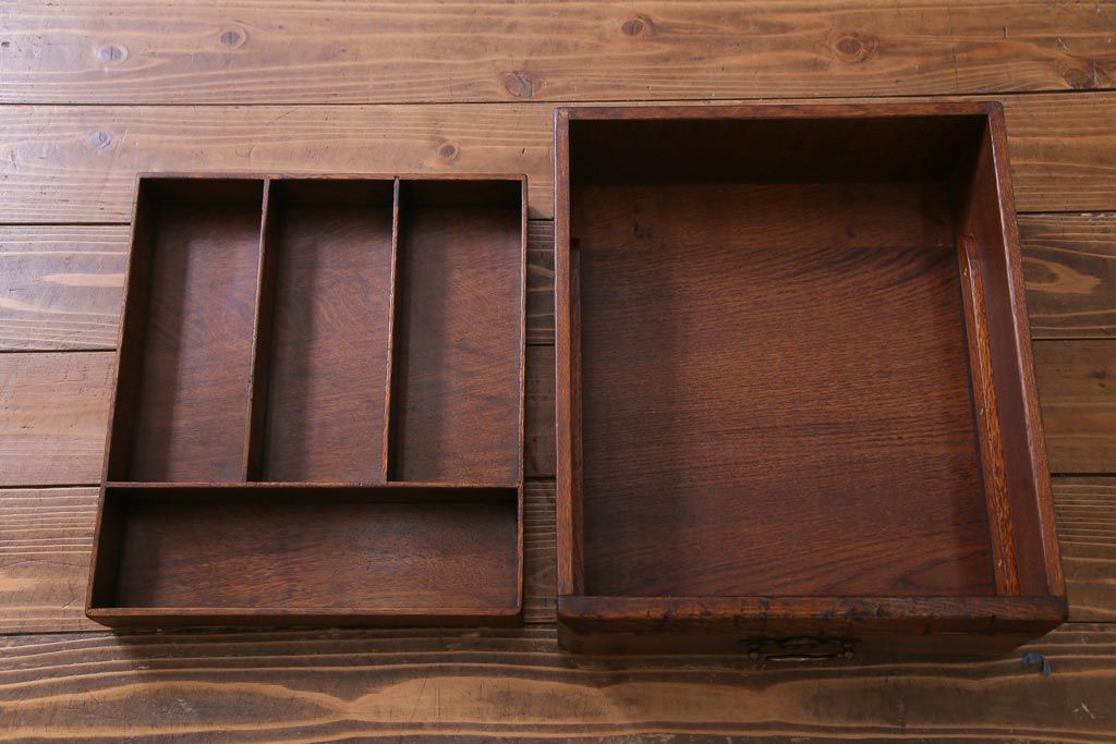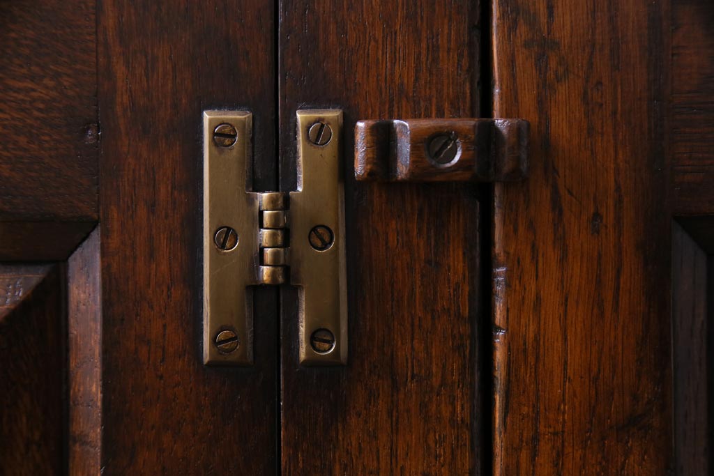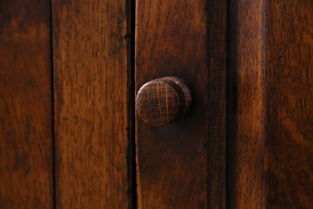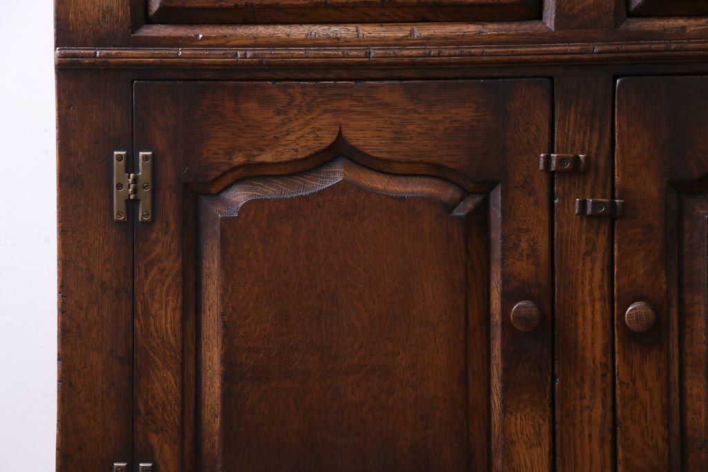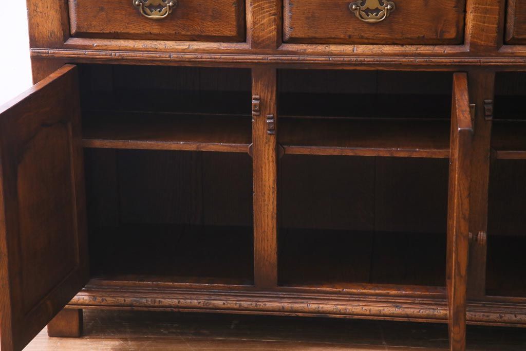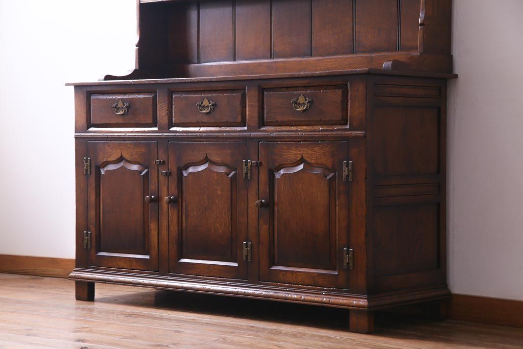 ラフジュ工房> キャビネット・戸棚> 食器棚・カップボード > ヴィンテージ家具 イギリスビンテージ オーク材 堅牢な佇まいのオープンカップボード(食器棚、飾り棚)