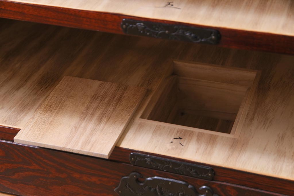 最下段の引き出しを抜くと隠しがお使いいただけます。