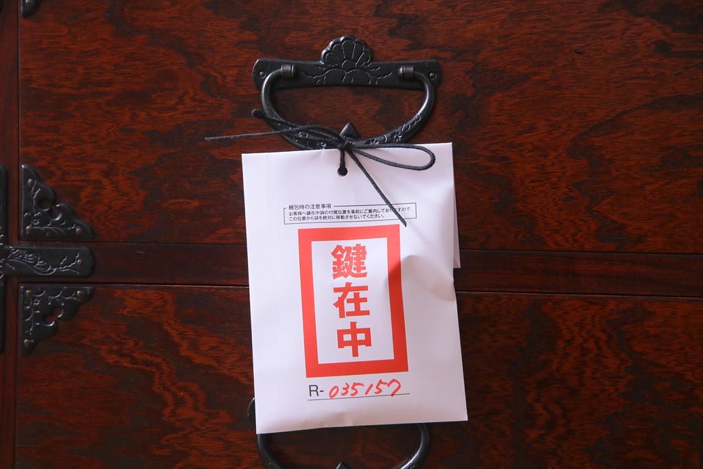 鍵は付属します。画像にありますように、袋に入れお付けします。スムーズに動くように調整していますが、あくまでも古いものや中古品ですので、長期の使用保証は出来かねます。ご購入後不具合が発生した場合は、当店でサポートさせていただきますので、お気軽にご相談くださいませ。