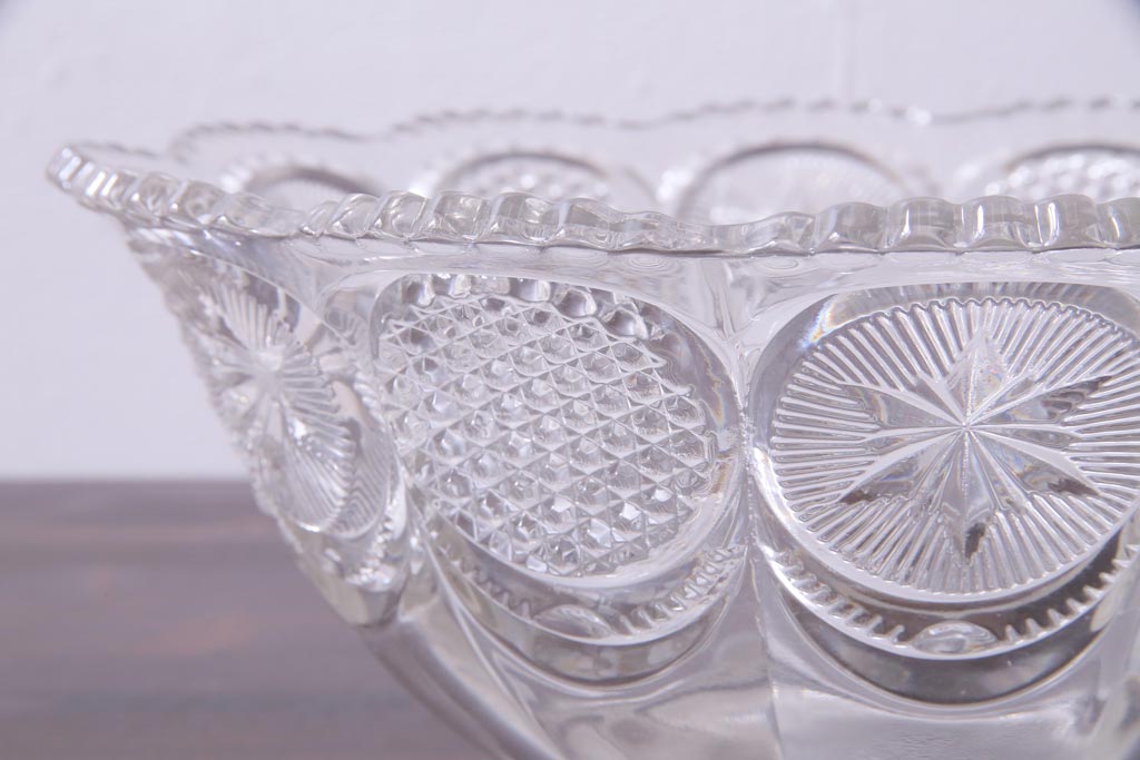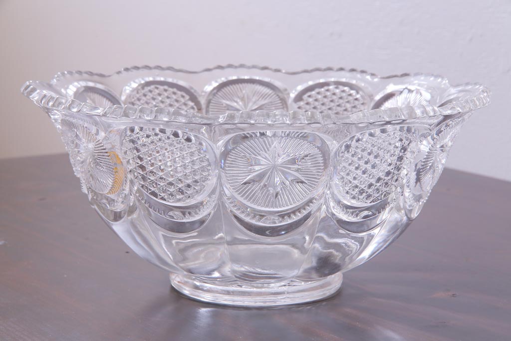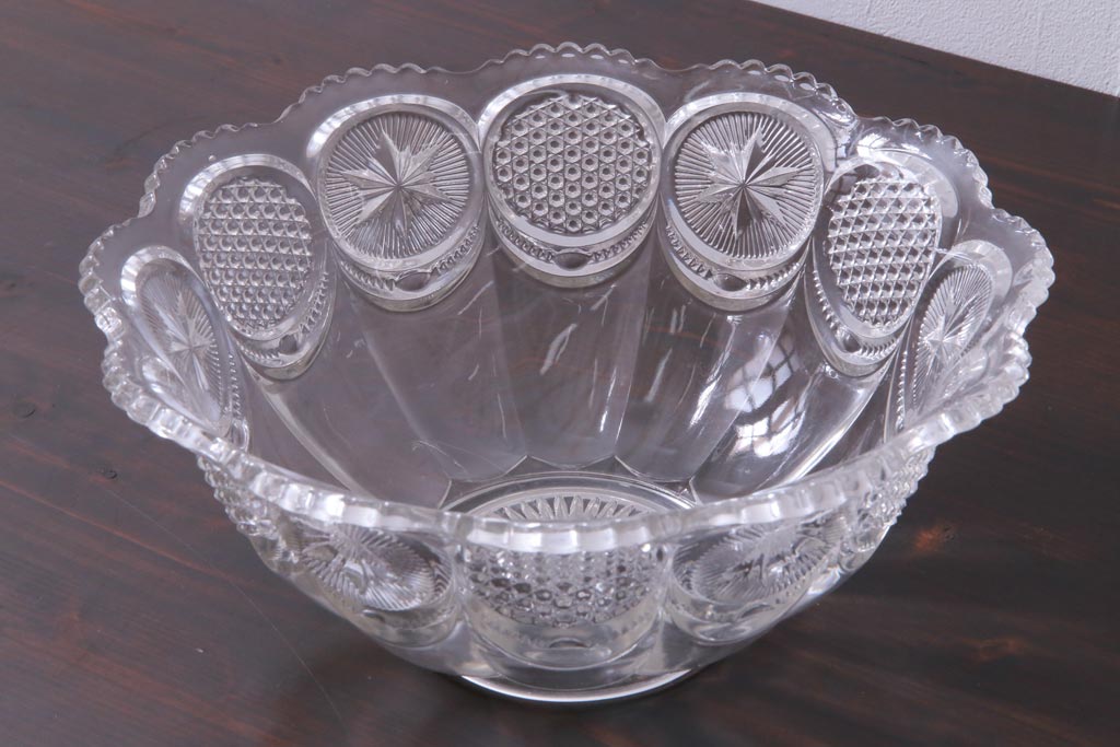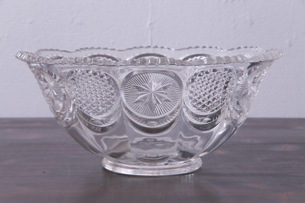 ラフジュ工房> 骨董・美術品> 骨董-ガラス食器 > アンティーク雑貨 アメリカビンテージ 星模様が可愛らしいプレスガラスのボウル(深鉢)