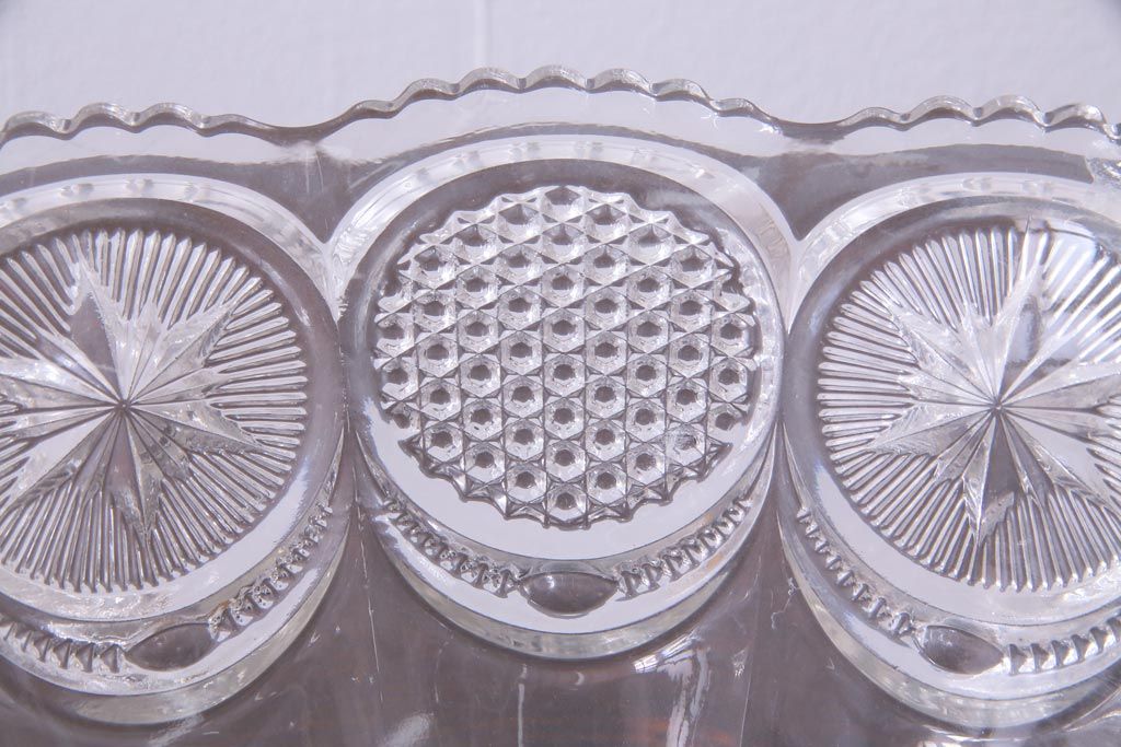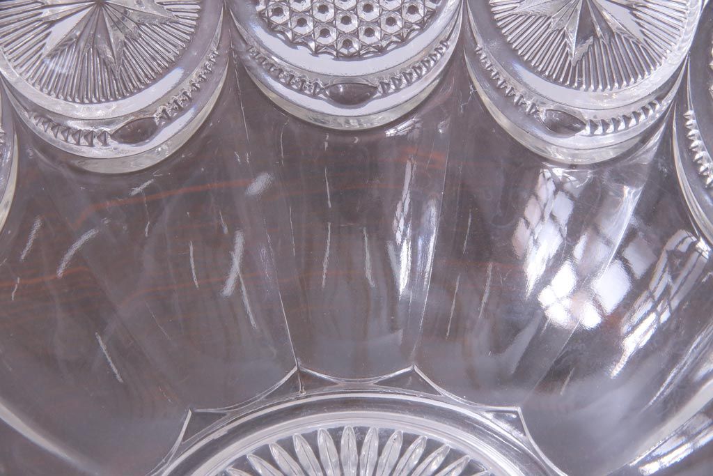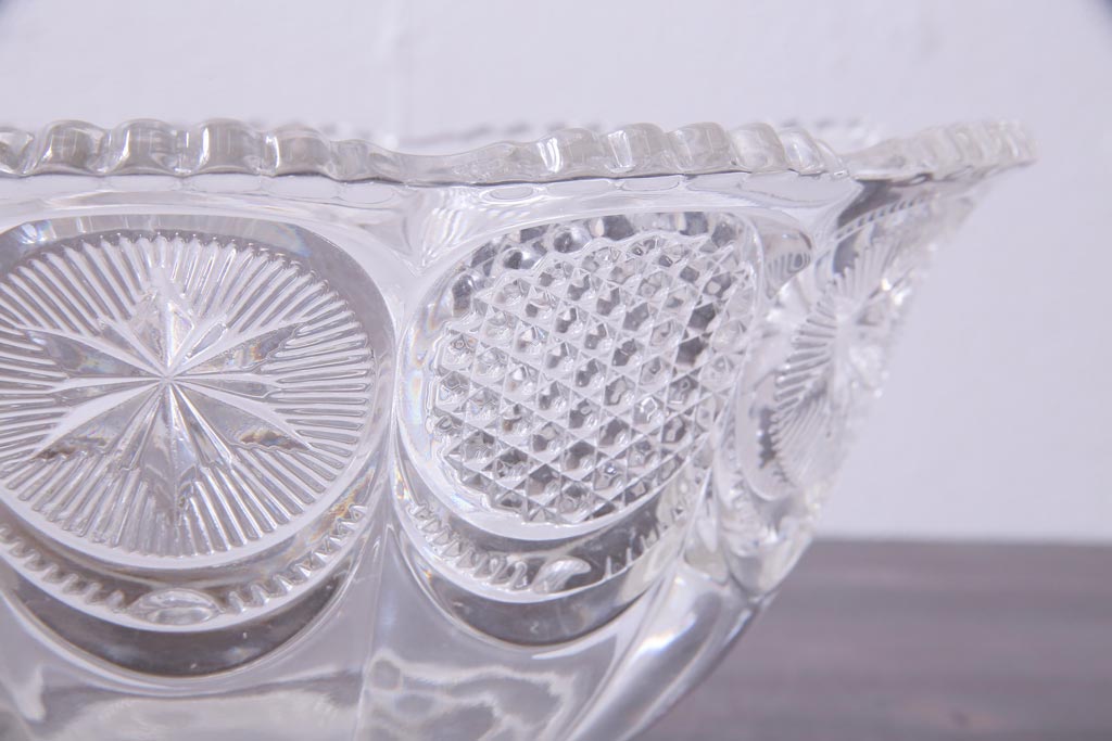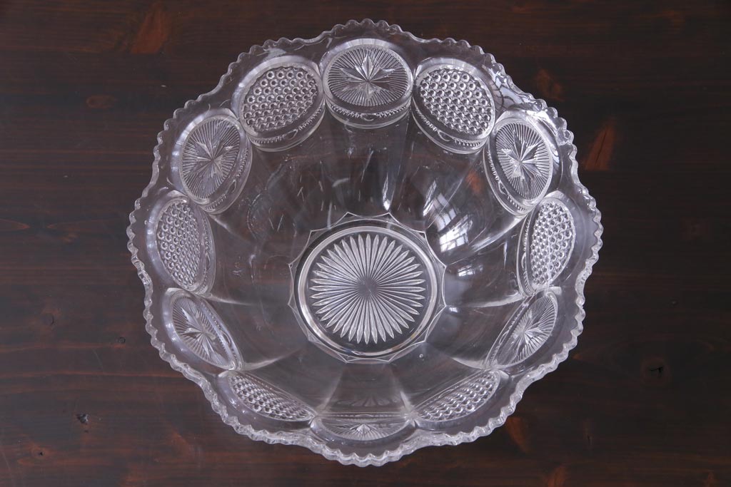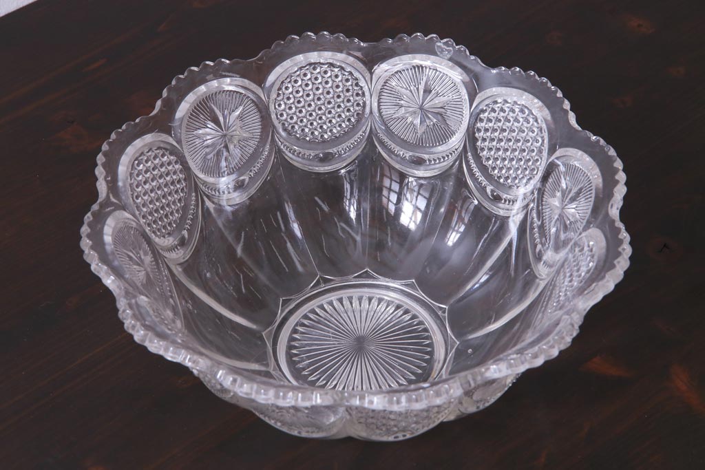 ラフジュ工房> 骨董・美術品> 骨董-ガラス食器 > アンティーク雑貨 アメリカビンテージ 星模様が可愛らしいプレスガラスのボウル(深鉢)