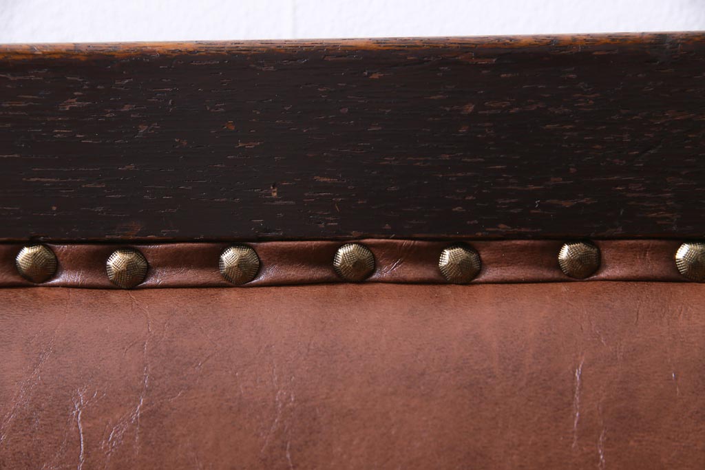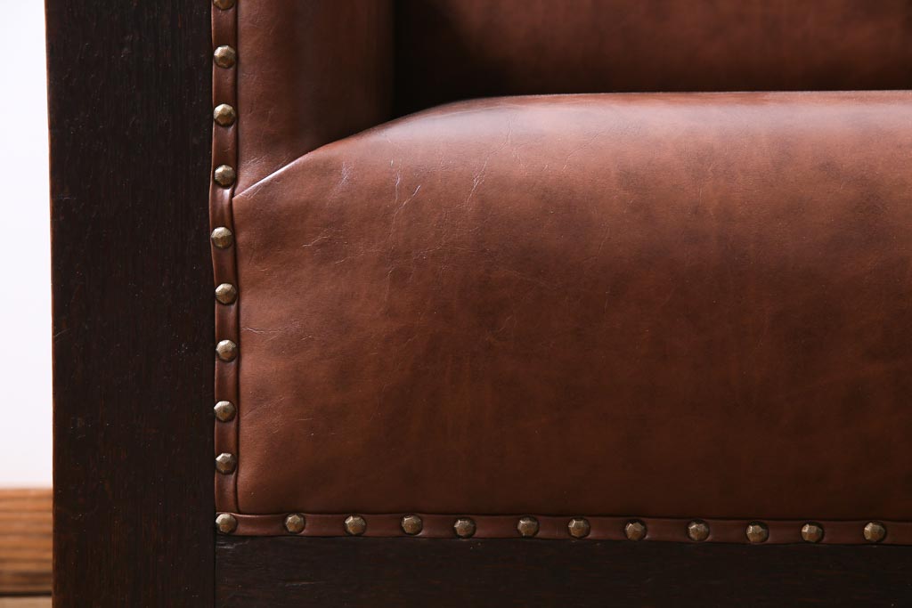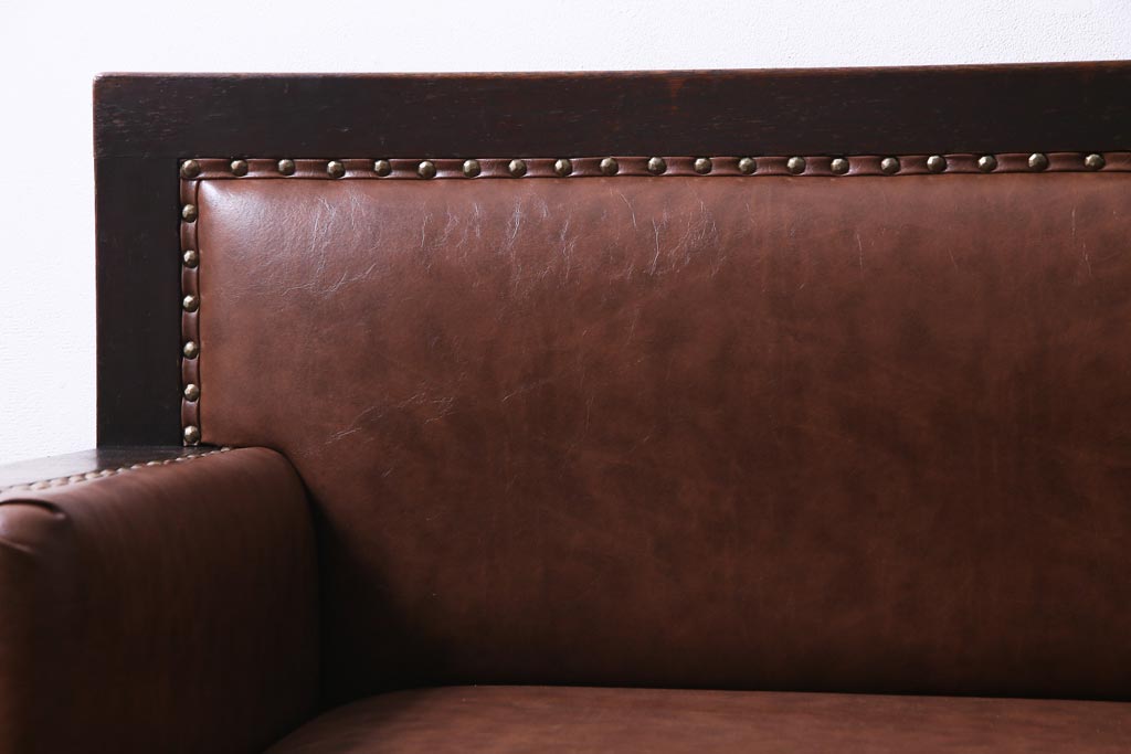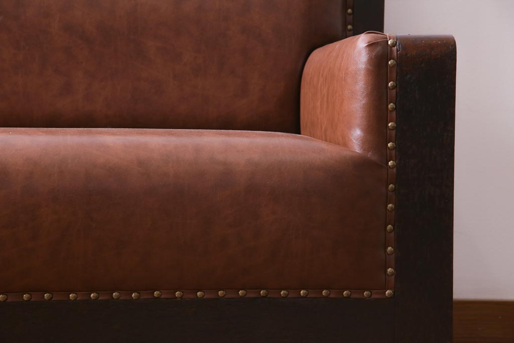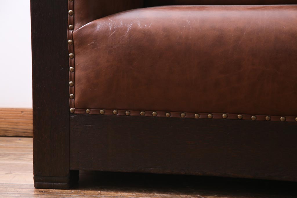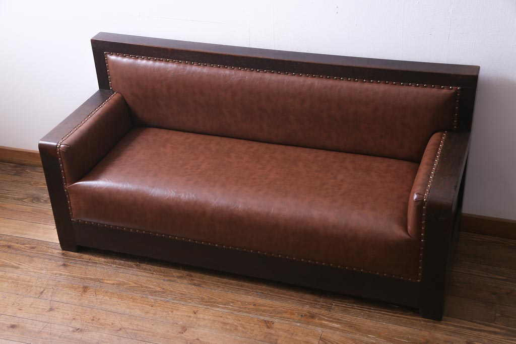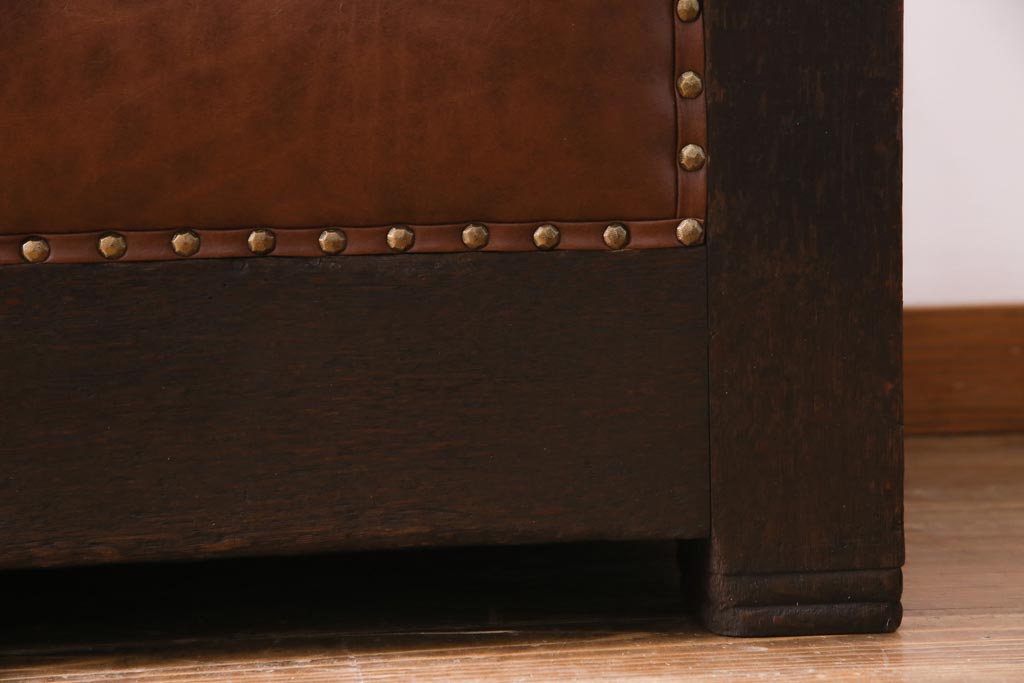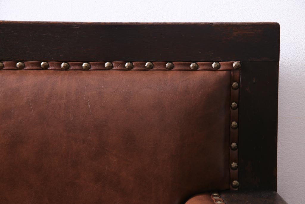アンティーク家具 和製アンティーク ナラ材 座面合皮 大正浪漫 重厚な佇まいと和洋折衷なデザインがお洒落なソファ