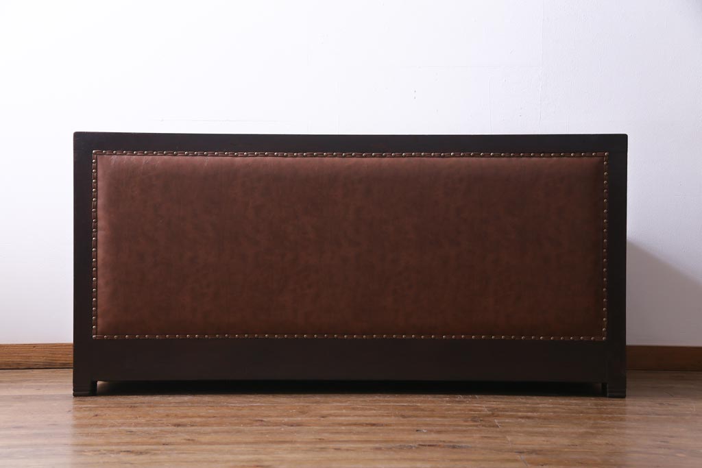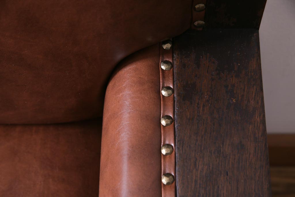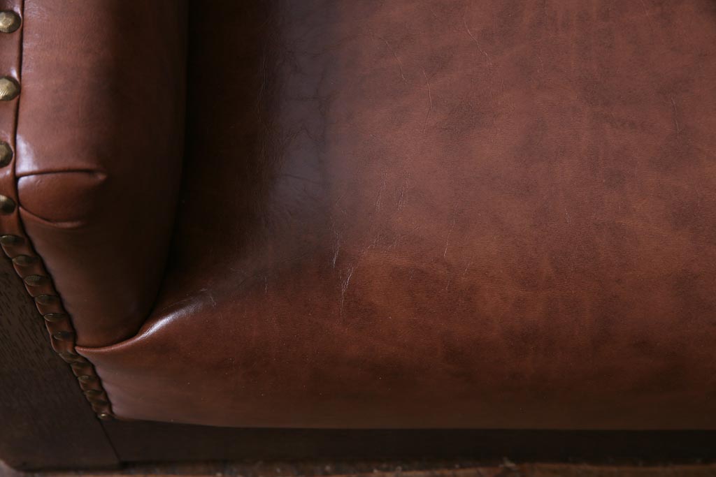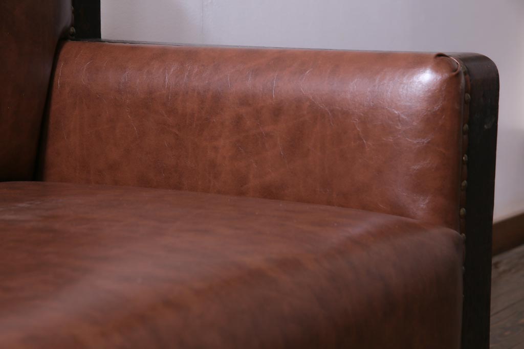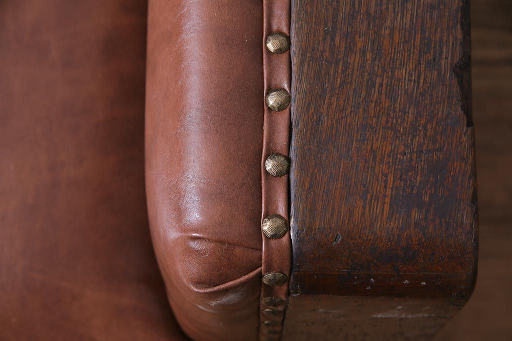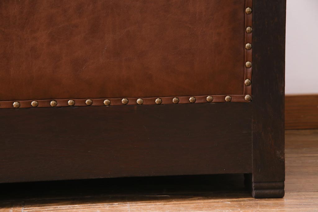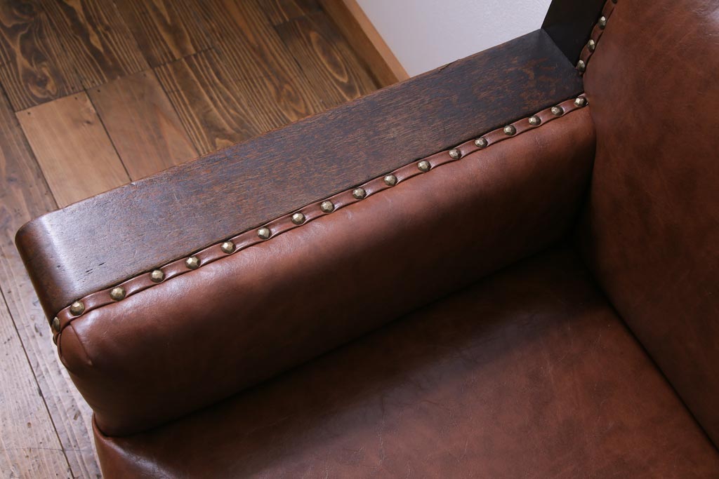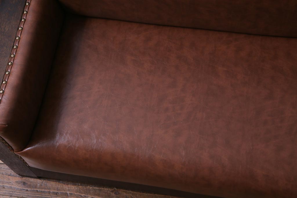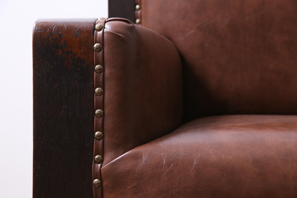 アンティーク家具 和製アンティーク ナラ材 座面合皮 大正浪漫 重厚な佇まいと和洋折衷なデザインがお洒落なソファ