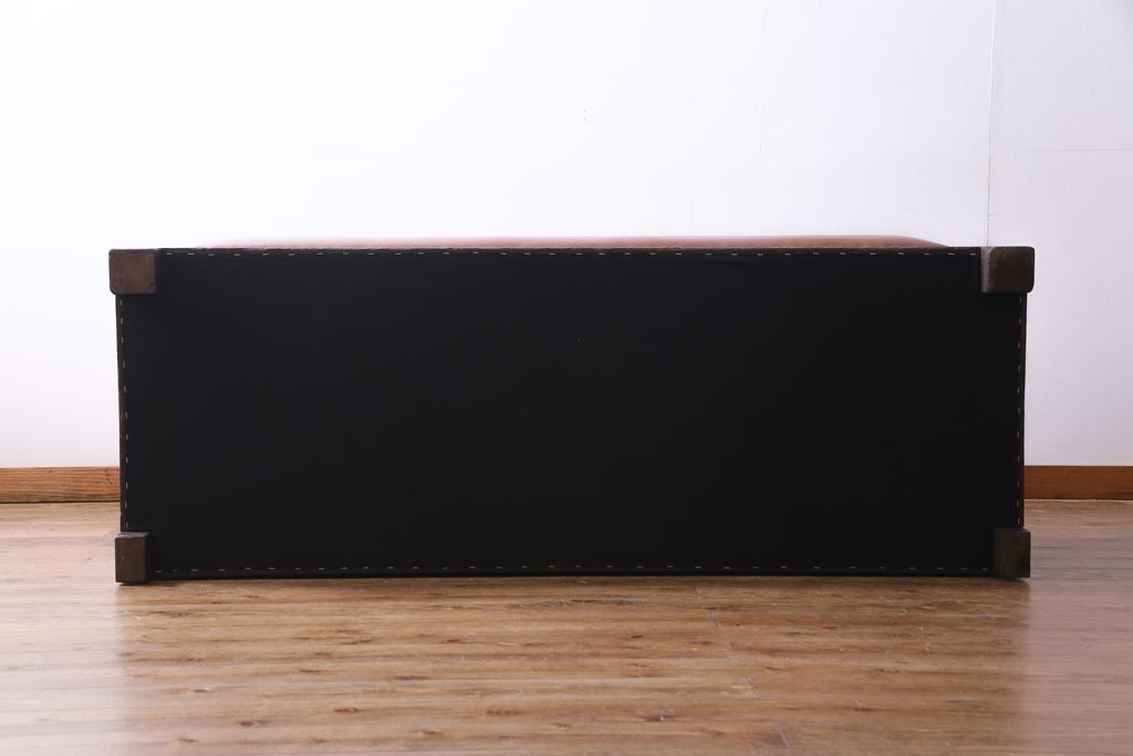 ラフジュ工房> 古家具 > アンティーク家具 和製アンティーク ナラ材 座面合皮 大正浪漫 重厚な佇まいと和洋折衷なデザインがお洒落なソファ