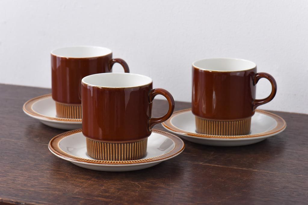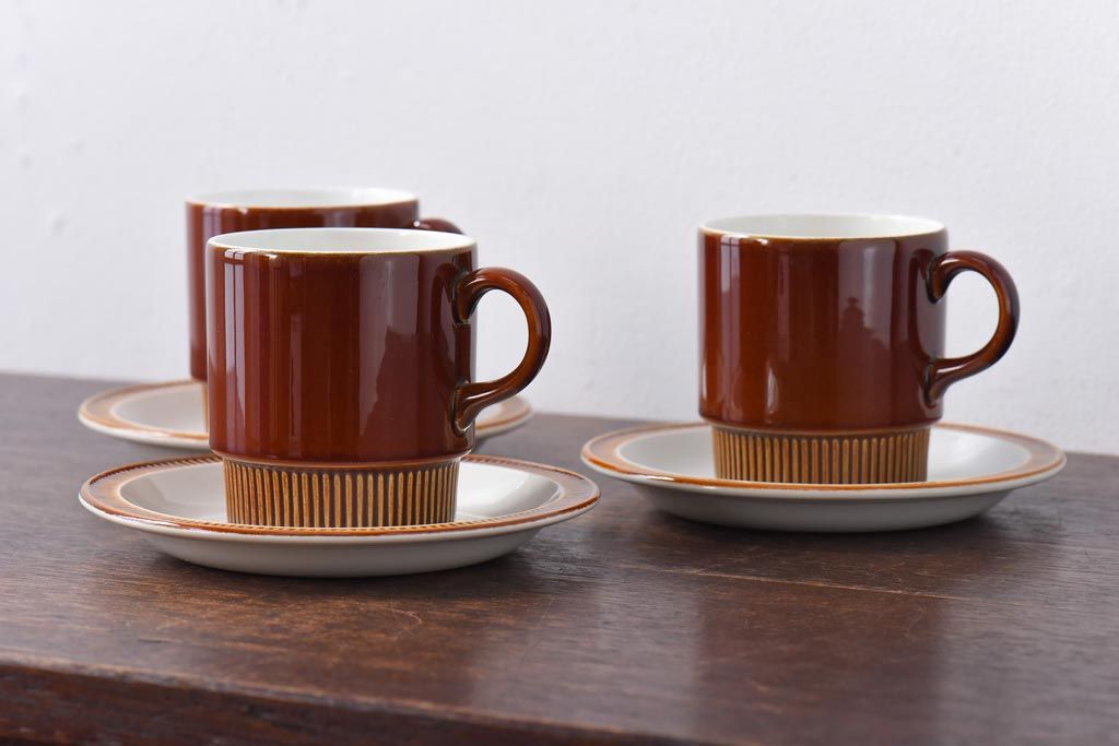 ラフジュ工房> 洋食器・キッチン用品> カップ&ソーサー > イギリスビンテージ Poole Pottery(プール・ポタリー) コンパクトシリーズ カップ&ソーサー3客セット(3)