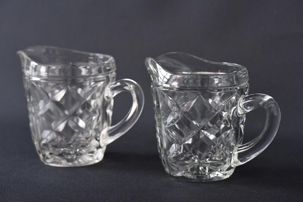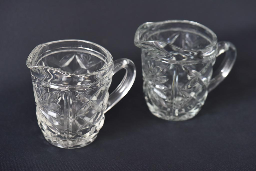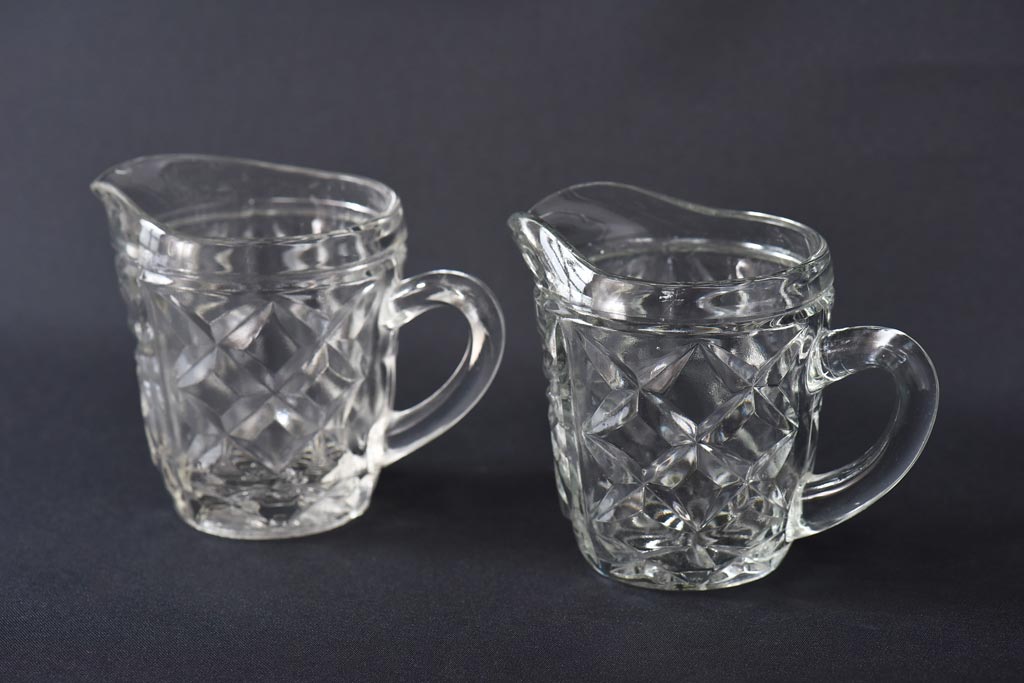 アンティーク雑貨 イギリスビンテージ 繊細な雰囲気を醸し出すガラスピッチャー2個セット(ジャグ)
