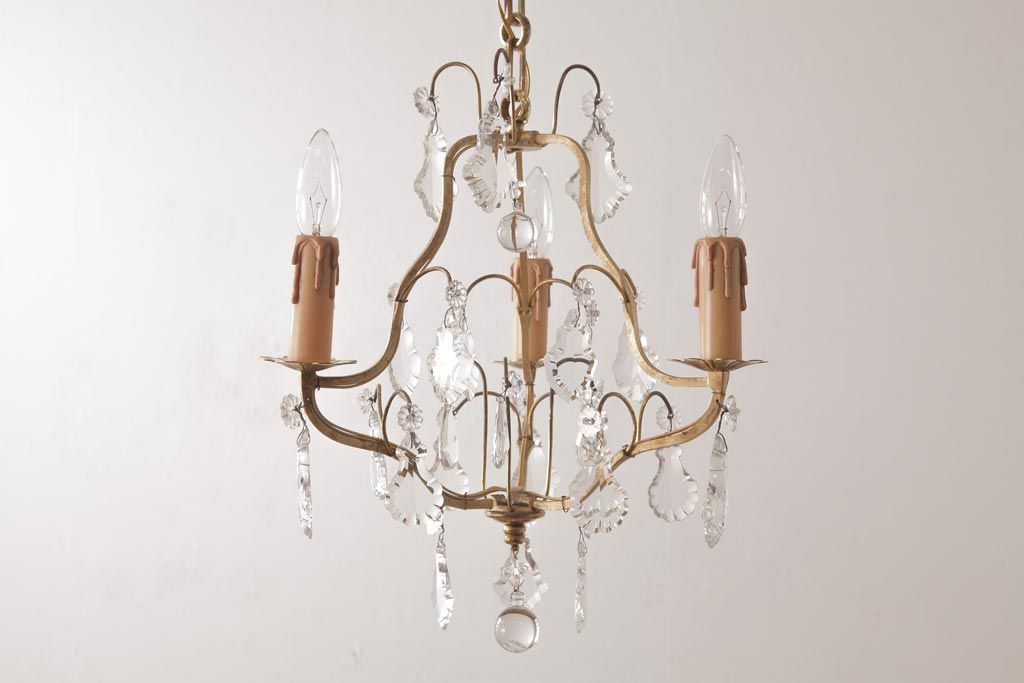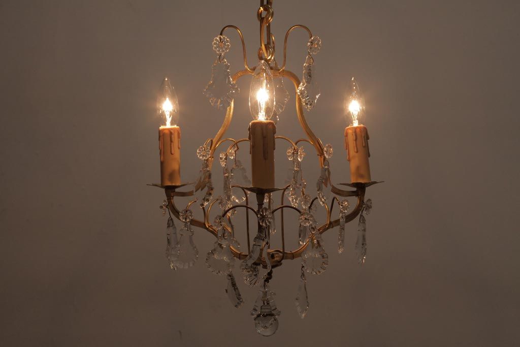 フランスアンティーク 繊細な美しさが魅力的なケージ型シャンデリア(3灯、天井照明、吊り下げ照明)(R-035219)