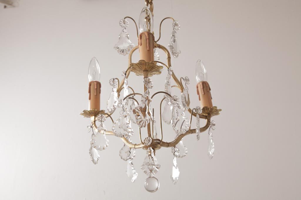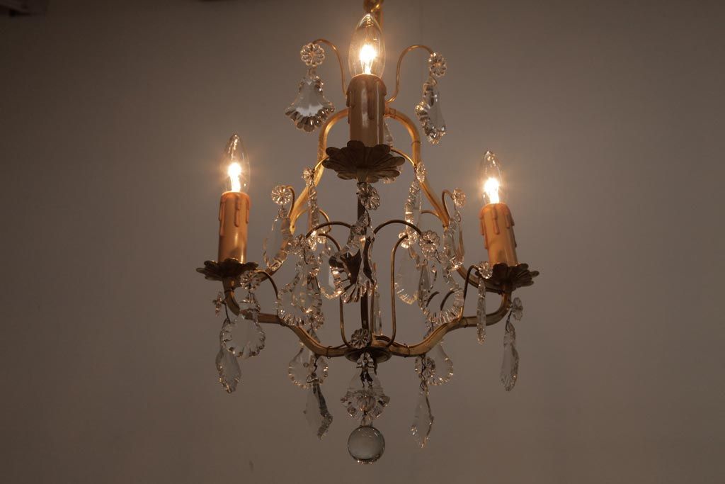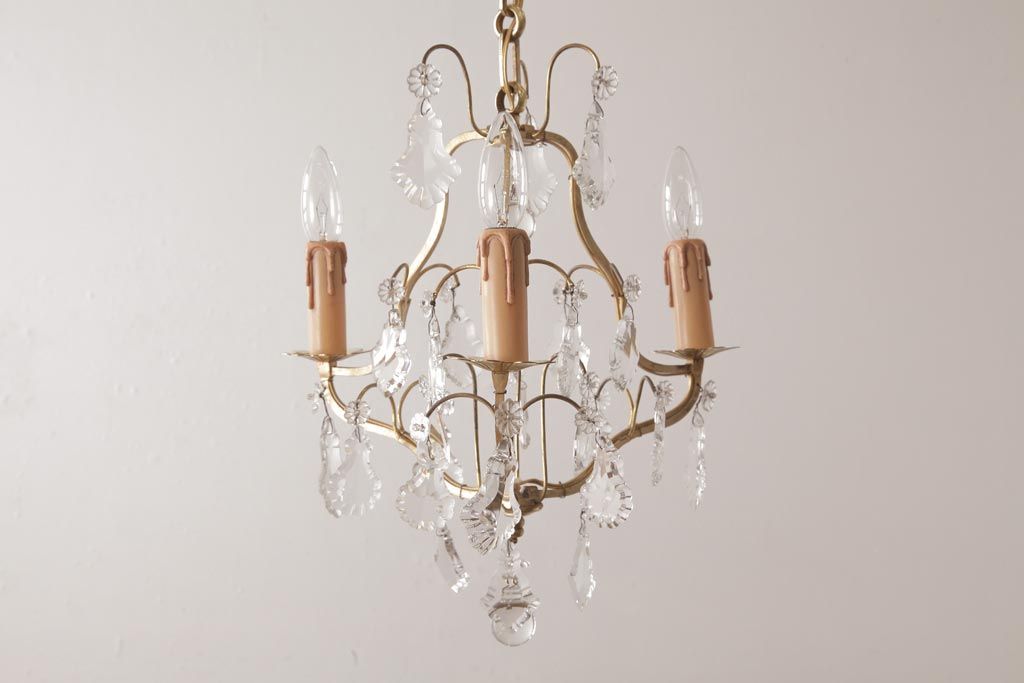 フランスアンティーク 繊細な美しさが魅力的なケージ型シャンデリア(3灯、天井照明、吊り下げ照明)(R-035219)です。