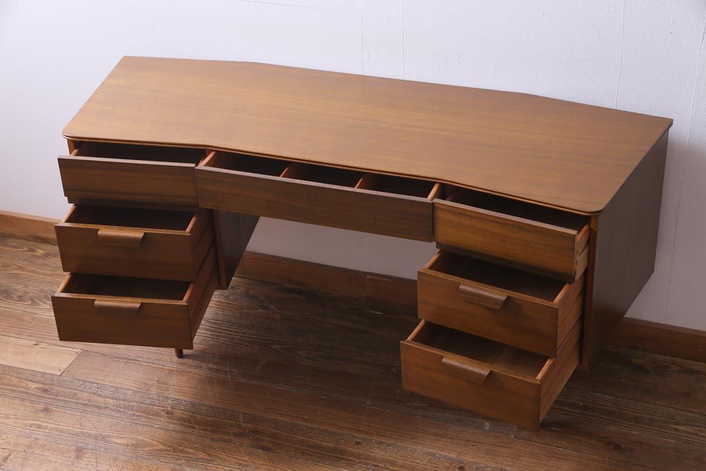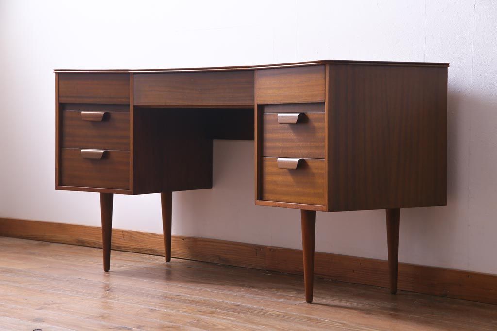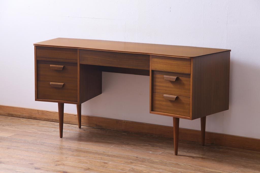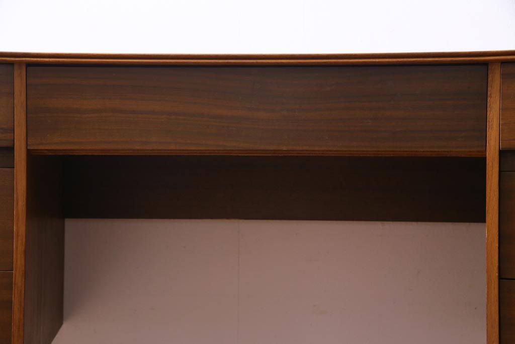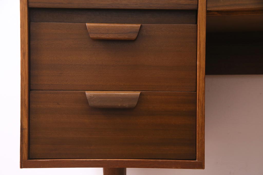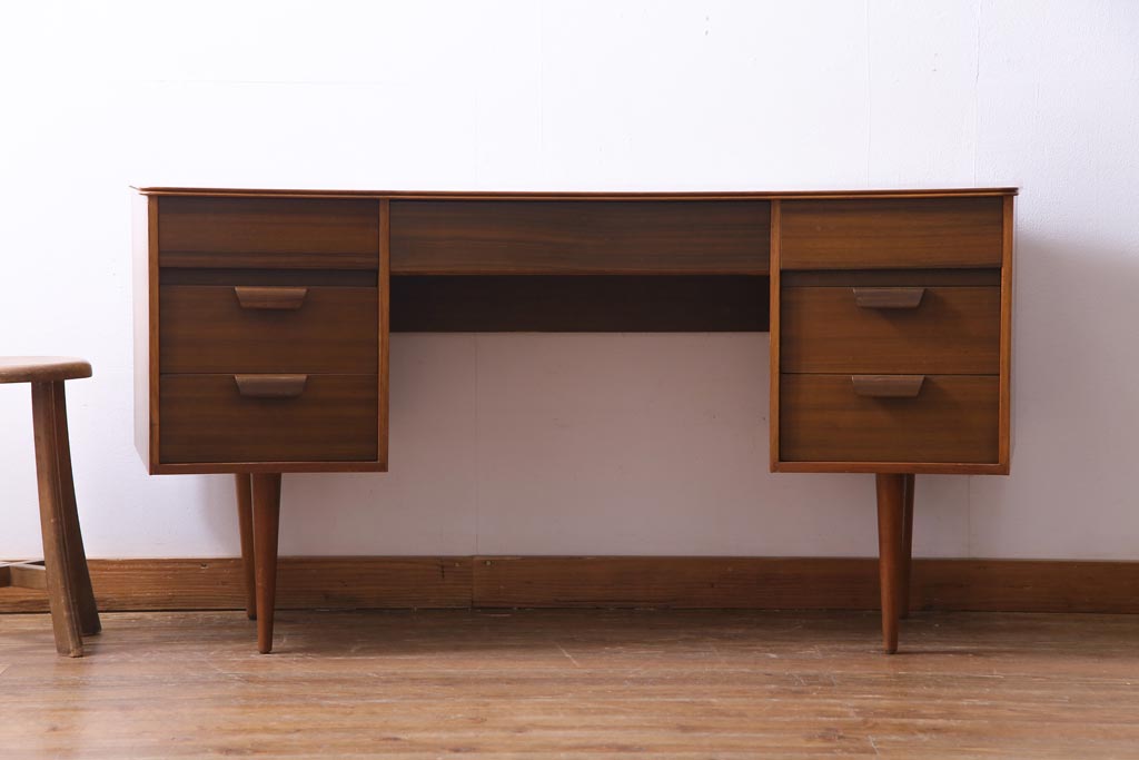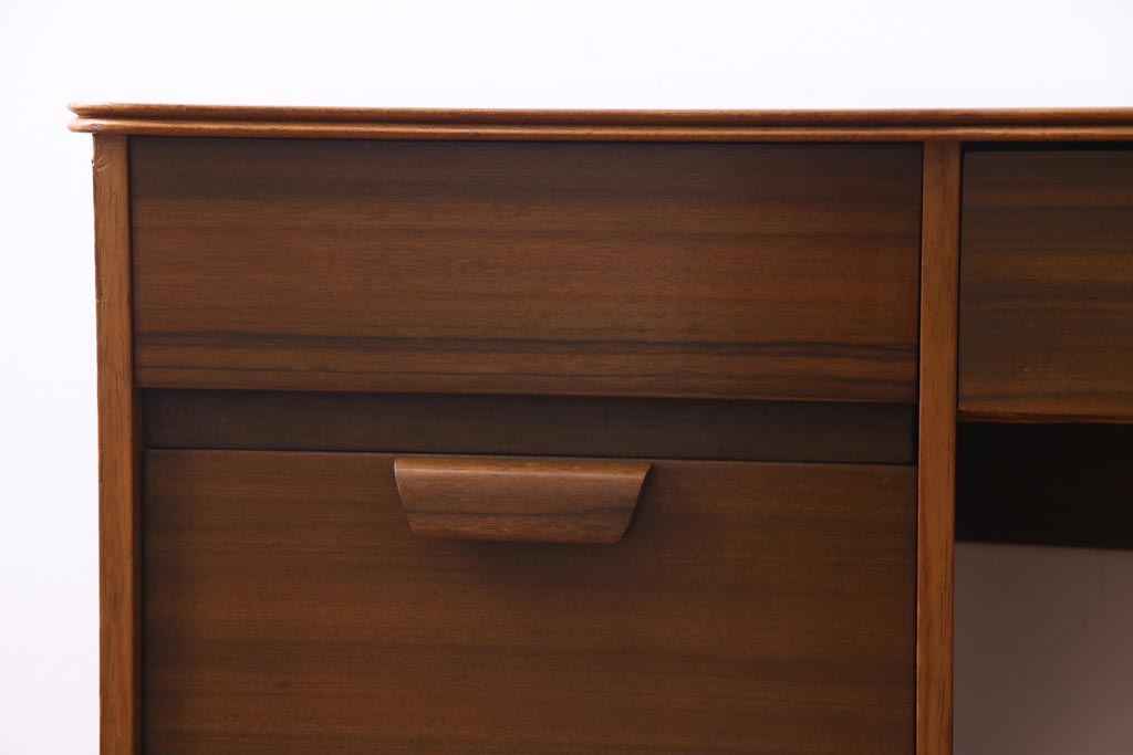 ヴィンテージ家具 イギリスビンテージ Uniflex Furniture ウォールナット 木のぬくもり感じる北欧スタイルの両袖デスク(机、在宅ワーク、在宅用作業台、サイドボード)