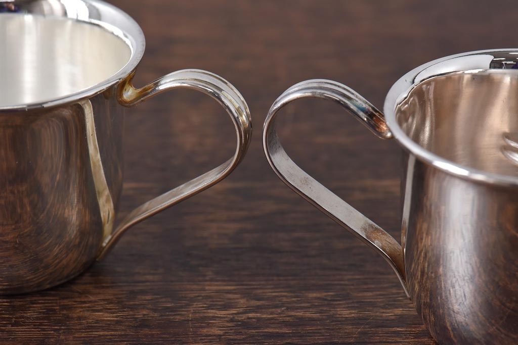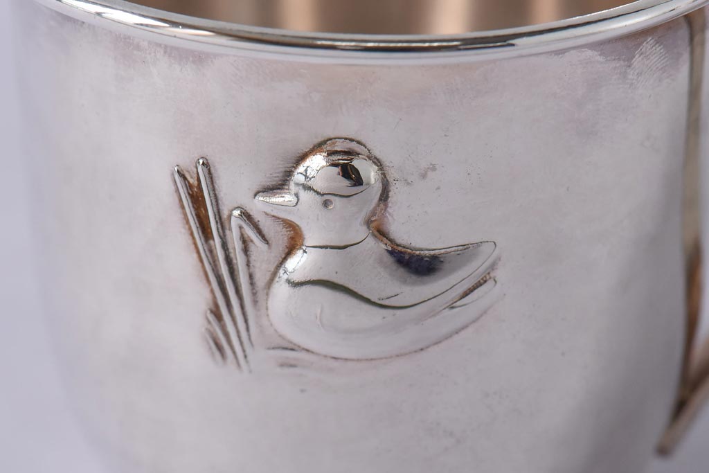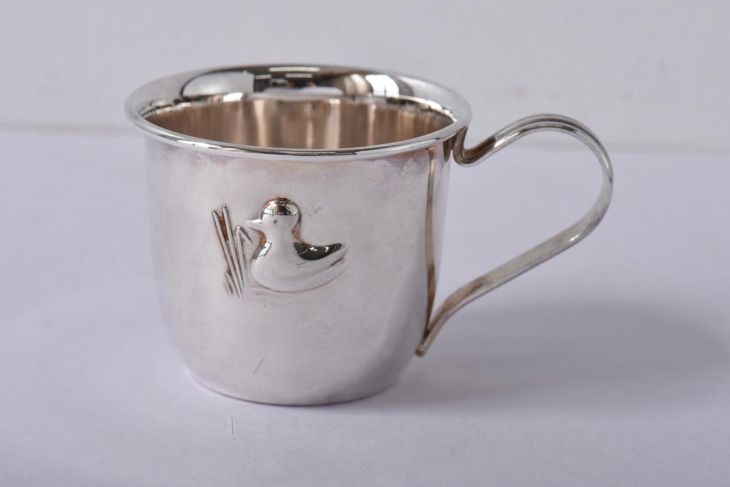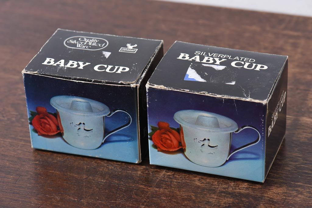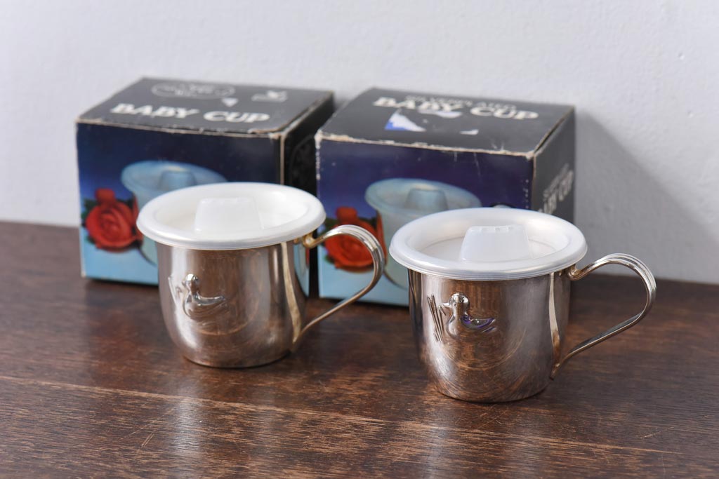 ビンテージ シルバープレート 箱付き アヒルが可愛らしいシッピーカップ2個セット(ベビーマグカップ)