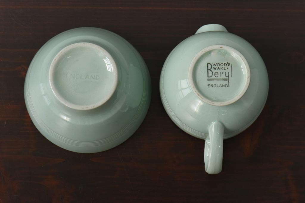 イギリスビンテージ Woods ware(ウッズウエア) Beryl(ベロル) ティーセット(シュガーボウル、ミルクポット)