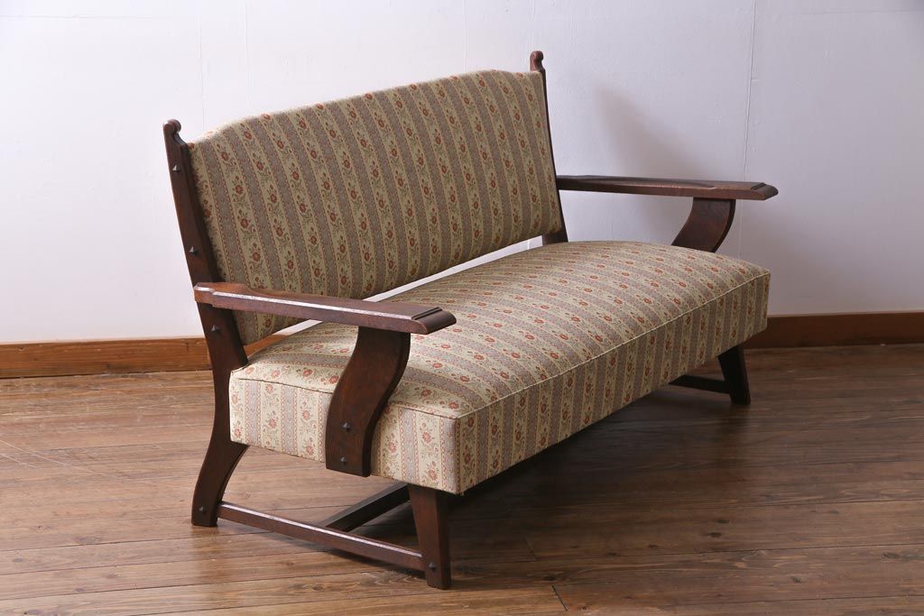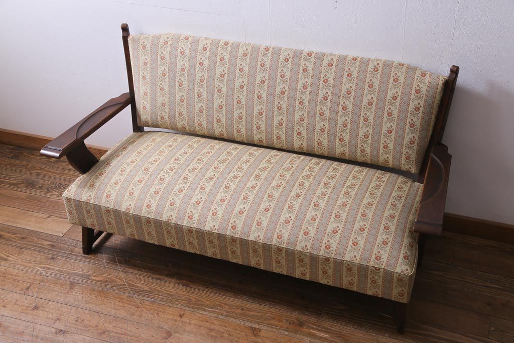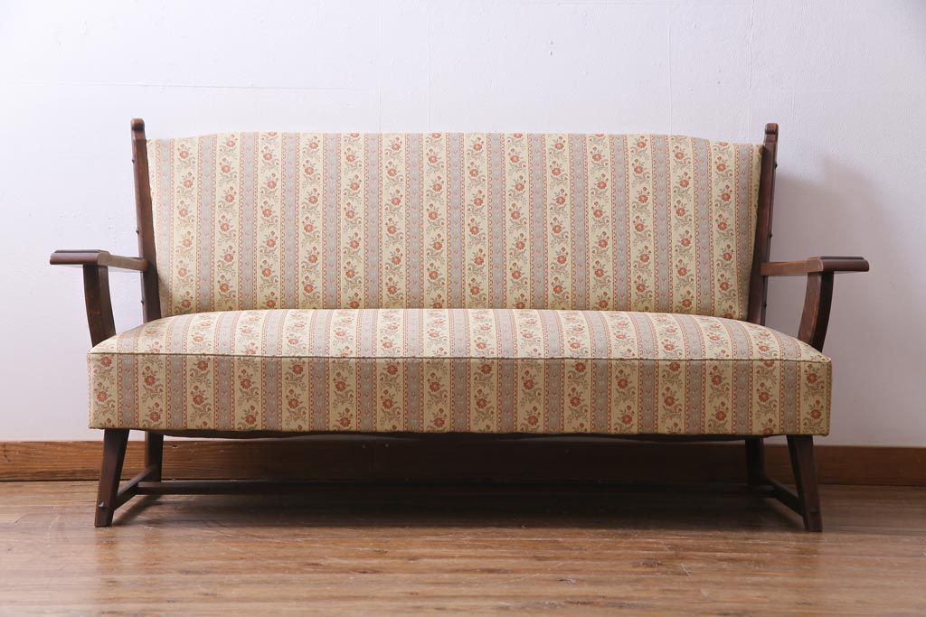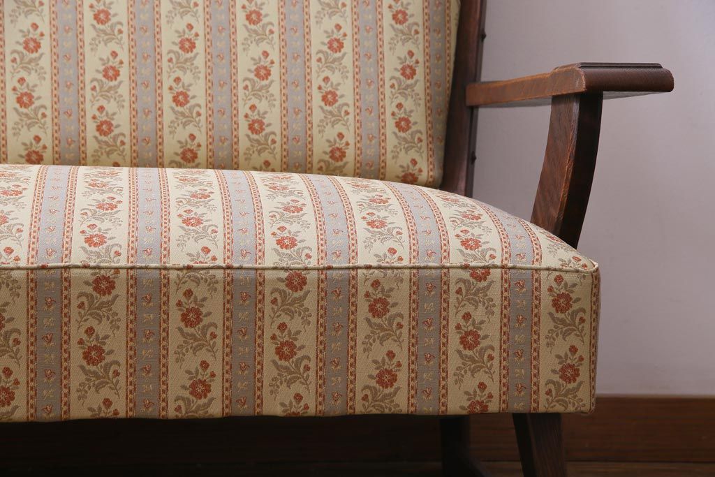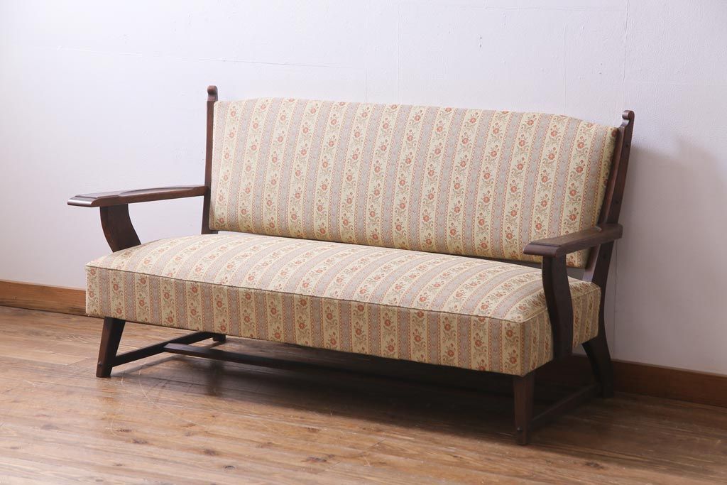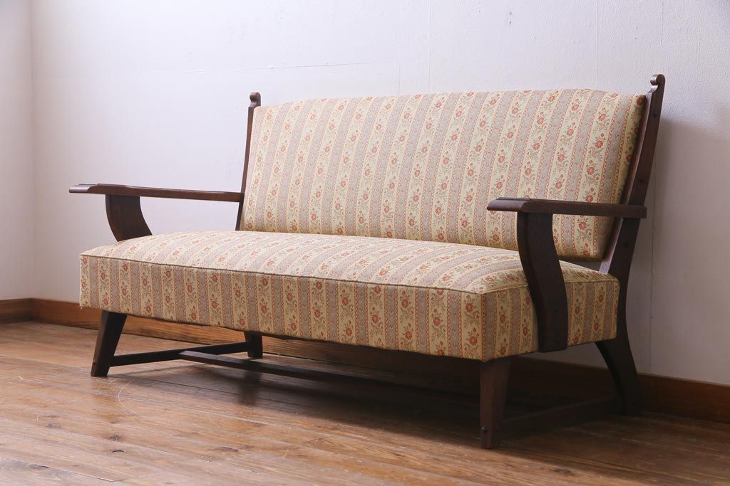中古 神戸洋家具 永田良介商店 533型 あたたかな雰囲気が魅力的なアームソファ(二人掛け)(定価約39万円)