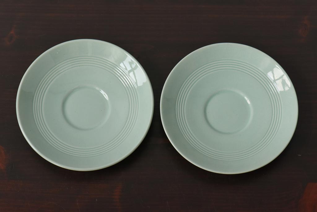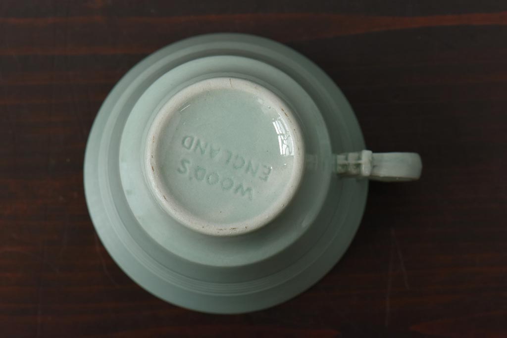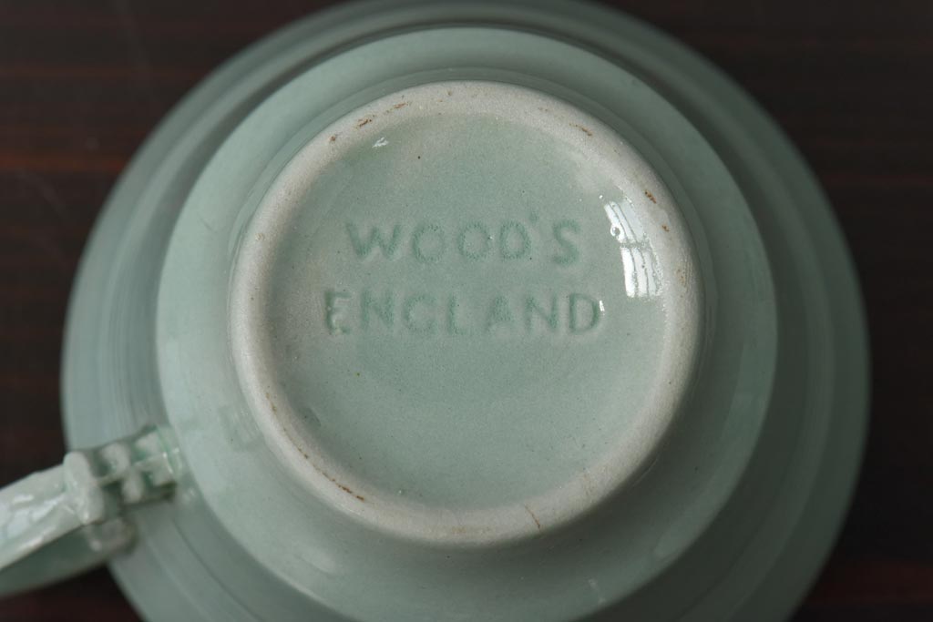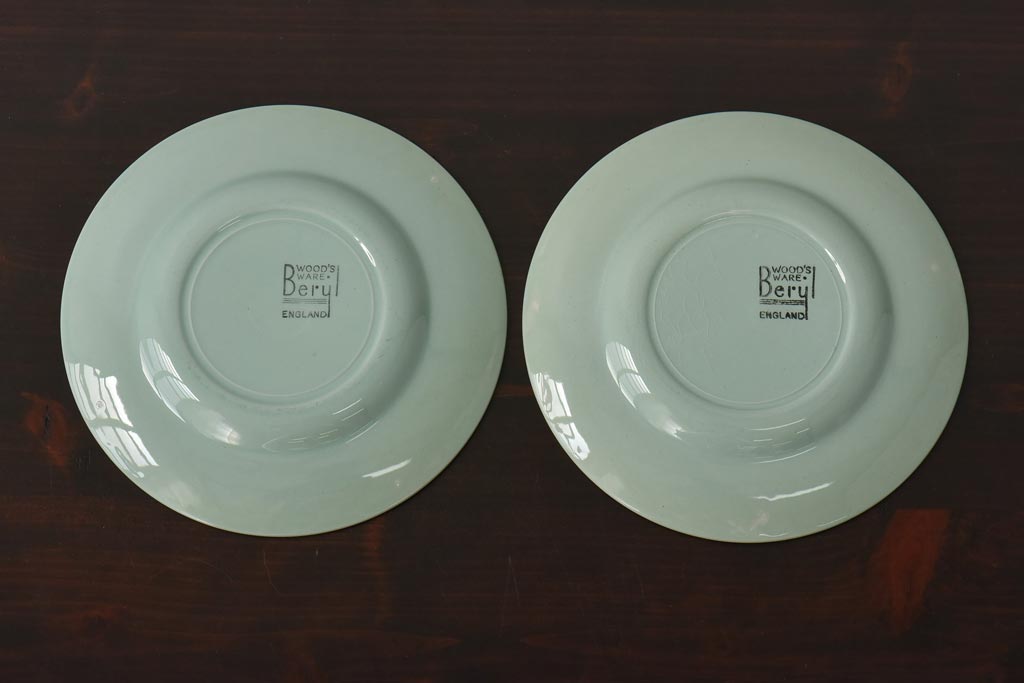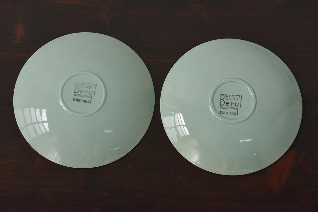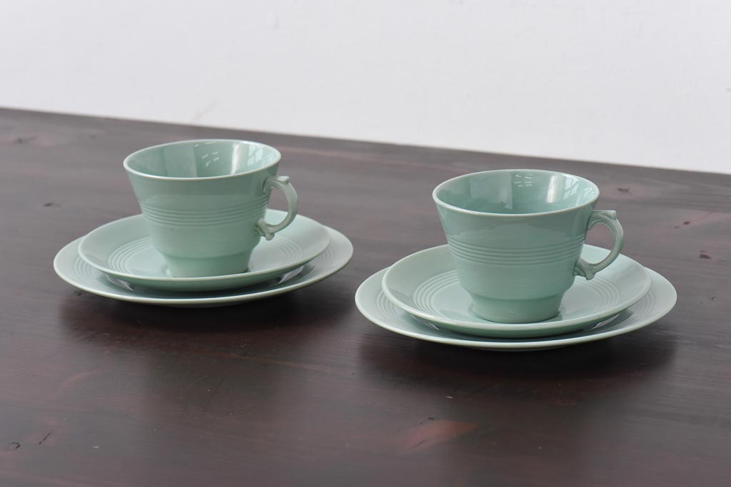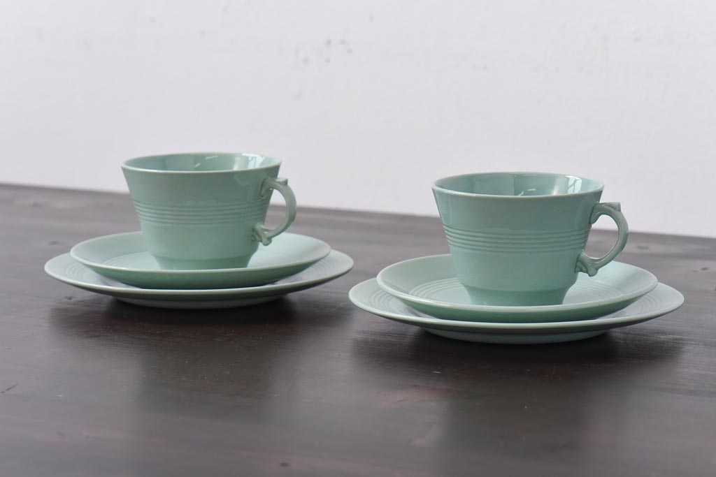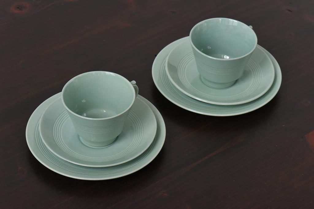 ラフジュ工房> 洋食器・キッチン用品> 皿・プレート > イギリスビンテージ Woods ware(ウッズウエア) Beryl(ベロル) レトロなトリオ2客セット(カップ&ソーサー、プレート)(3)