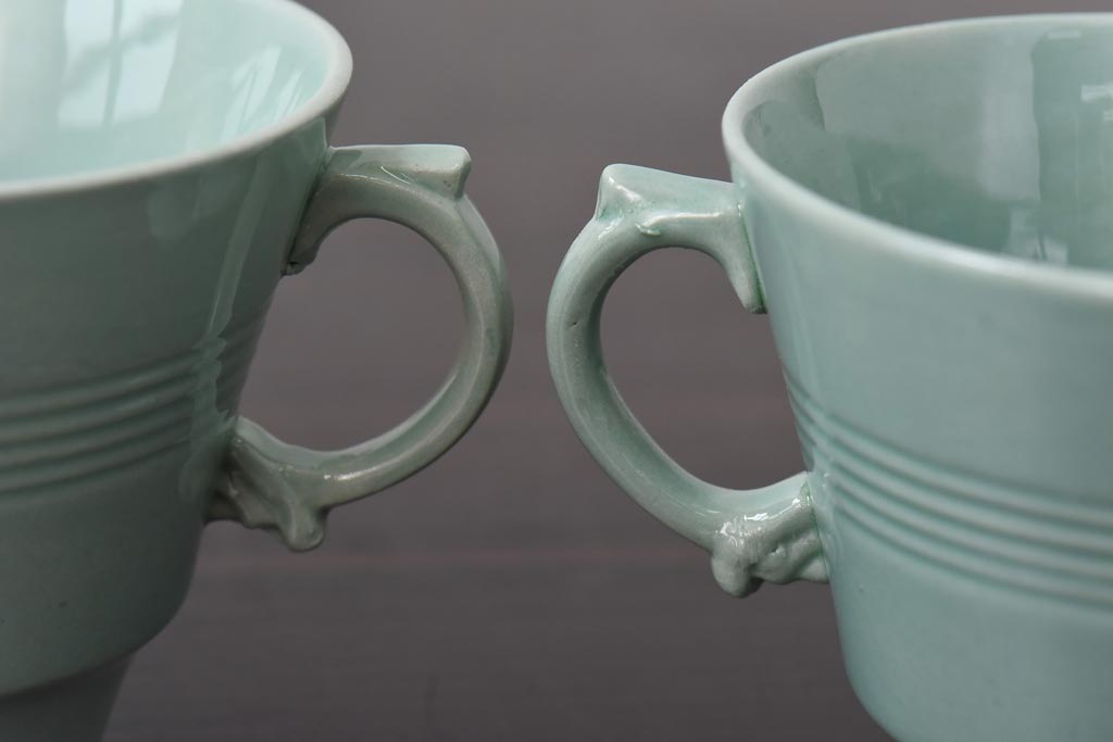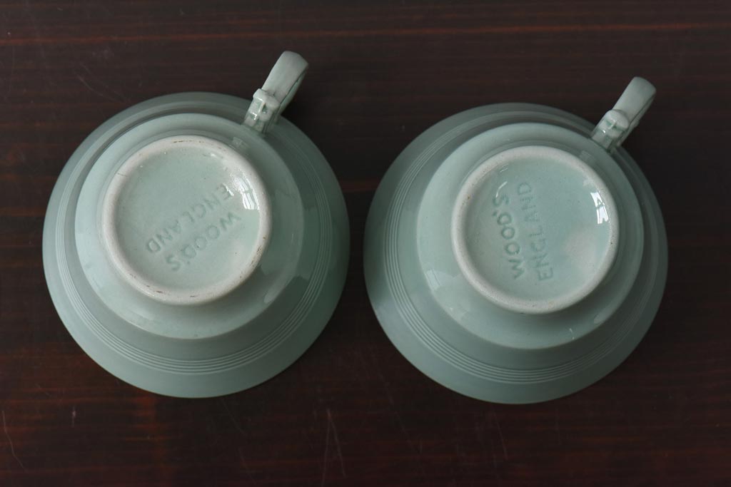 ラフジュ工房> 洋食器・キッチン用品> カップ&ソーサー > イギリスビンテージ Woods ware(ウッズウエア) Beryl(ベロル) レトロなトリオ2客セット(カップ&ソーサー、プレート)(3)