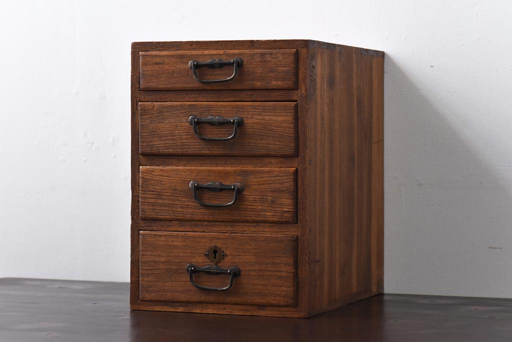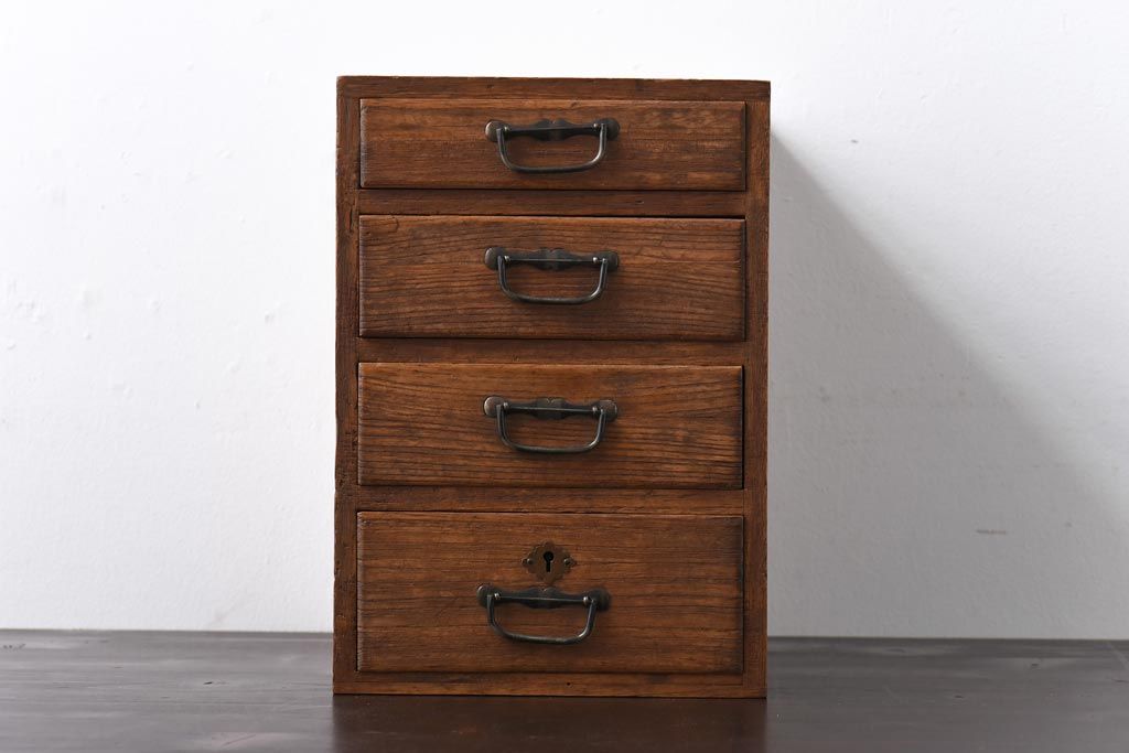レトロ家具 昭和レトロ 桐材 真鍮金具 櫛型の引手が味のあるシンプルな小引き出し(小物収納)(2)