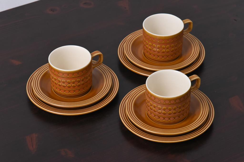 イギリスビンテージ HORNSEA(ホーンジー) Saffron(サフラン) レトロでかわいらしいトリオ3客セット(2)