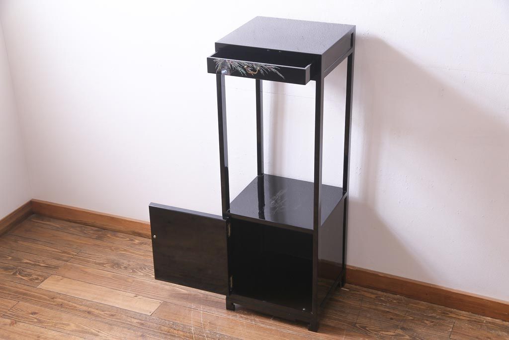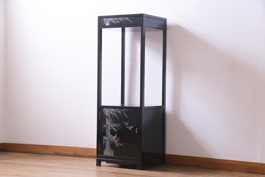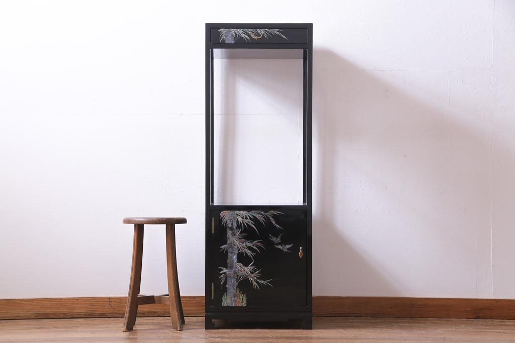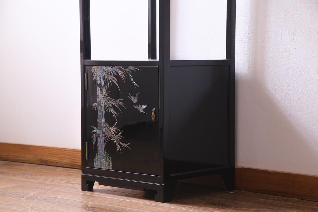 中古 民芸家具 竹と鳥 螺鈿の図柄が目を引く飾り棚(朝鮮棚)(定価約17万円)