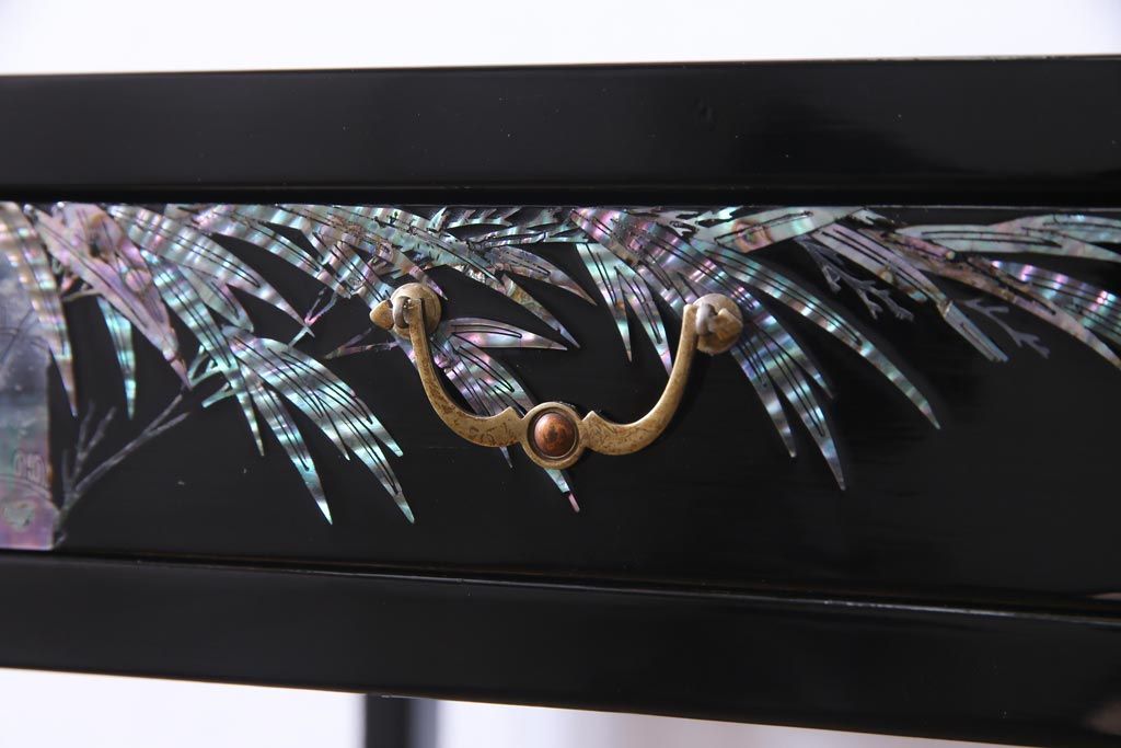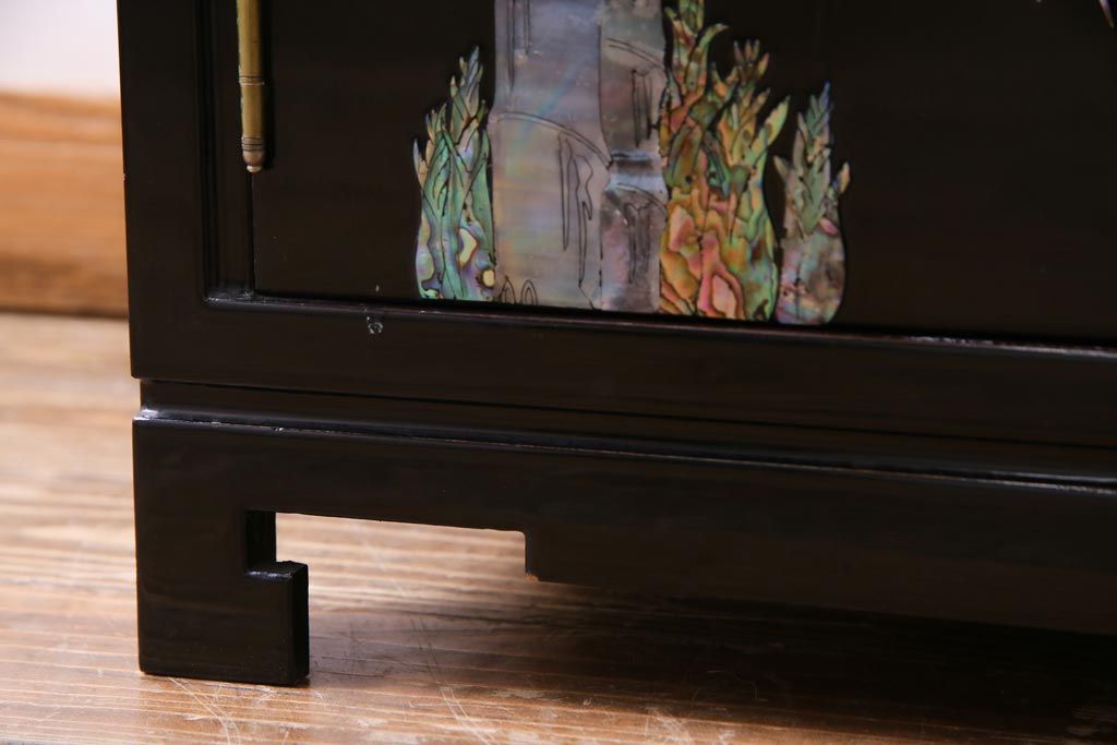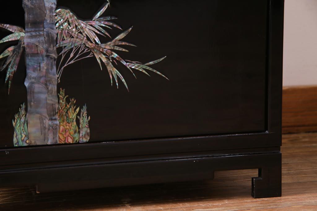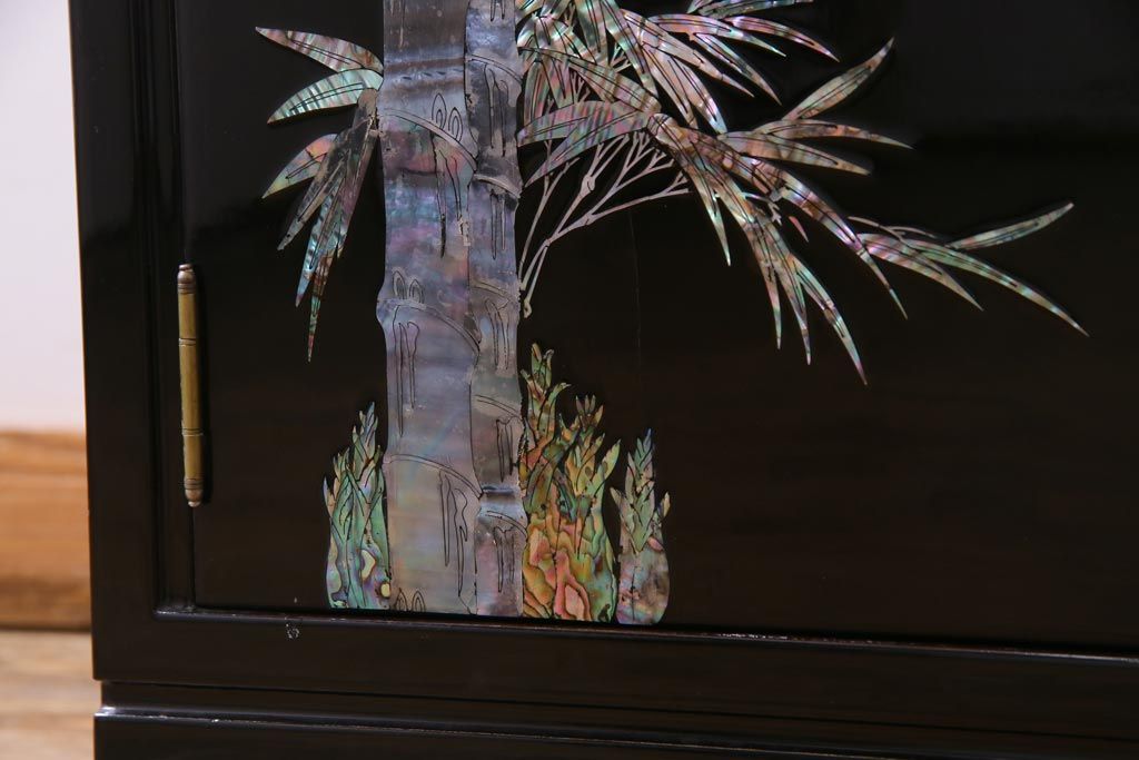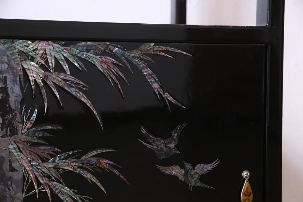 中古 民芸家具 竹と鳥 螺鈿の図柄が目を引く飾り棚(朝鮮棚)(定価約17万円)です。