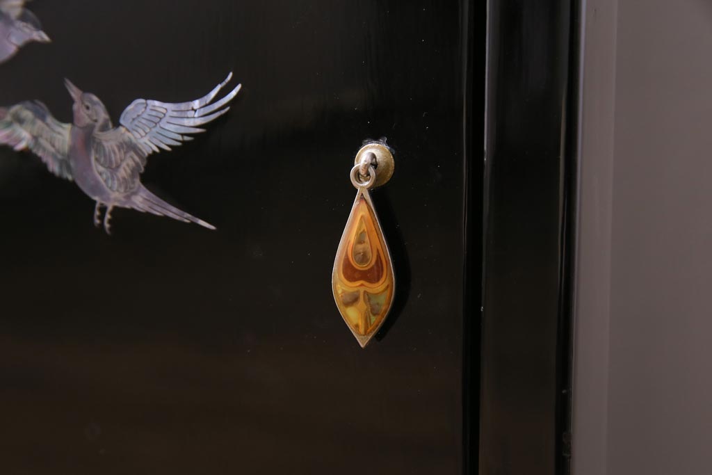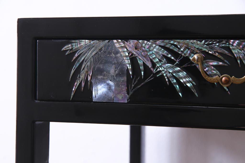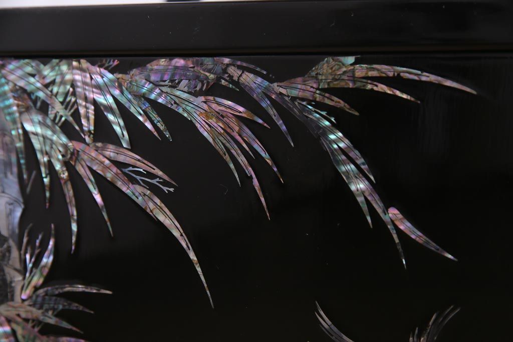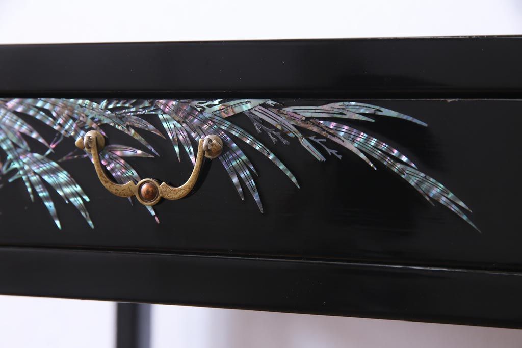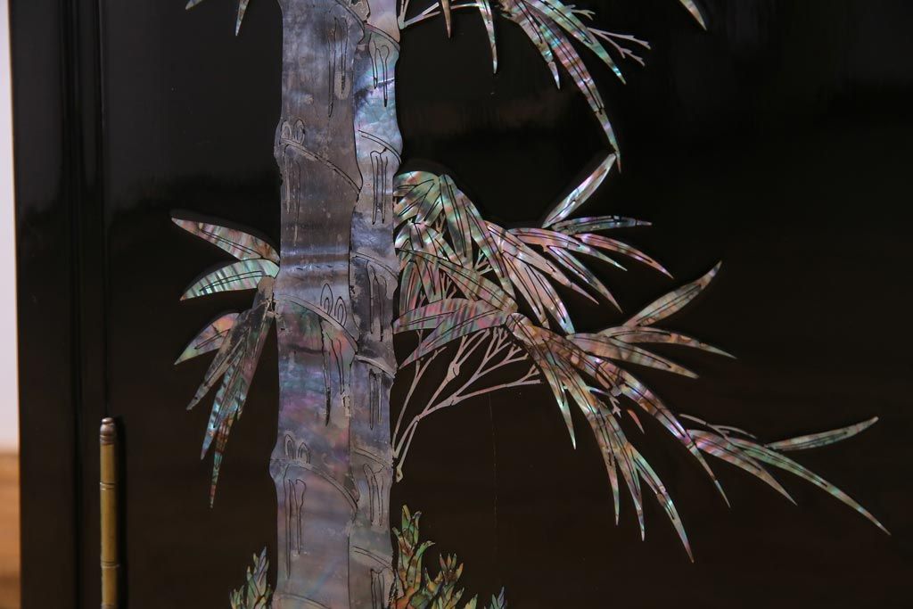 中古 民芸家具 竹と鳥 螺鈿の図柄が目を引く飾り棚(朝鮮棚)(定価約17万円)です。