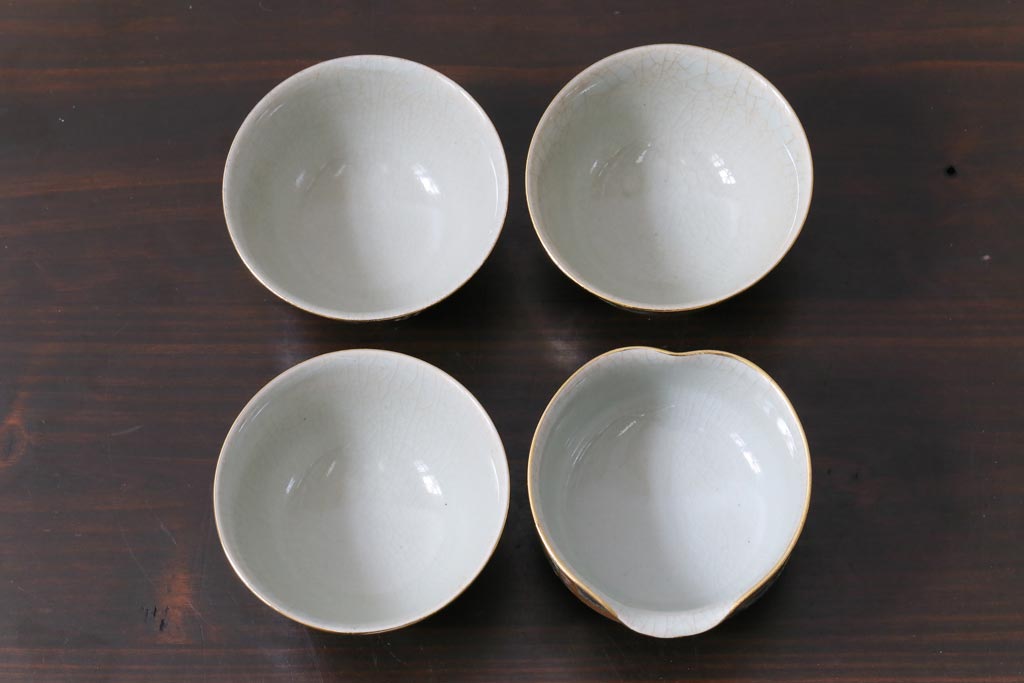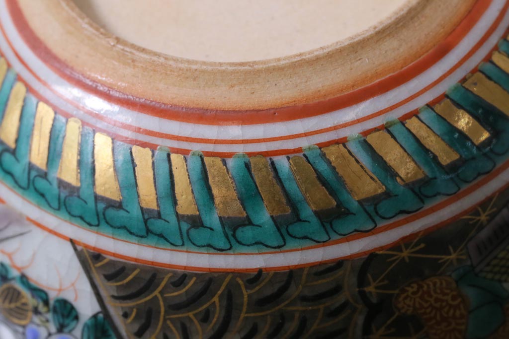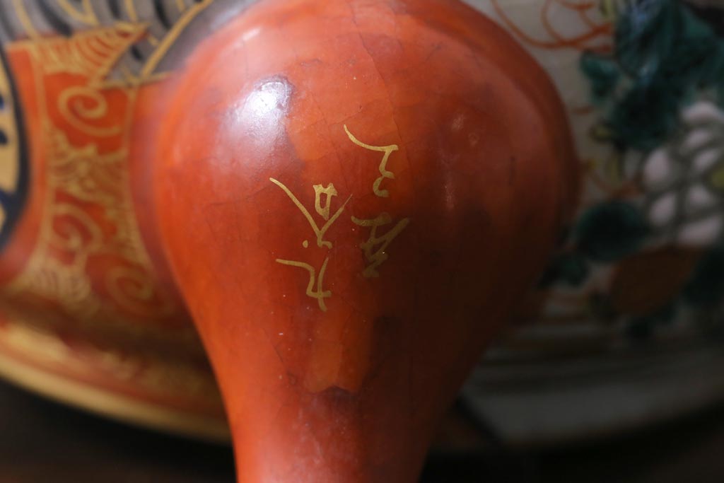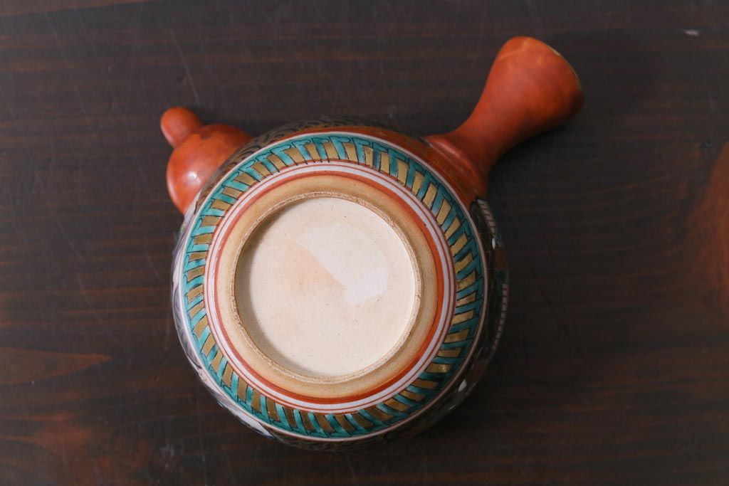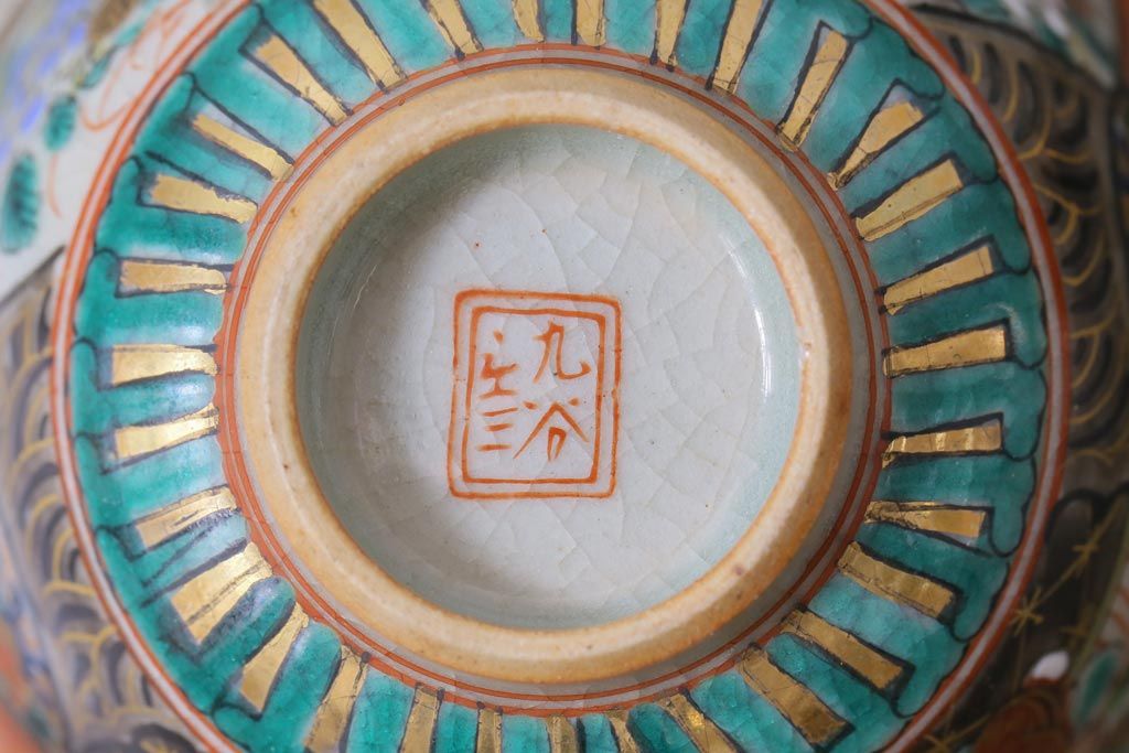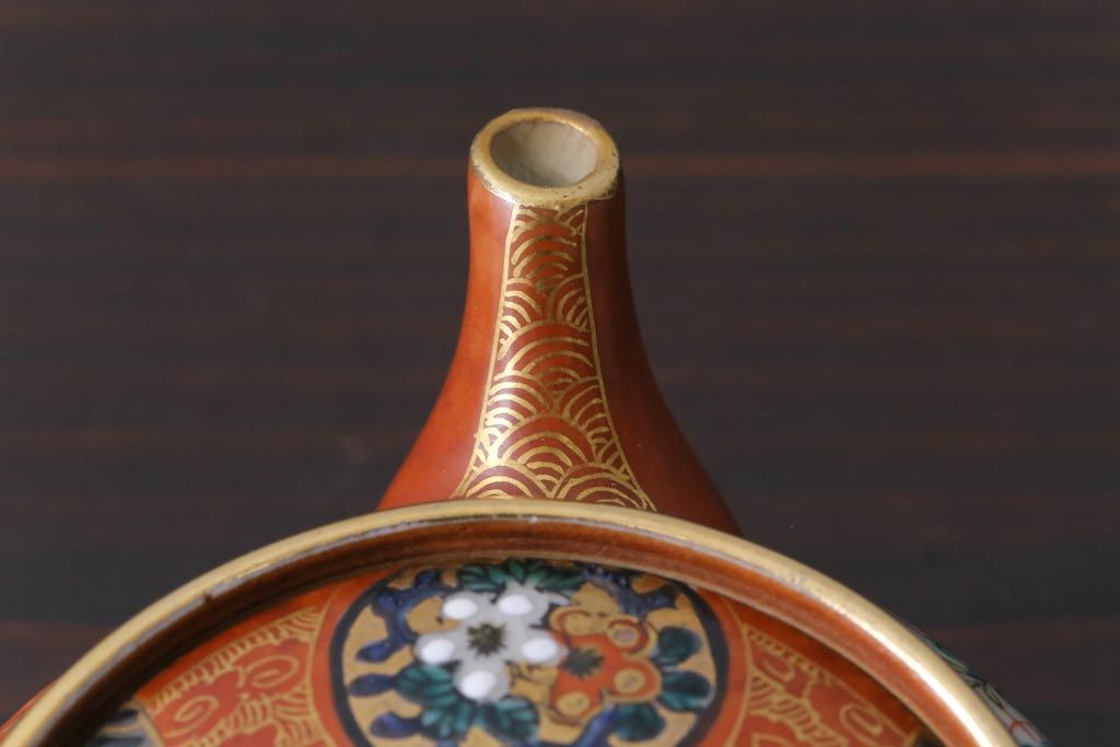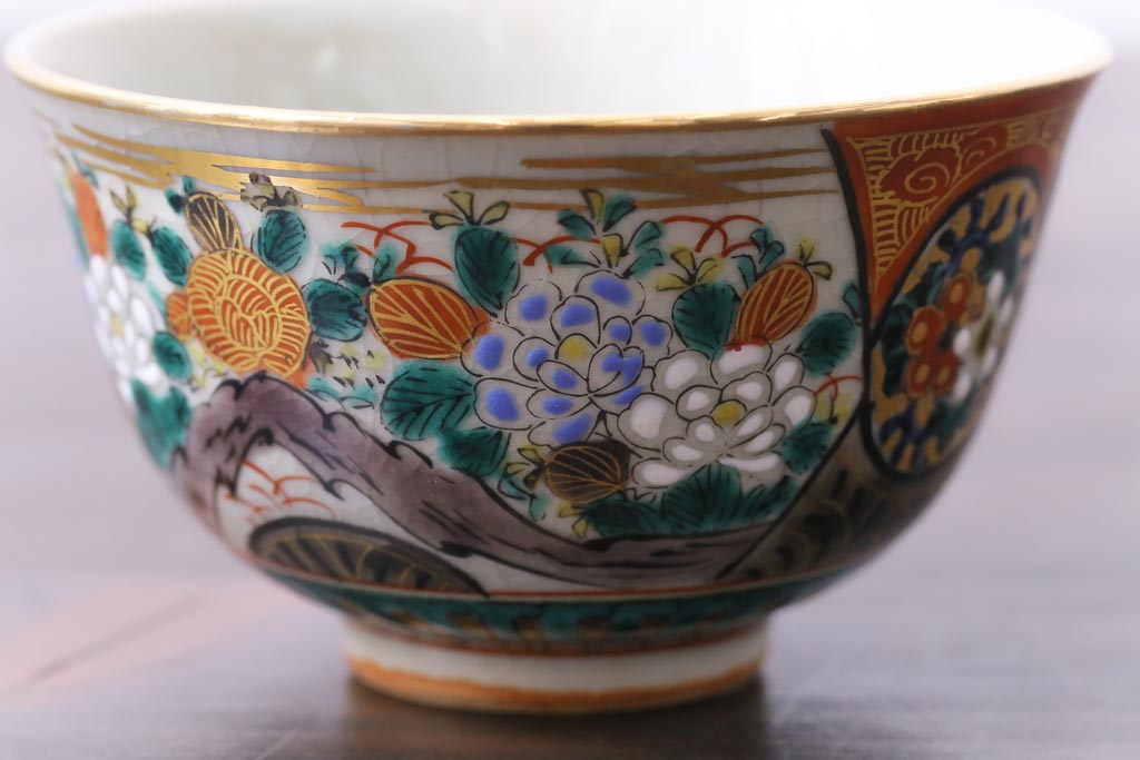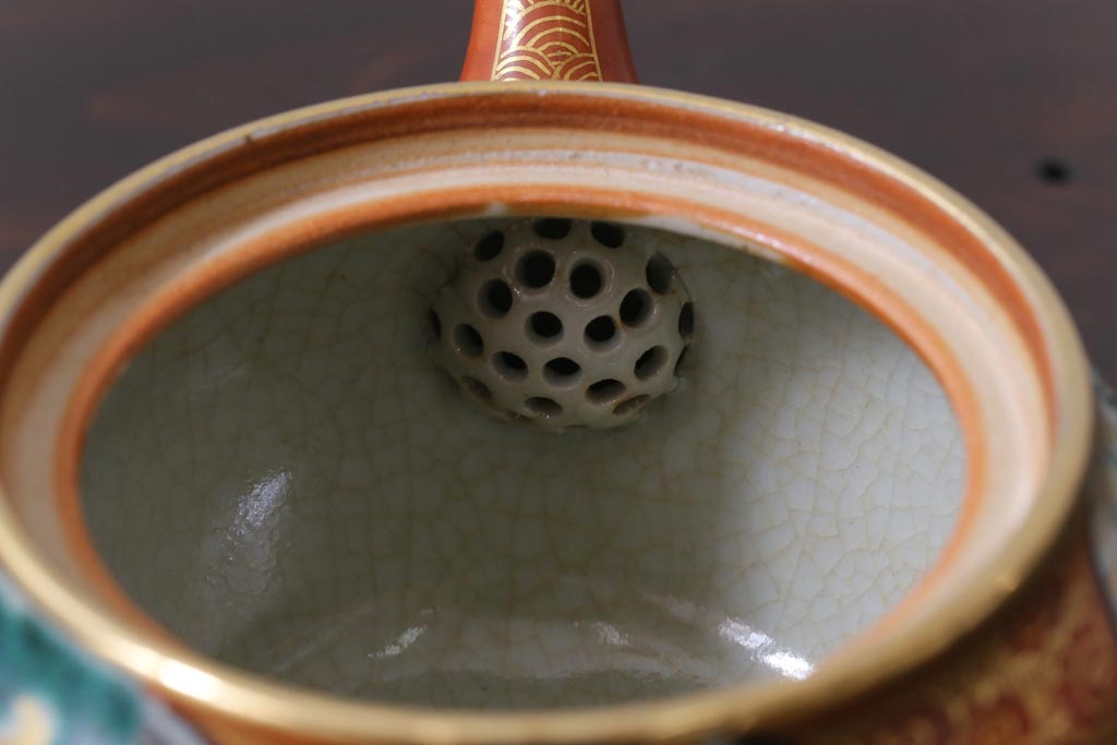 和製アンティーク 九谷焼 九谷庄三 色絵 牡丹と僧侶 茶器セット(急須、湯冷まし、湯呑み)