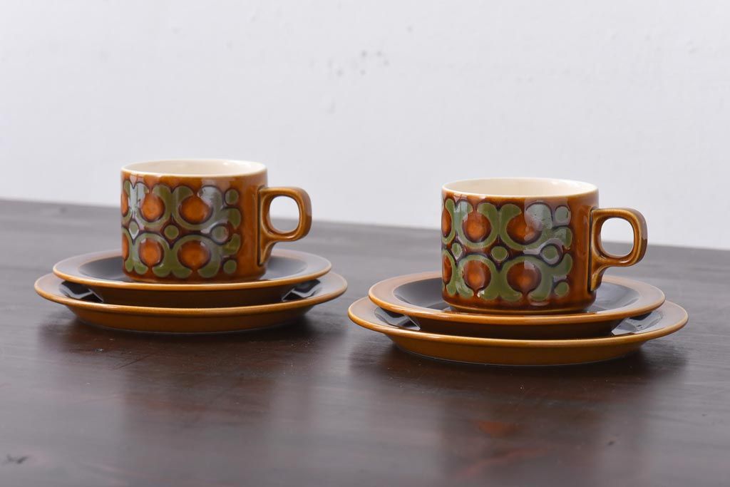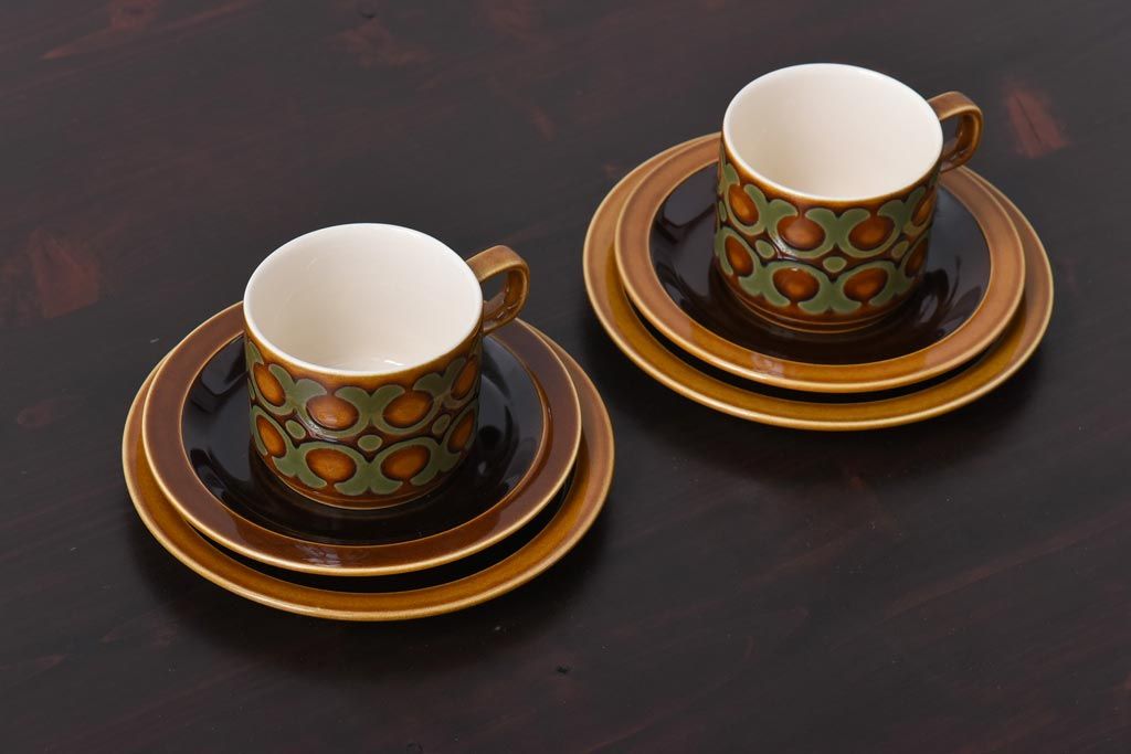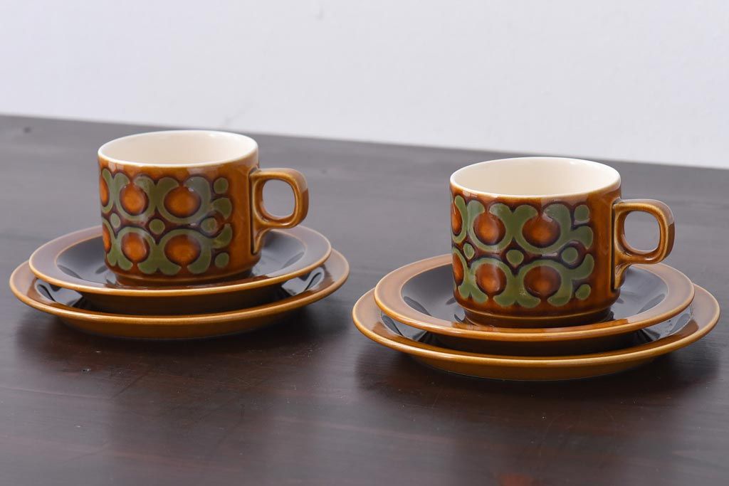 イギリスビンテージ HORNSEA(ホーンジー) BRONTE(ブロンテ)シリーズ トリオ2客セット(カップ、ソーサー、プレート、洋食器)(1)