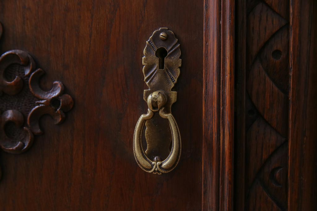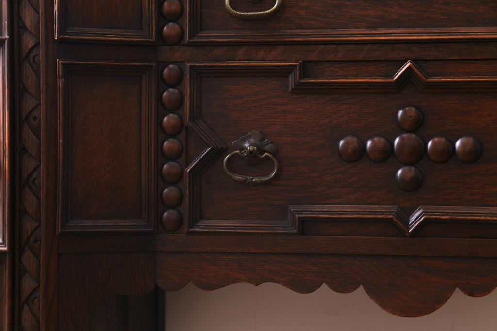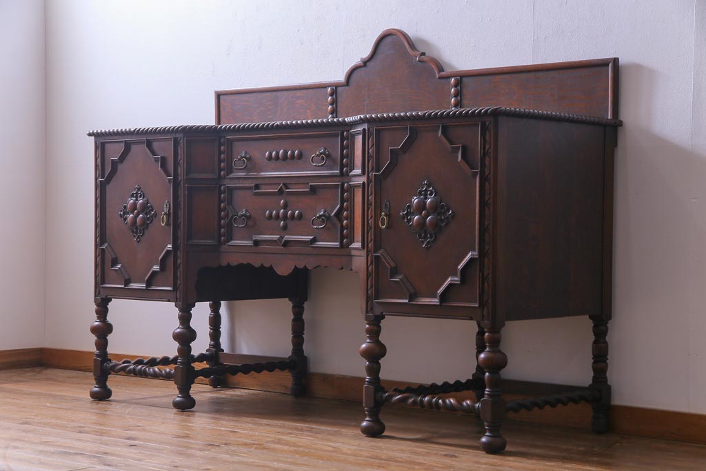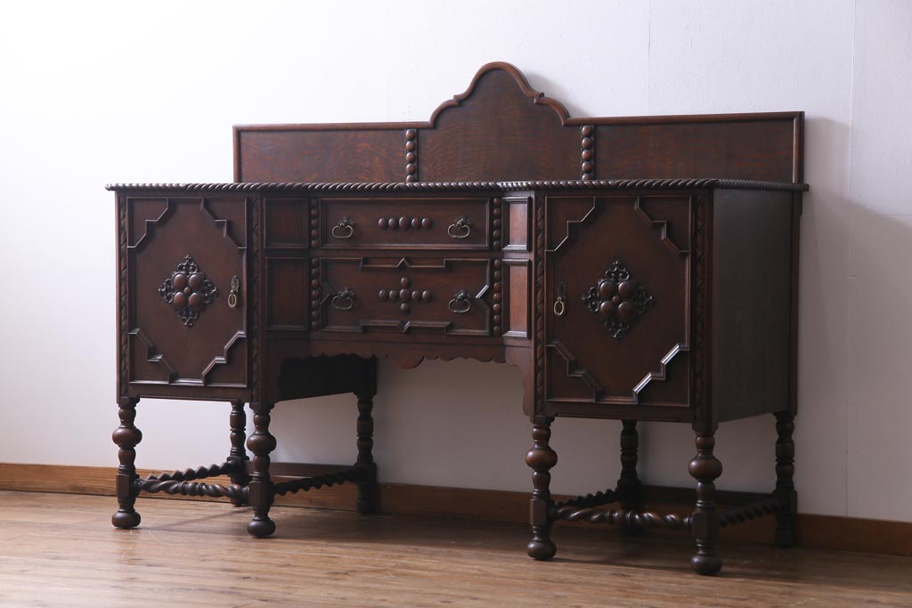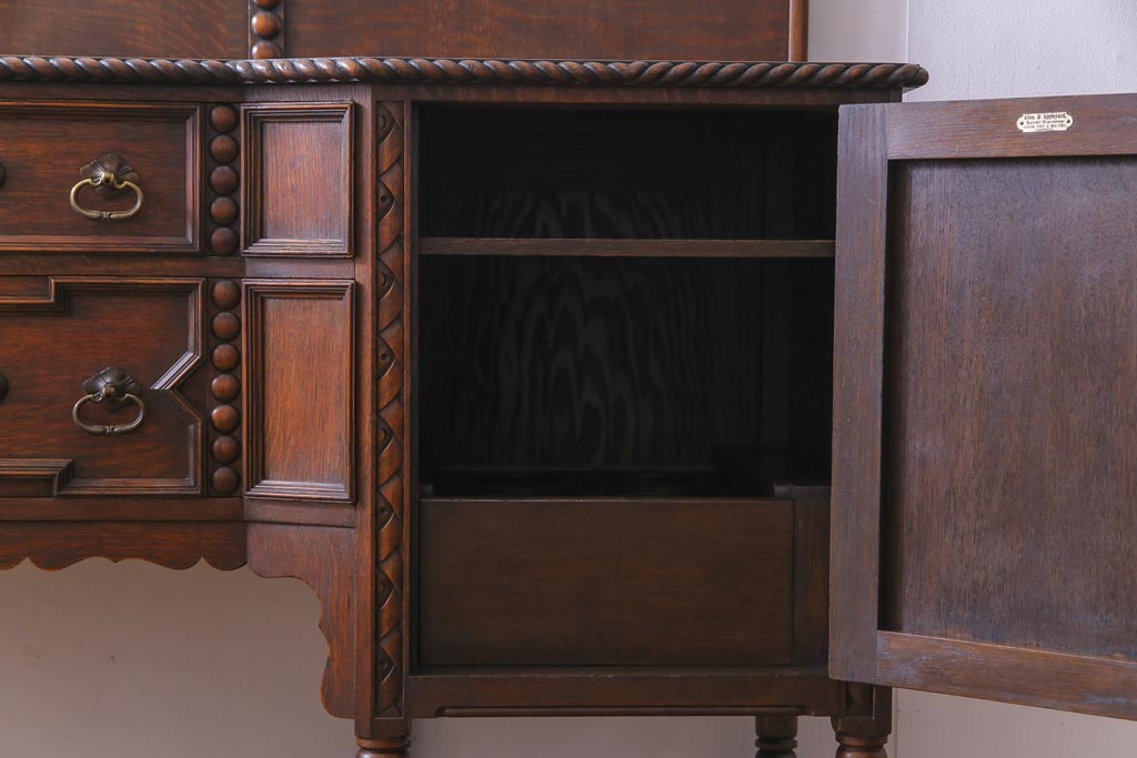 アンティーク家具 イギリスアンティーク オーク材 上手物 落ち着いた華やかさが気品漂うサイドボード(収納棚、キャビネット)